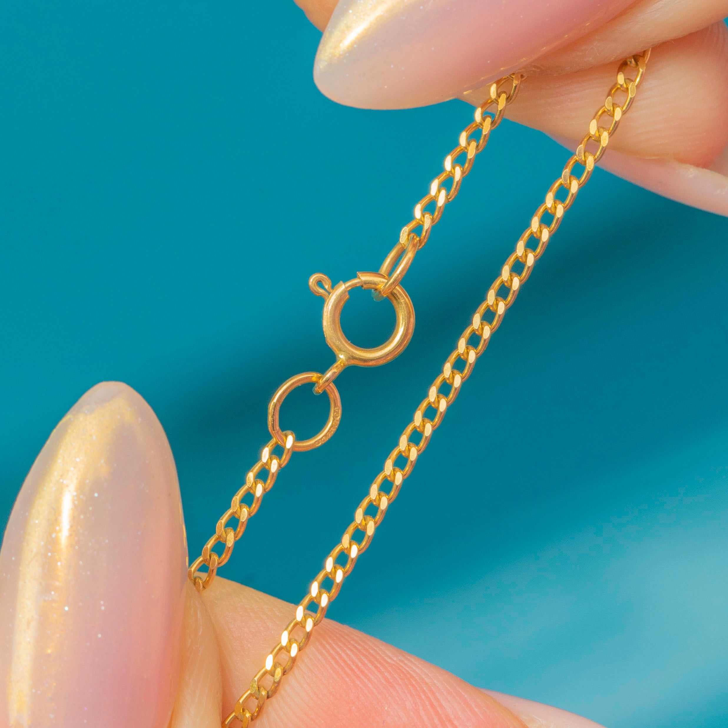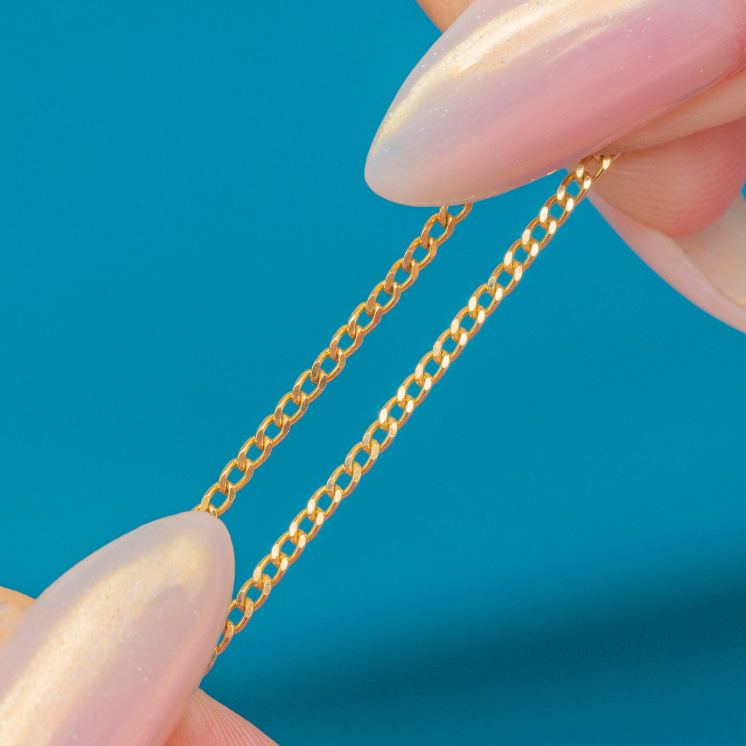 A sleek and versatile 20" 9ct Gold Diamond-Cut Curb Chain, perfect for wearing alone or layering with your favourite pendants.