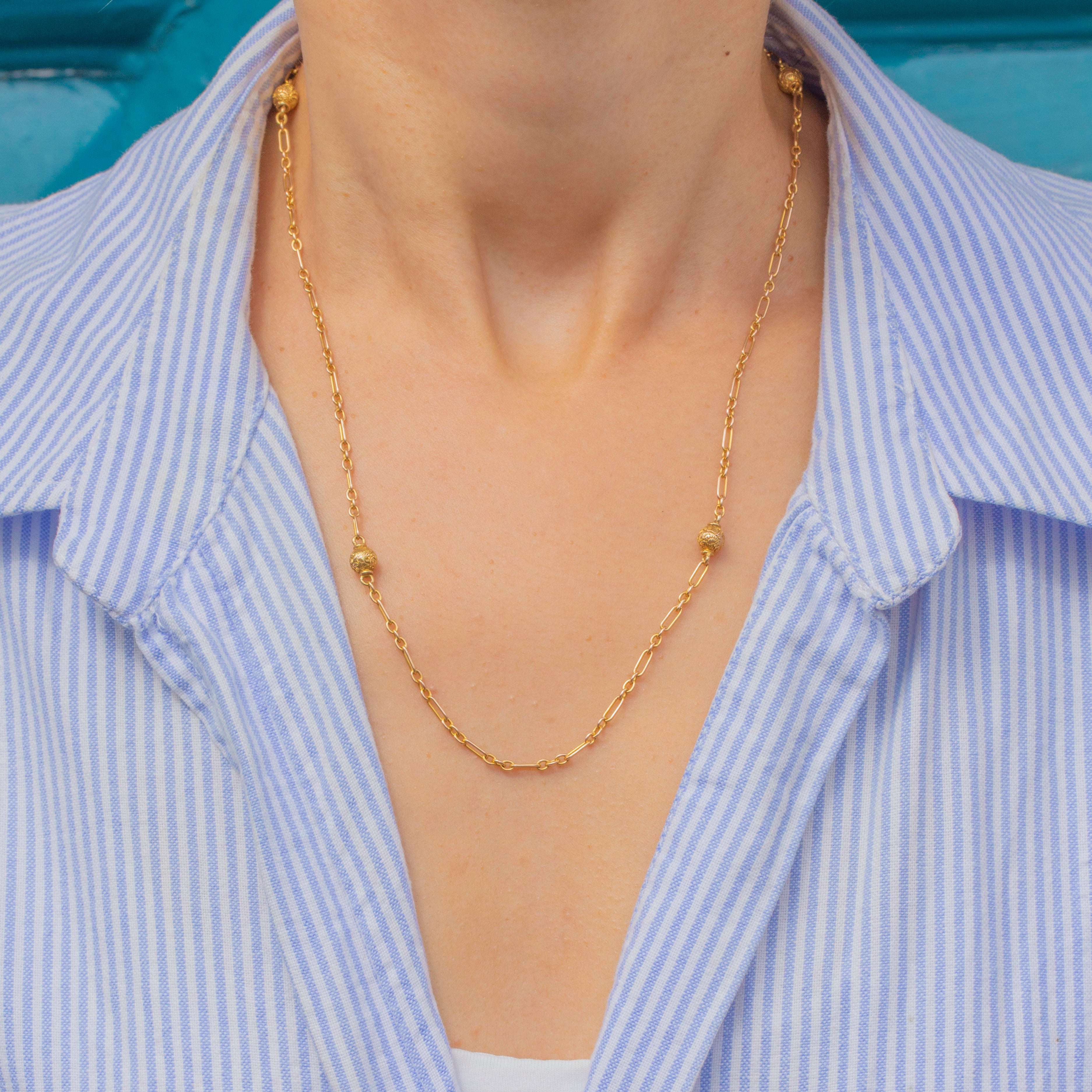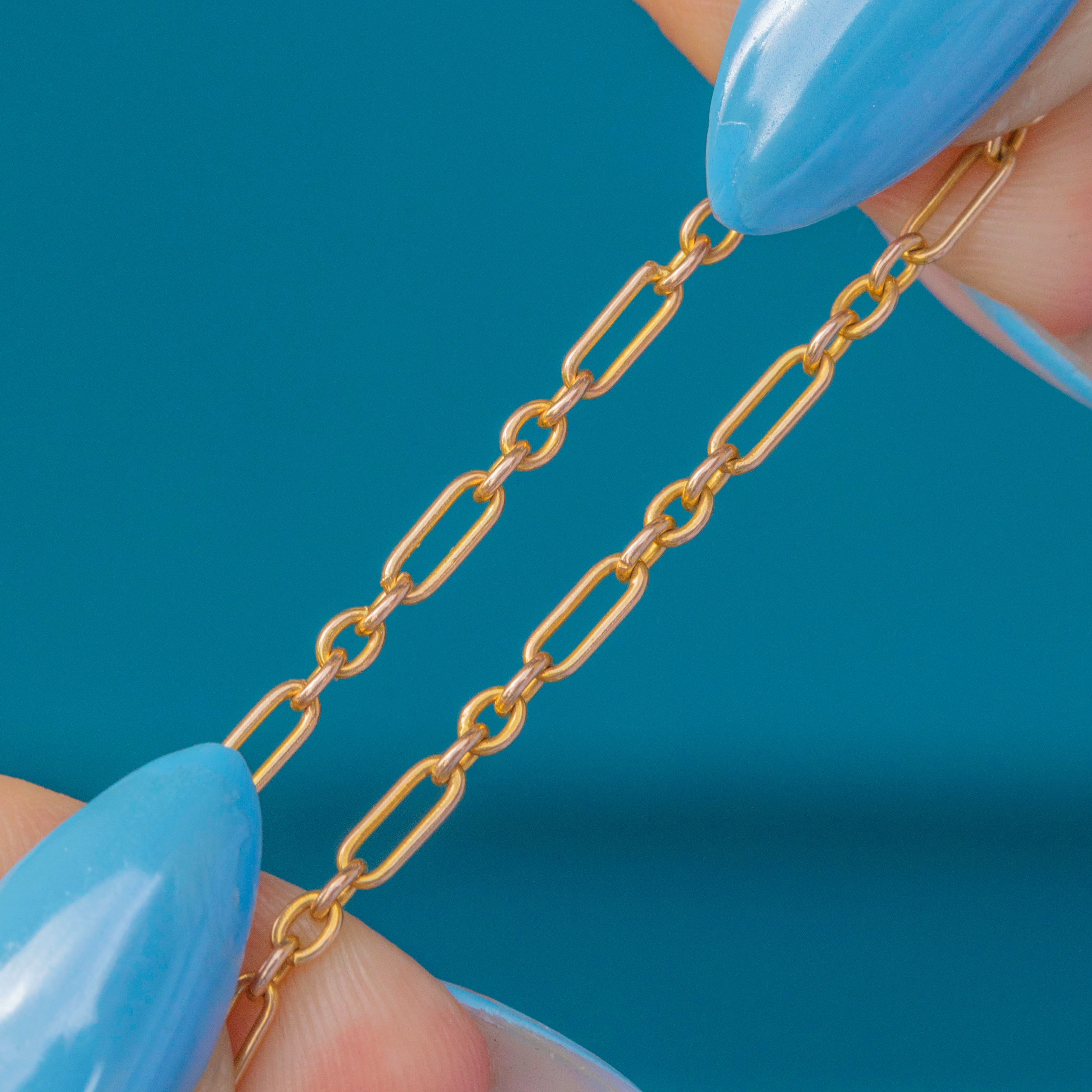 At a generous 20" in length, this highly versatile antique chain rests delicately on your décolletage like liquid Gold and will make a fabulous addition to your collection.