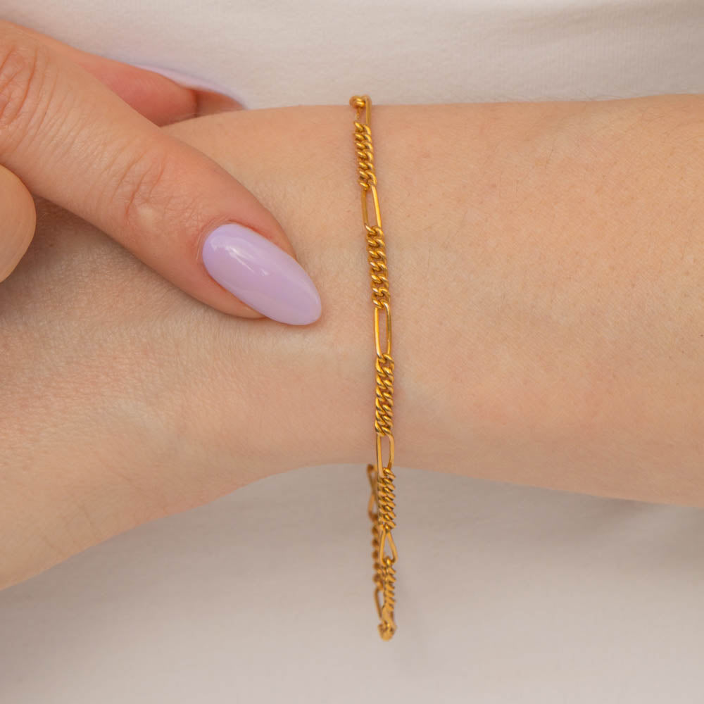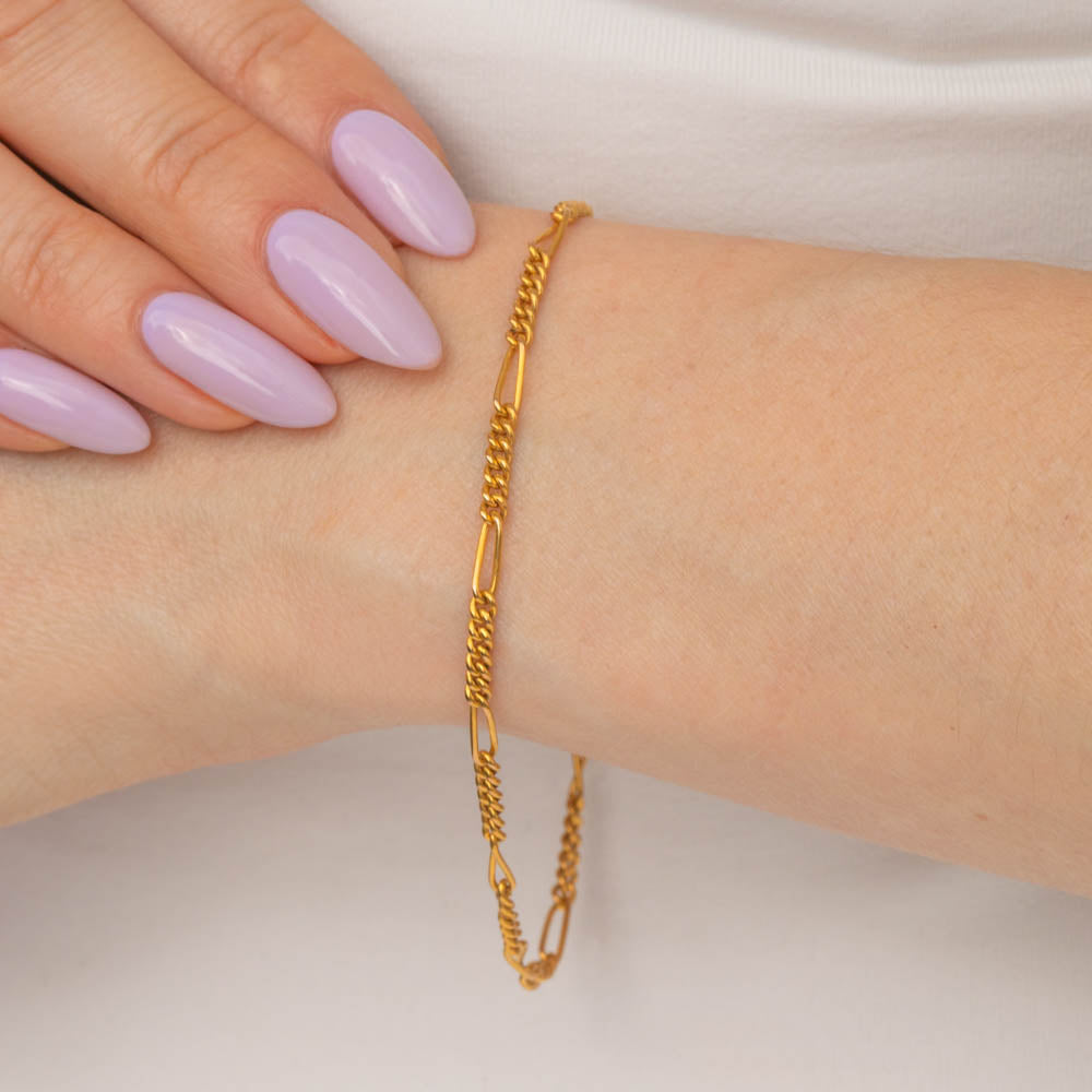 The delicate design of this Victorian Gold bracelet makes her a wonderful addition to any wrist stack, or wear her alone to add a subtle splash of splendour to any attire. You won't regret becoming the new proud owner of this Gold Figaro bracelet!