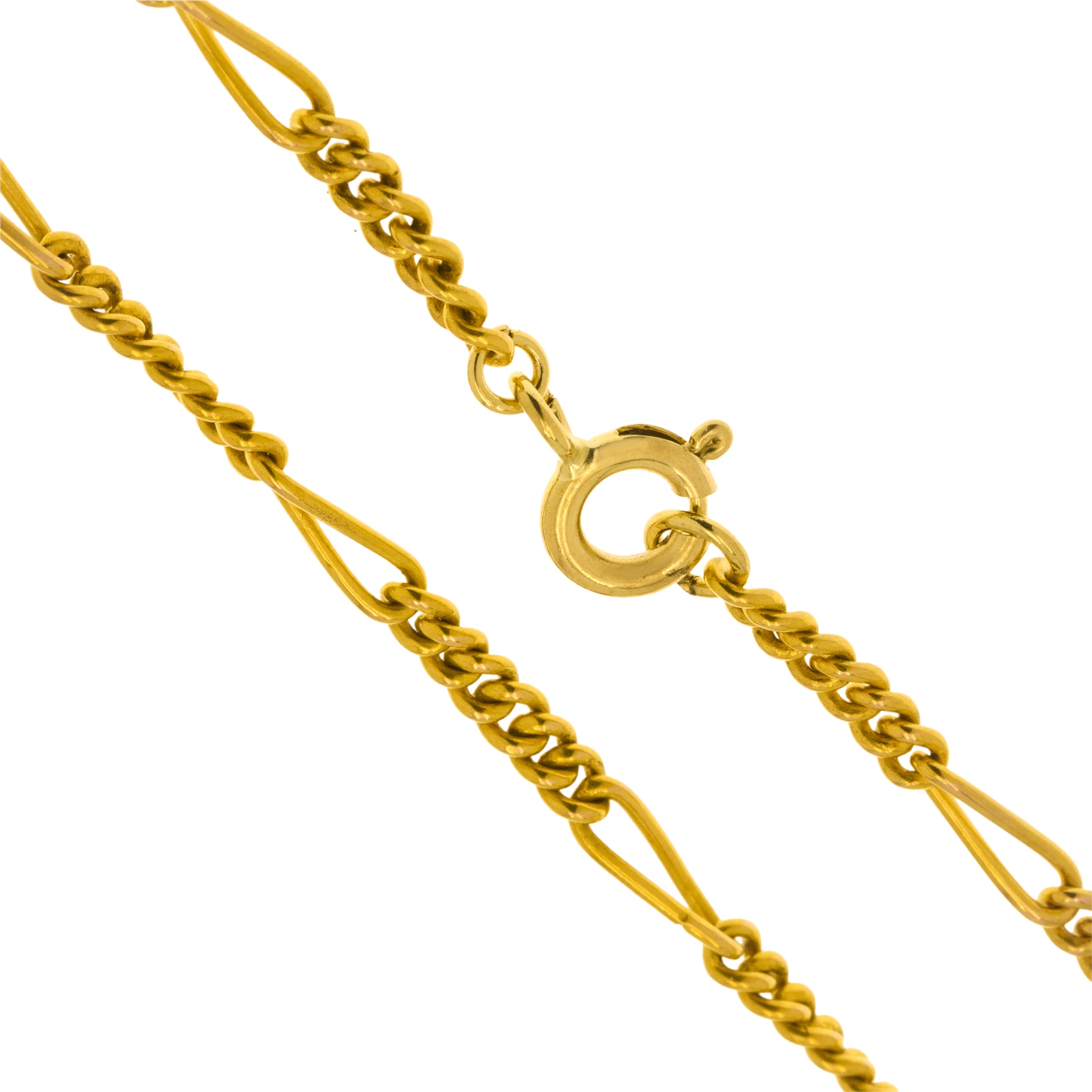 EXCELLENT. This antique 9ct Gold Figaro bracelet is in excellent condition. Her Figaro links are flawless, with a uniform design that is perfectly interlinked. The bolt ring is in perfect working condition allowing you to wear this antique Gold bracelet with the utmost confidence!