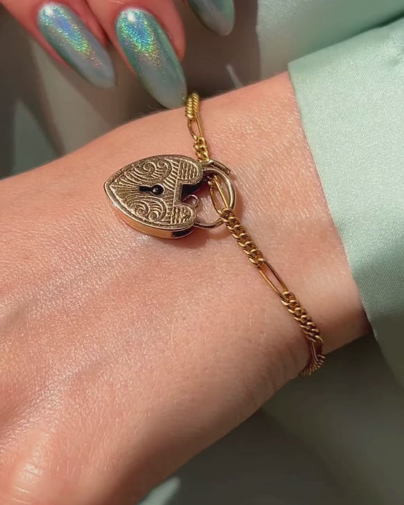 This antique 9ct Gold Figaro bracelet is sure to become a staple within your jewellery collection. Her Figaro links perfectly caress your wrist, crafted from sun-kissed 9ct Gold that radiates beneath the light.
