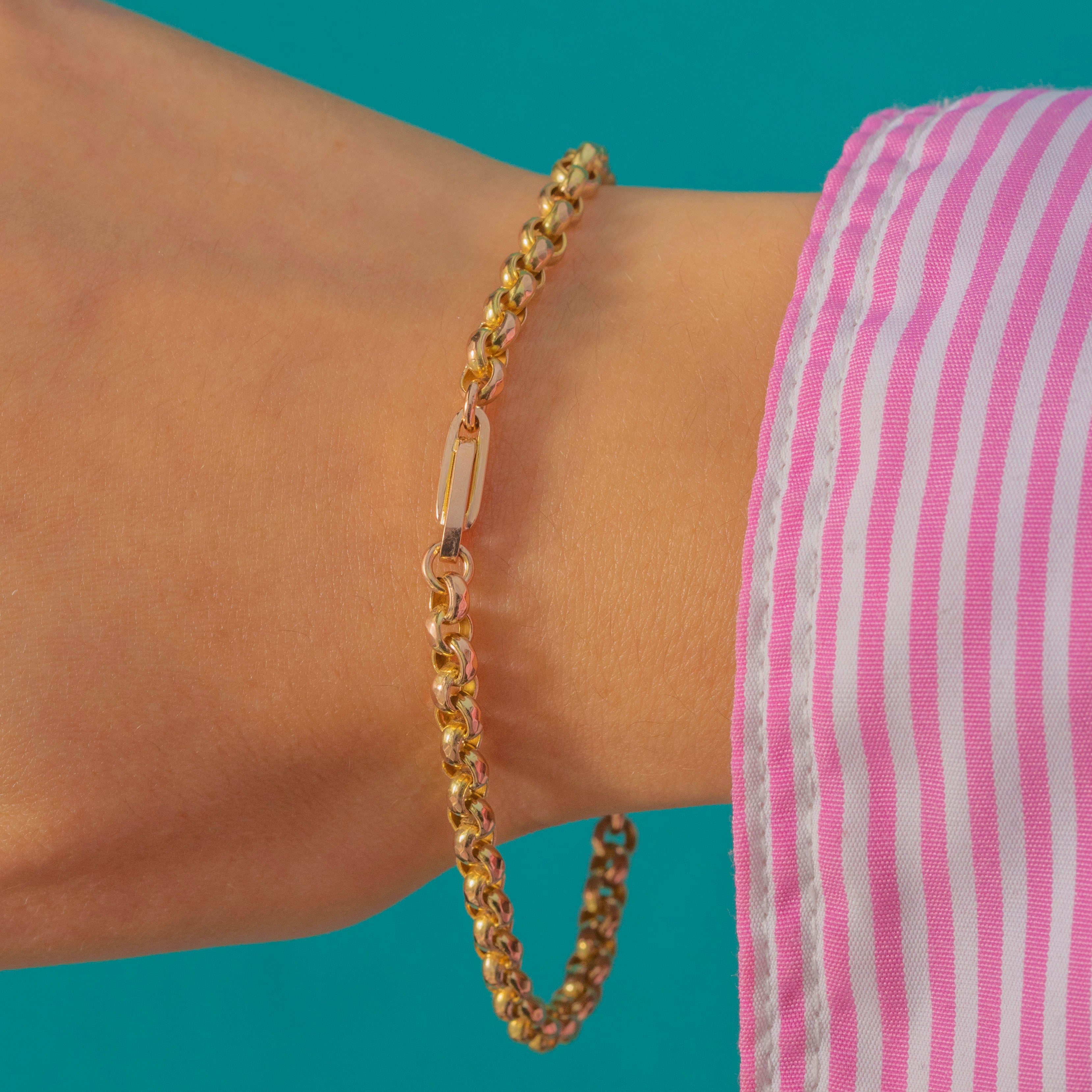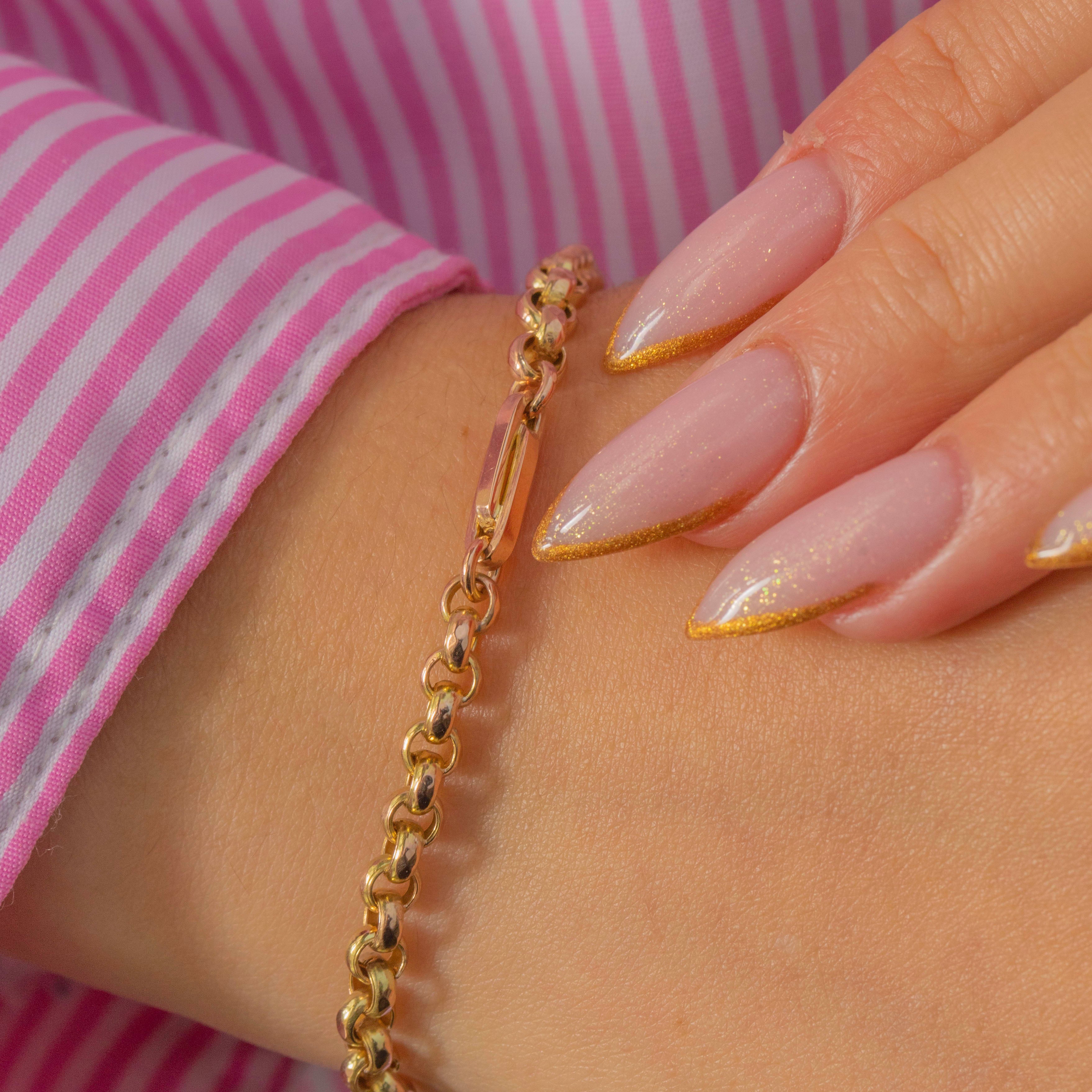 This charming Victorian bracelet features sumptuous, rounded belcher links centred by a chunky, fancy paperclip link, crafted in rich 9ct Gold.