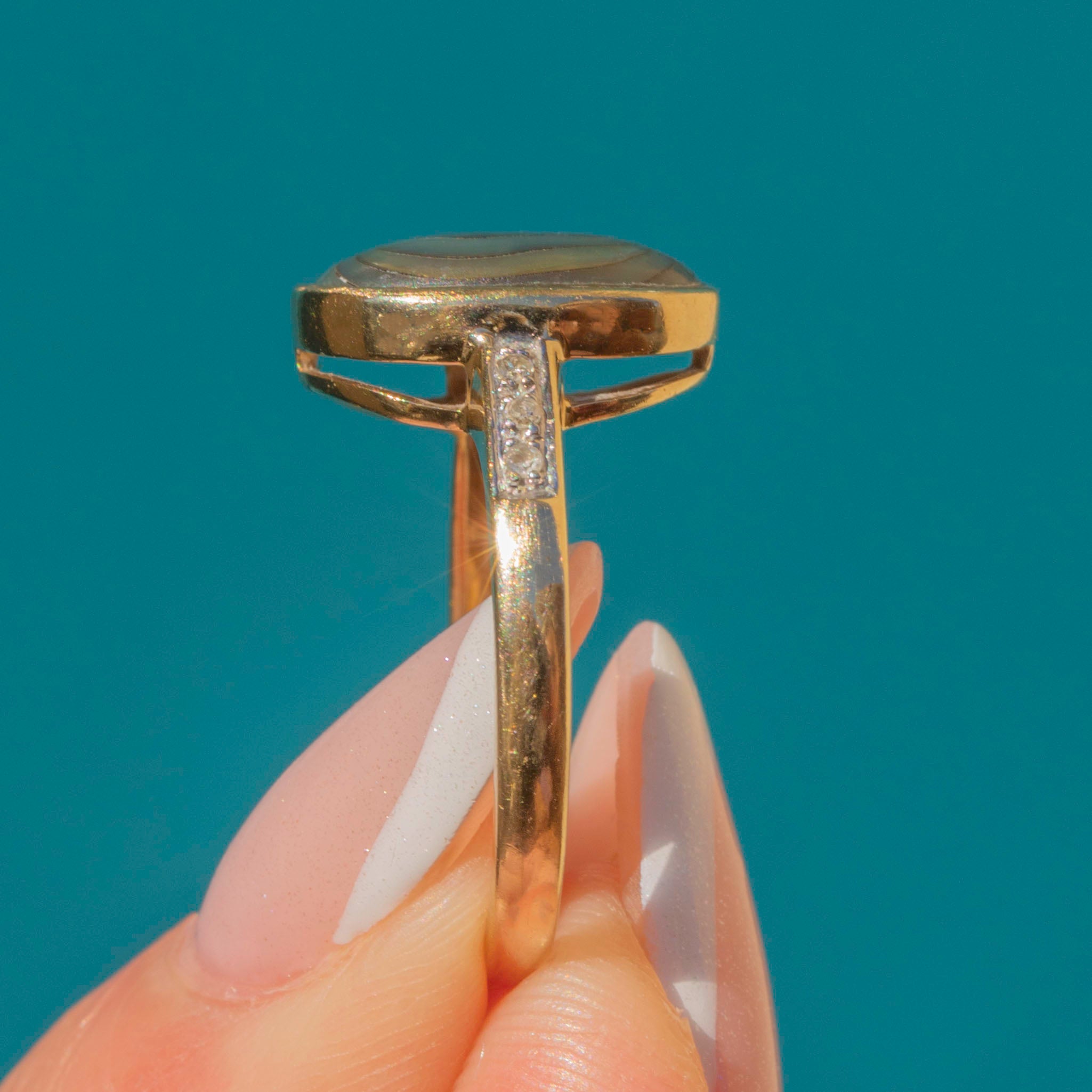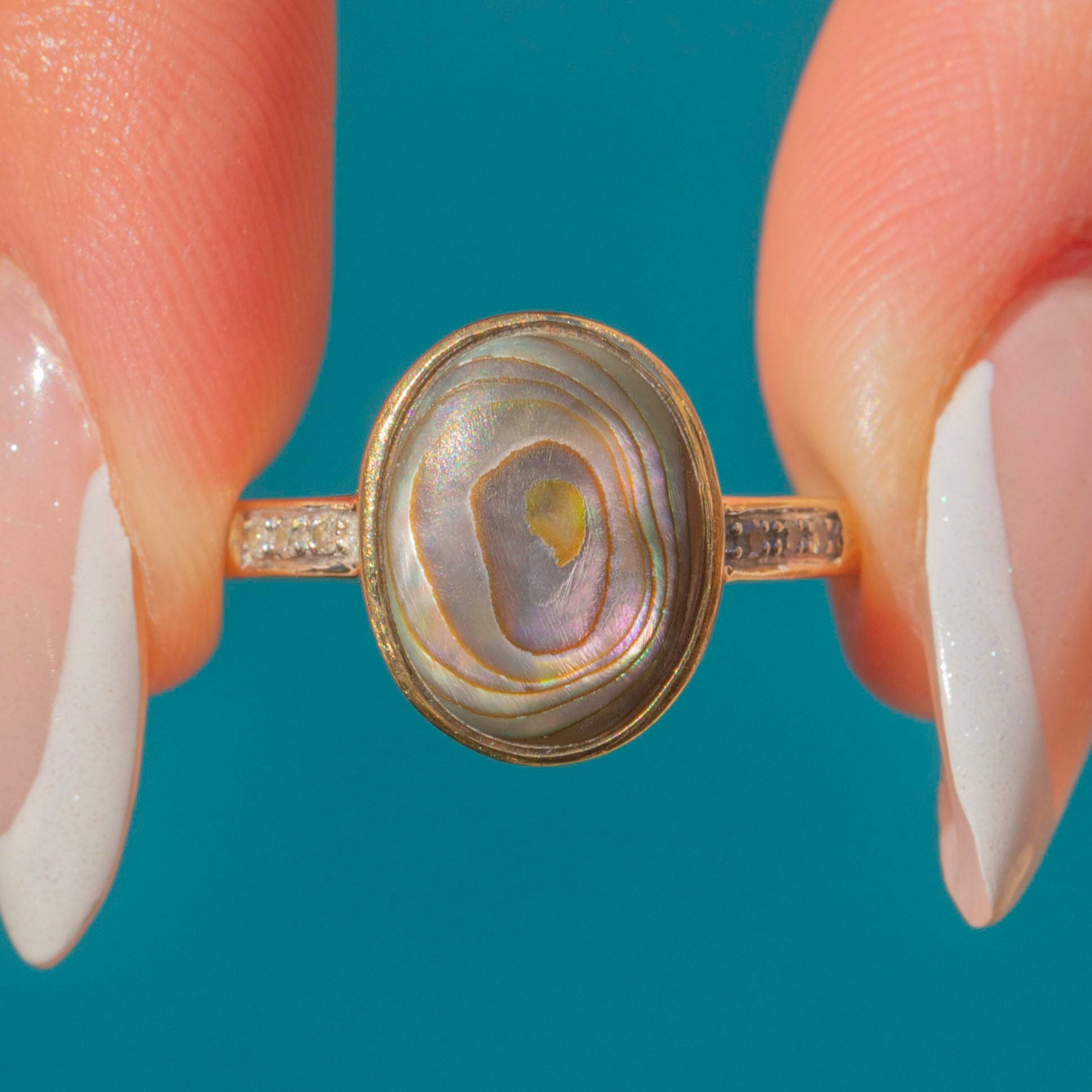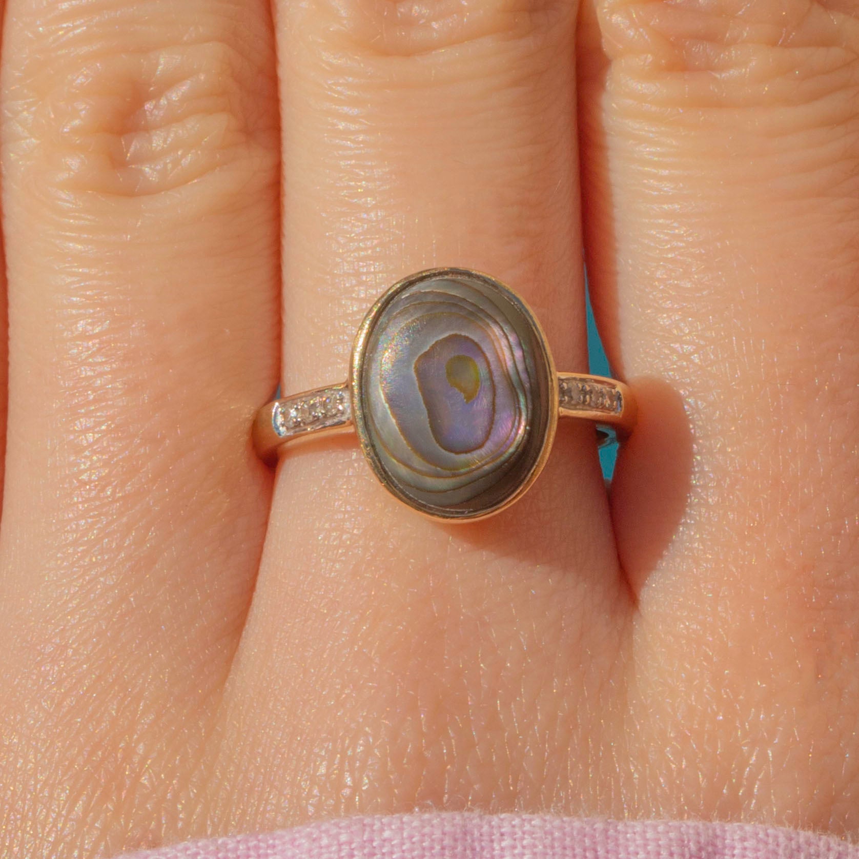 9ct Gold Abalone Shell Diamond Ring