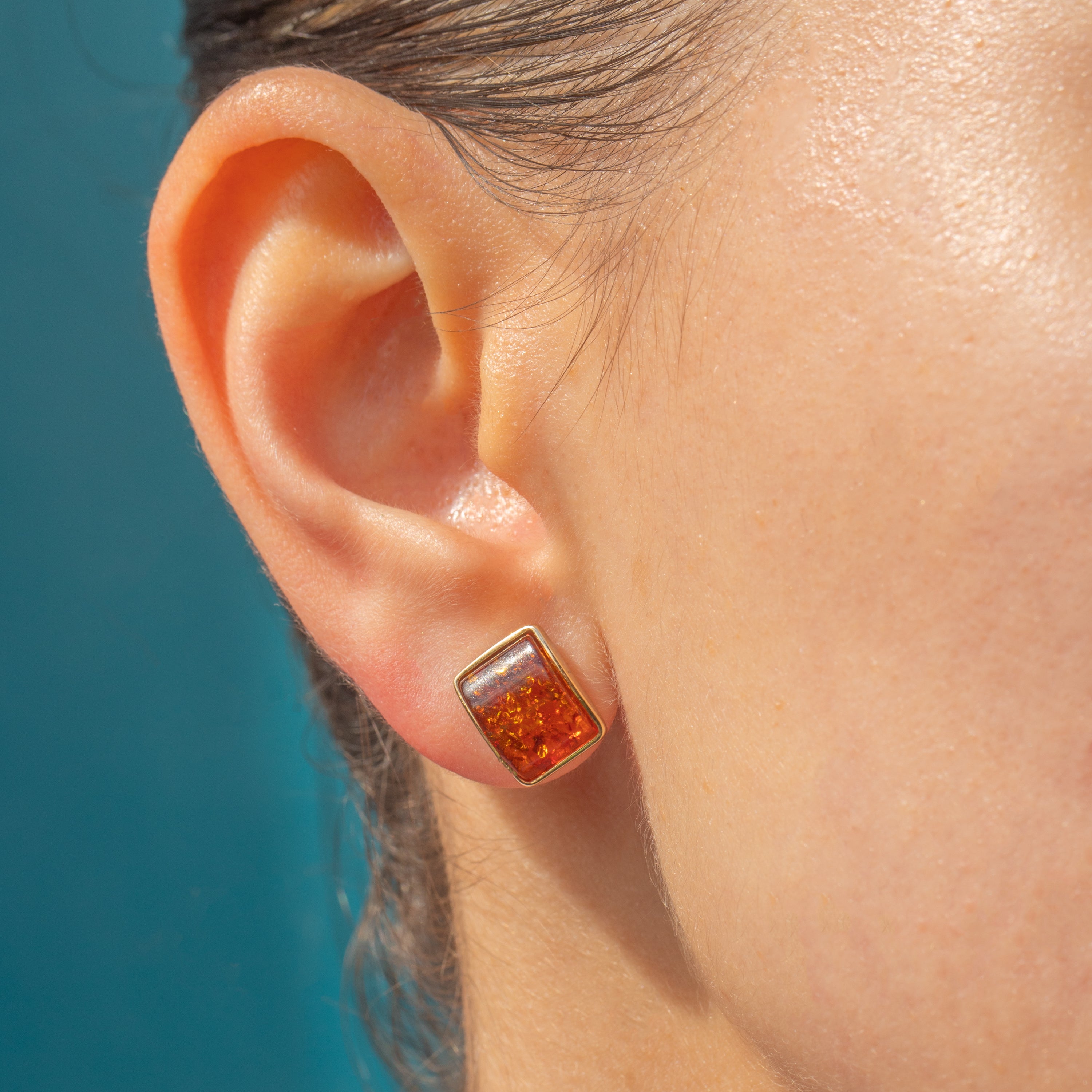 The elegant curve of these cute 9ct Gold Amber stud earrings gives them an undeniably striking appearance.