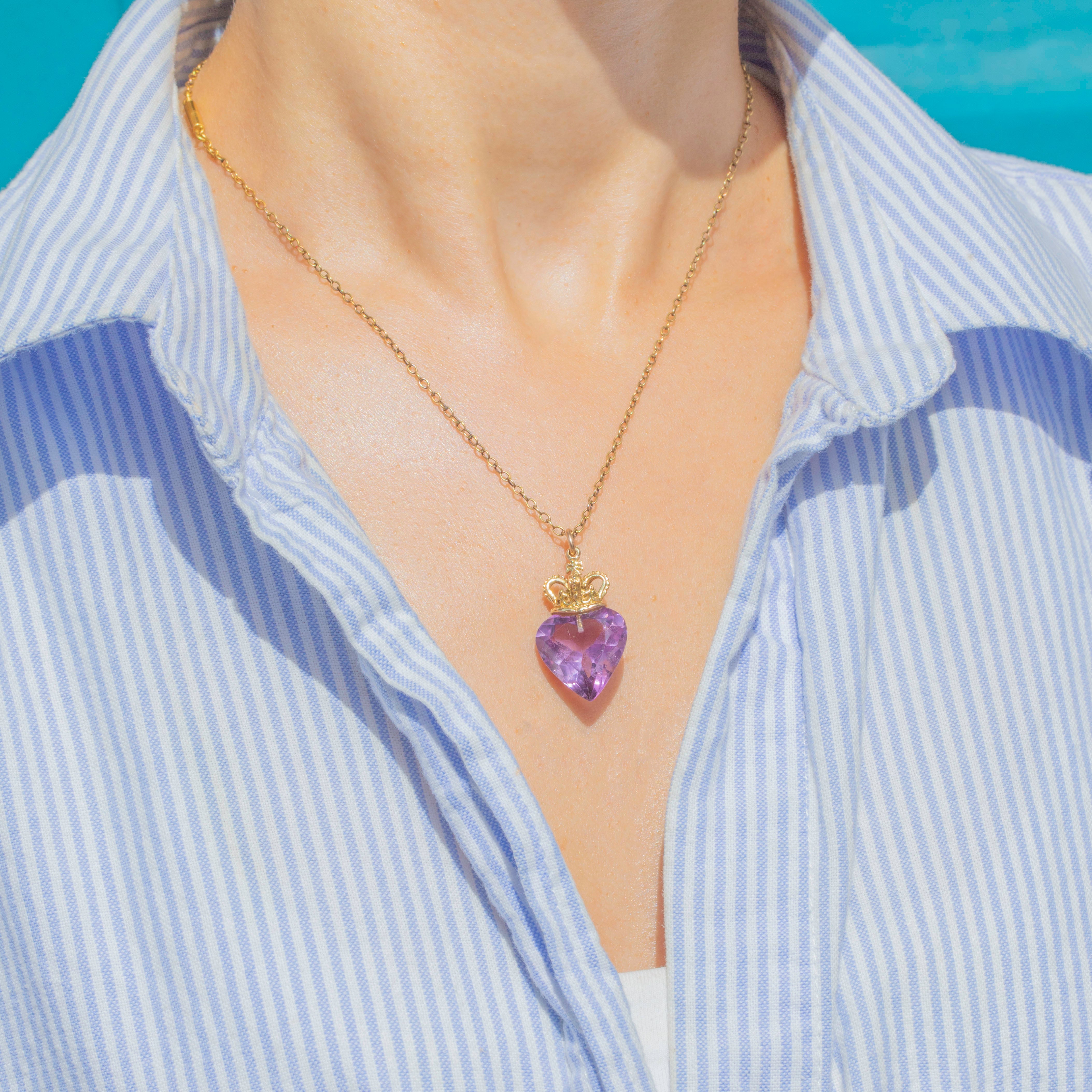 9ct Gold Amethyst Crowned Heart Pendant, 10.57ct