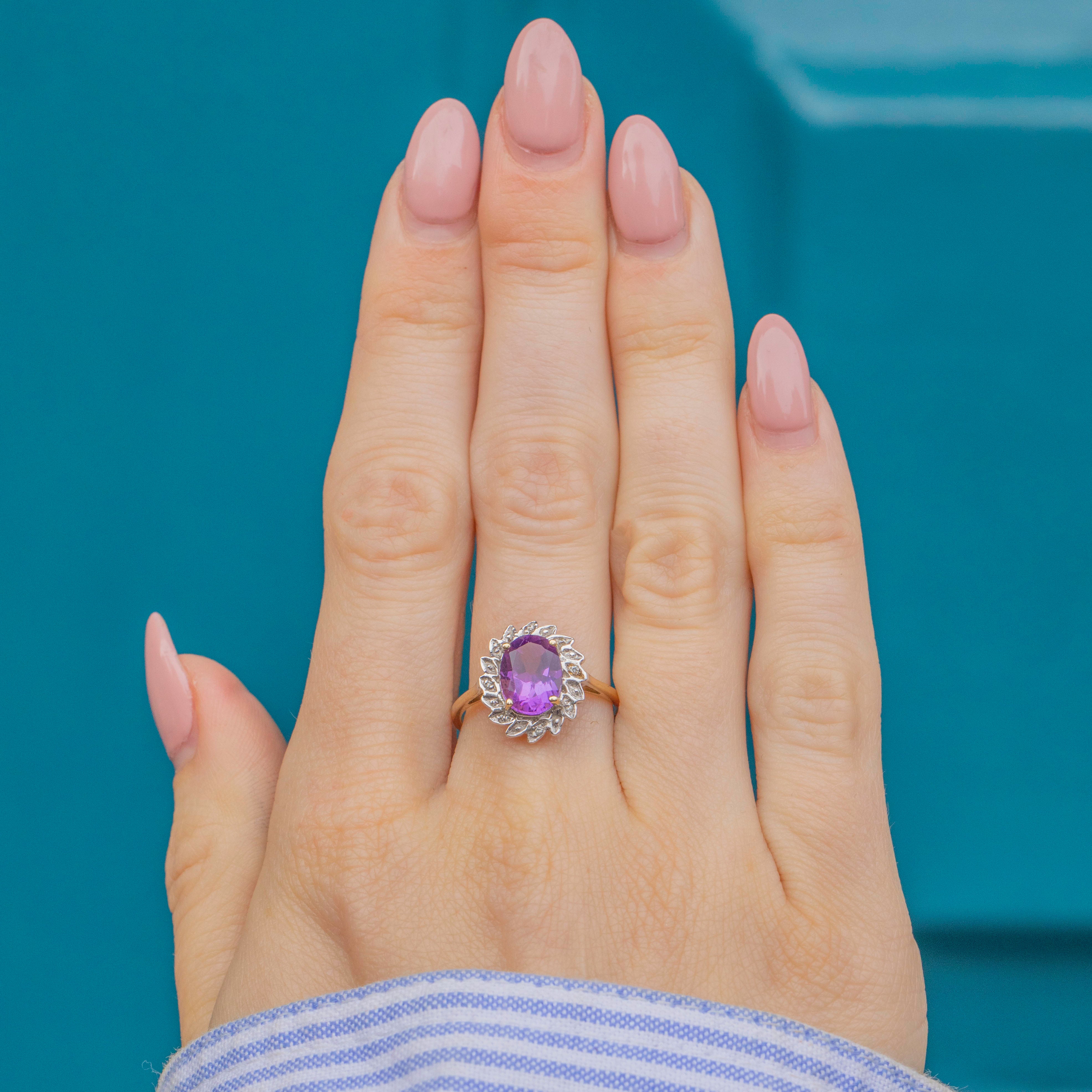 9ct Gold Amethyst Diamond Cluster Ring, 1.30ct Amethyst