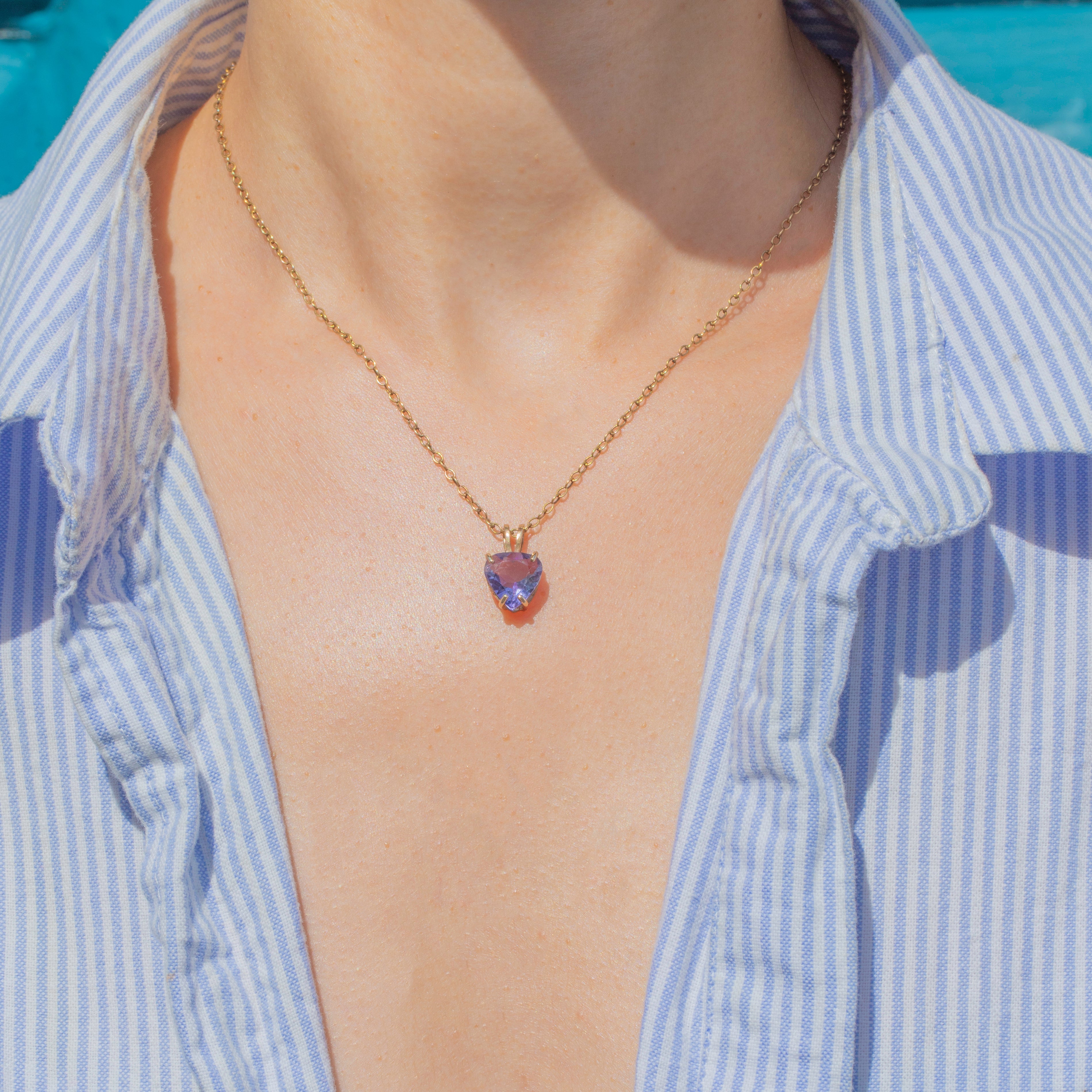 Her 1.90ct Amethyst has the most impeccable lilac hue, as though plucked from the midst of a lavender crop in Tuscany. Faceted beautifully, she is set within a buttery 9ct Gold heart setting, exuding regal charm.