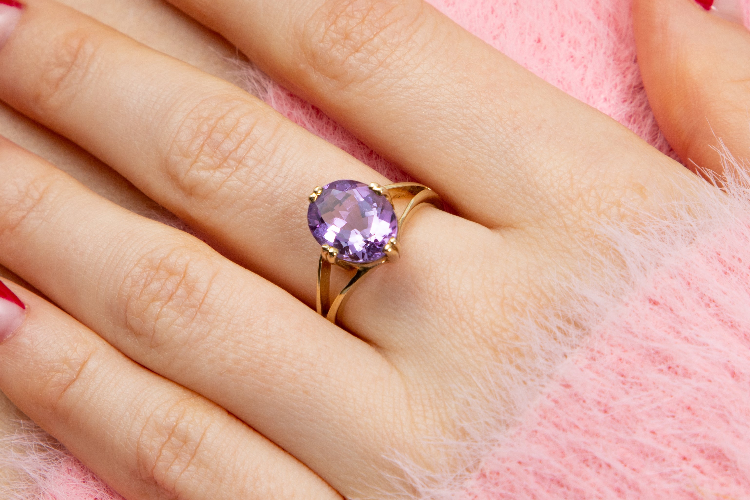 9ct Gold Amethyst Oval Solitaire Ring, 2.70ct