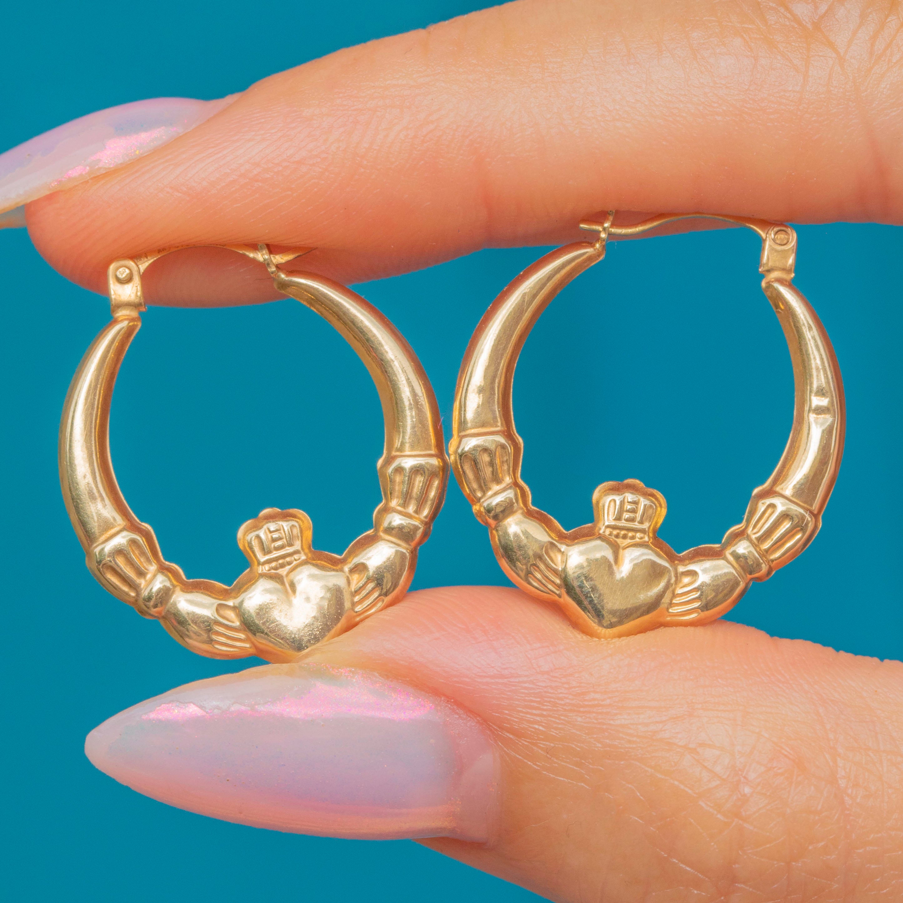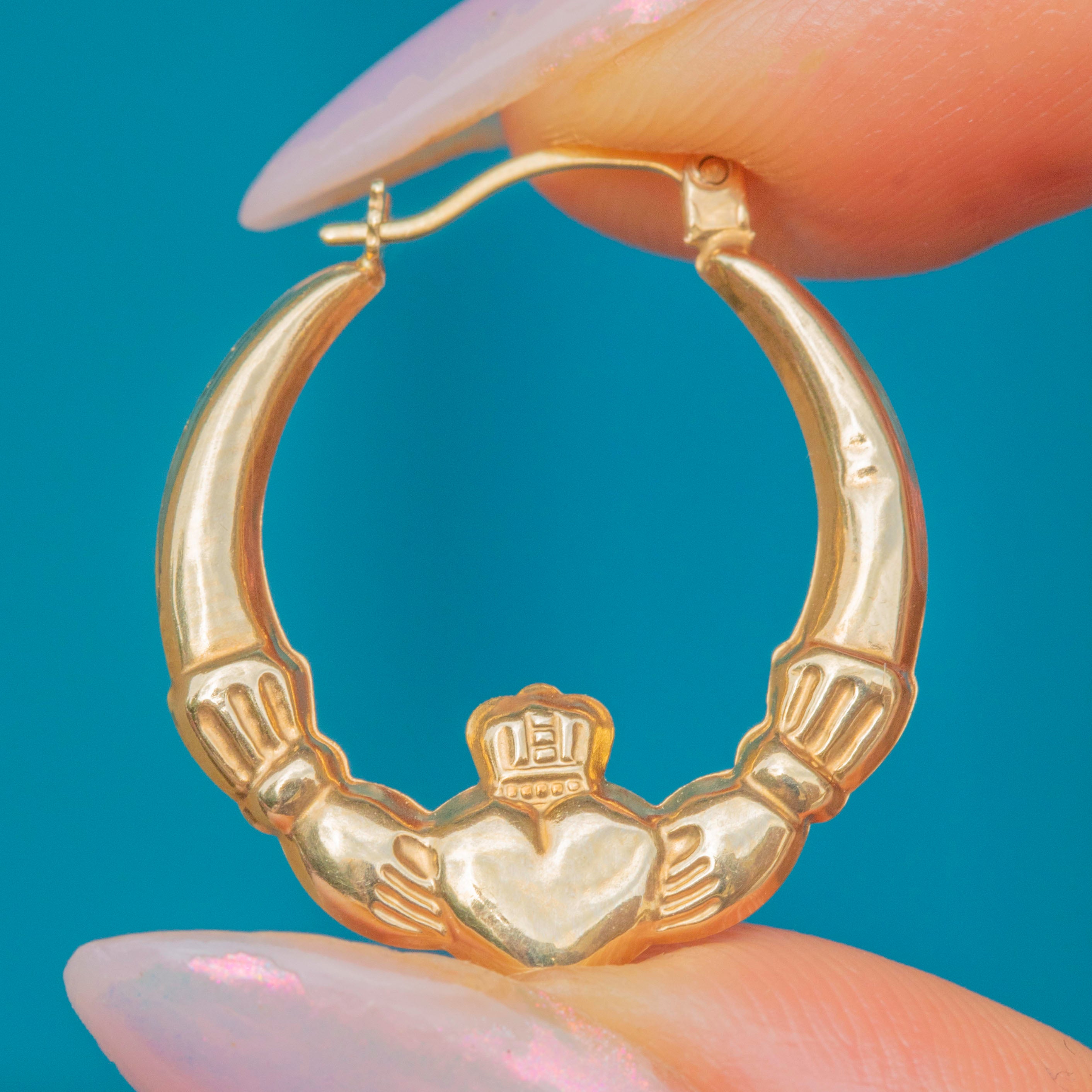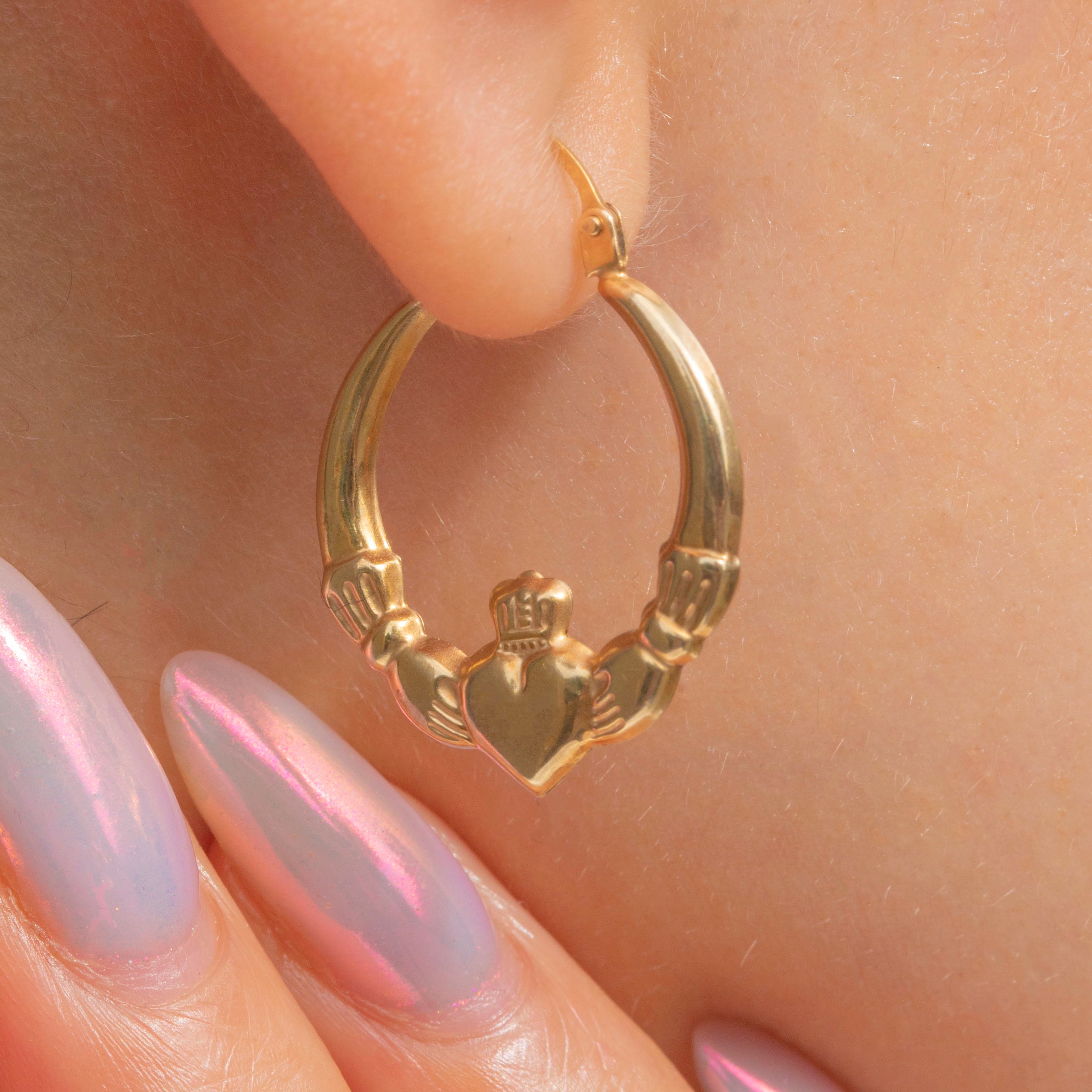 These 9ct Gold heart Claddagh hoop earrings are the sweetest pair, and they're perfect for wearing all day, every day!