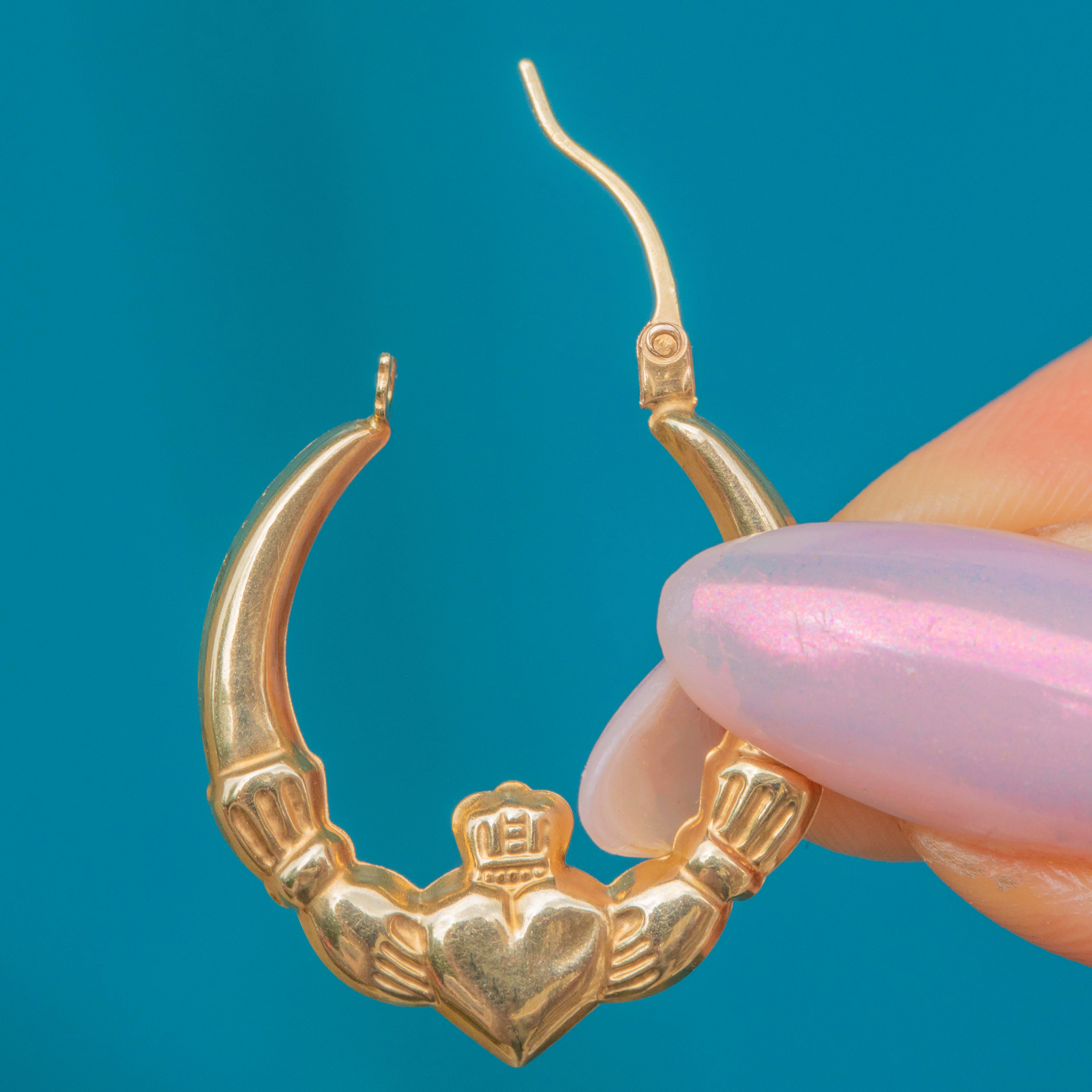 9ct Gold Claddagh Hoop Earrings