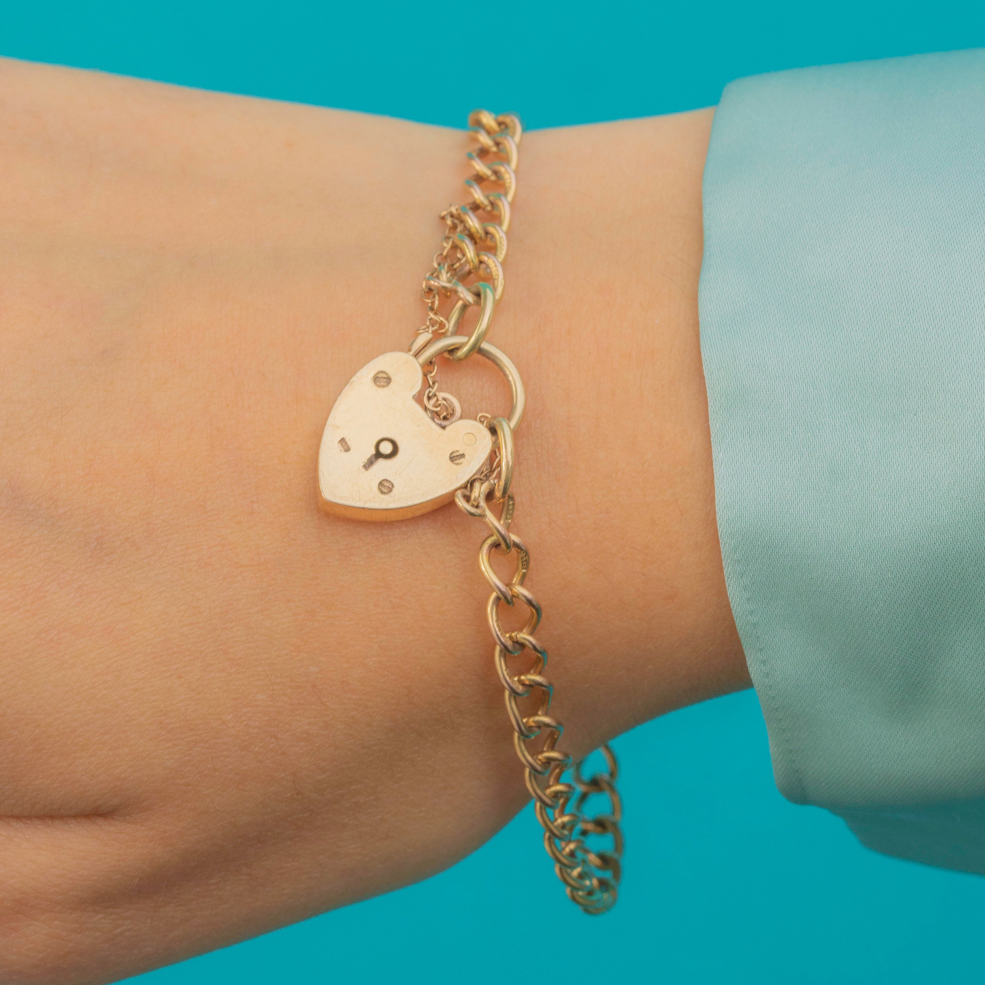 The links have a lovely fluid feel against the wrist, measuring 4.5mm wide for a versatile medium weight that can be worn every day. The heart padlock clasp is hallmarked for Birmingham 1964, adding a special touch of provenance to this mid-century treasure.