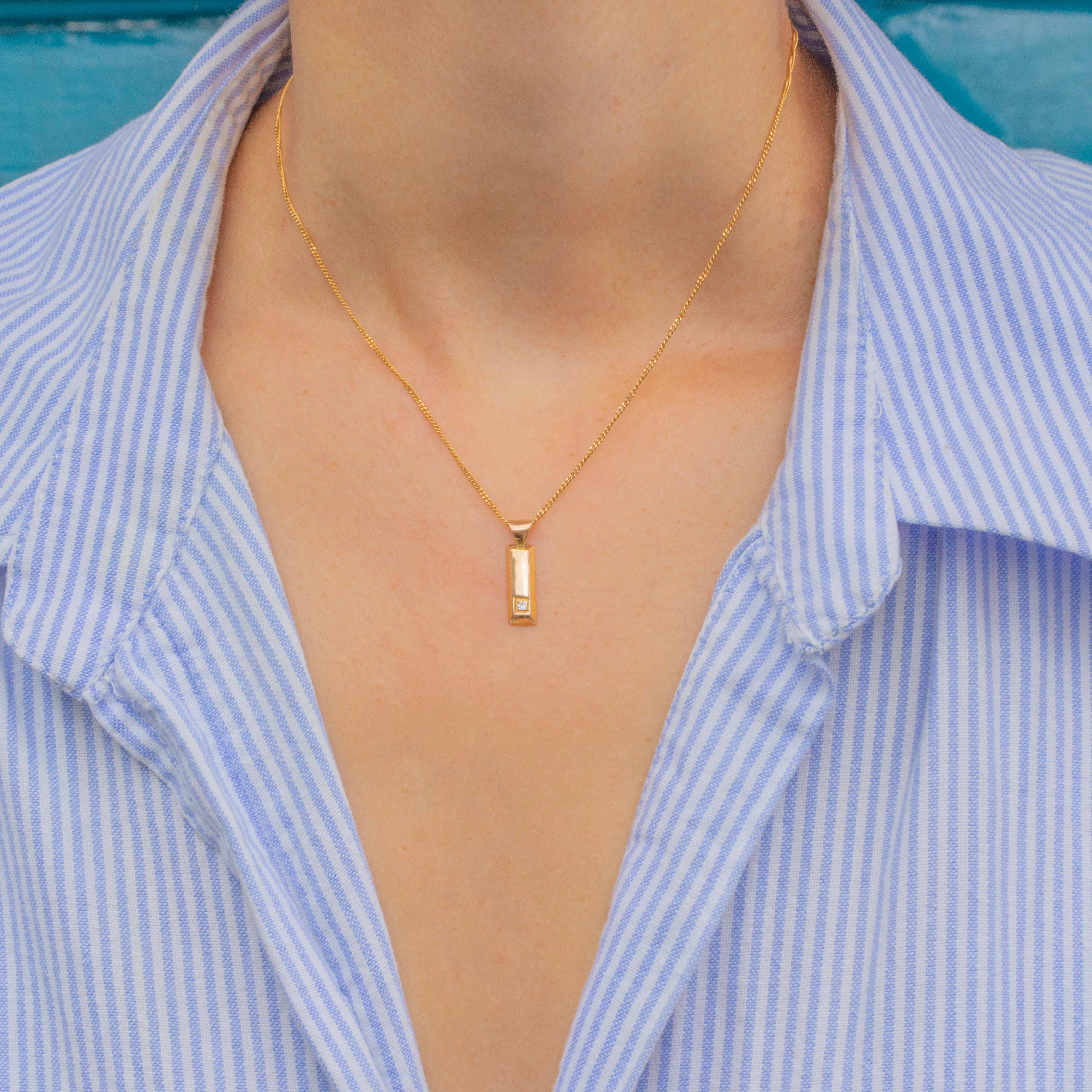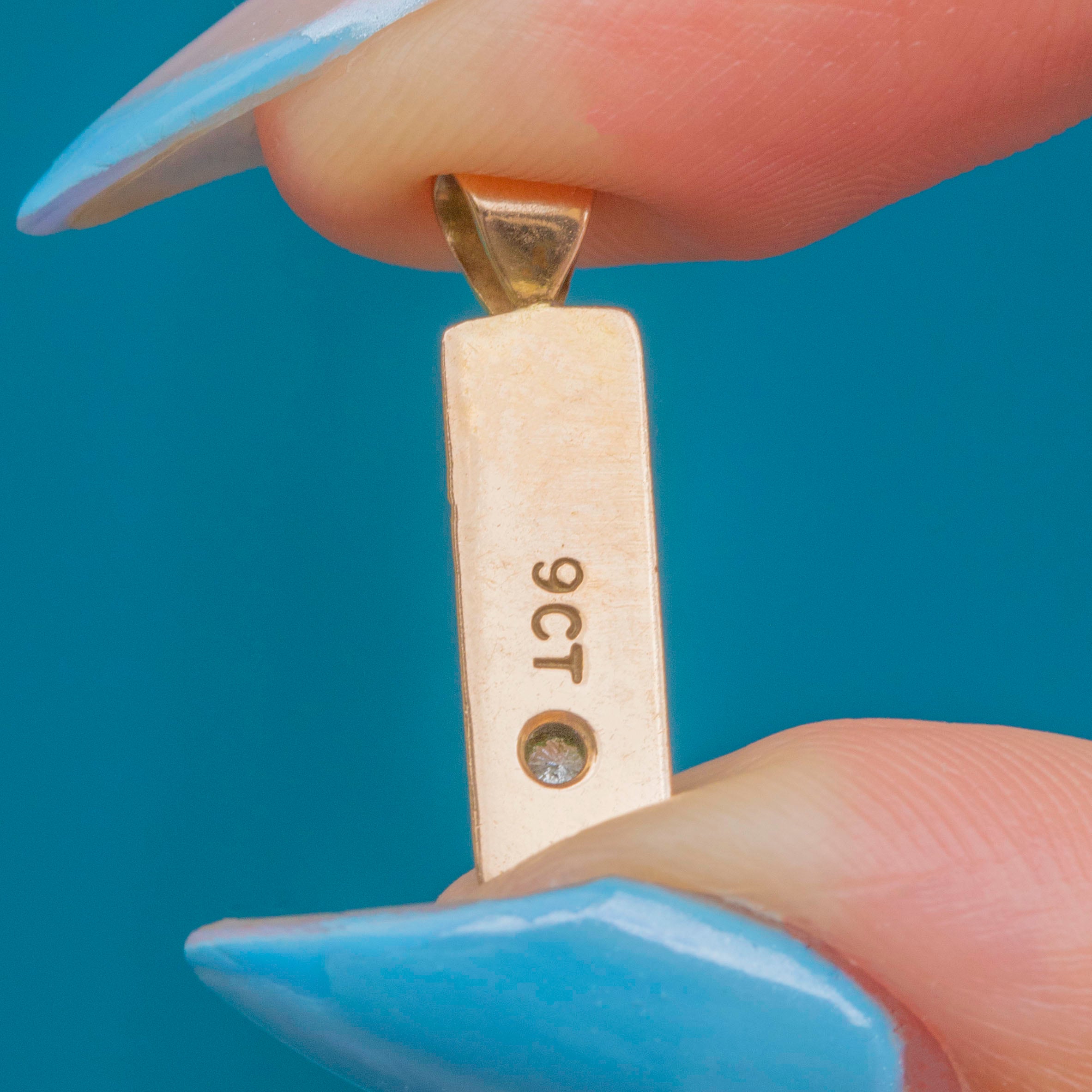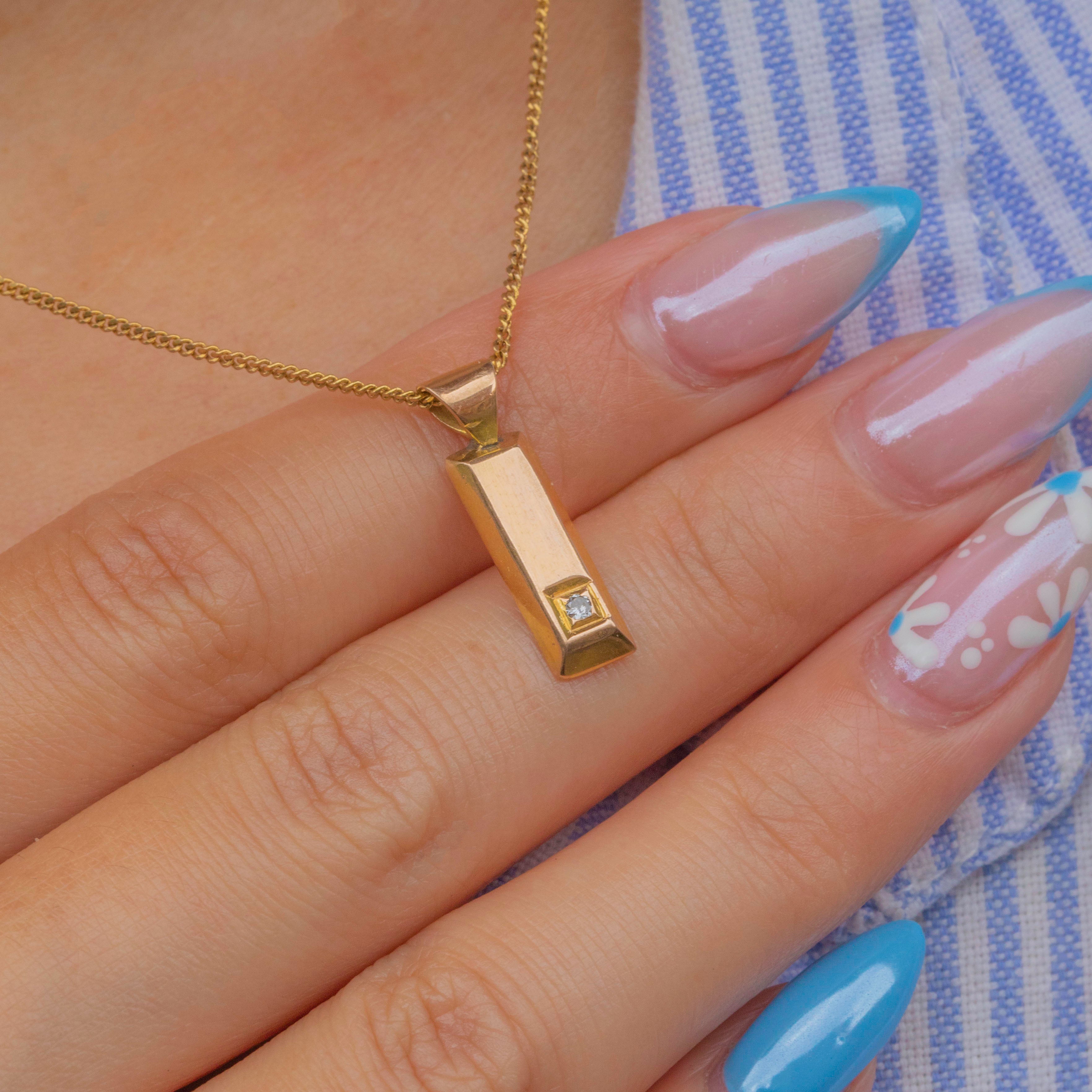 Bright and glossy, this vintage ingot charm is crafted entirely from 9ct Gold and features a bright Diamond, adding an eye-catching sparkling accent.