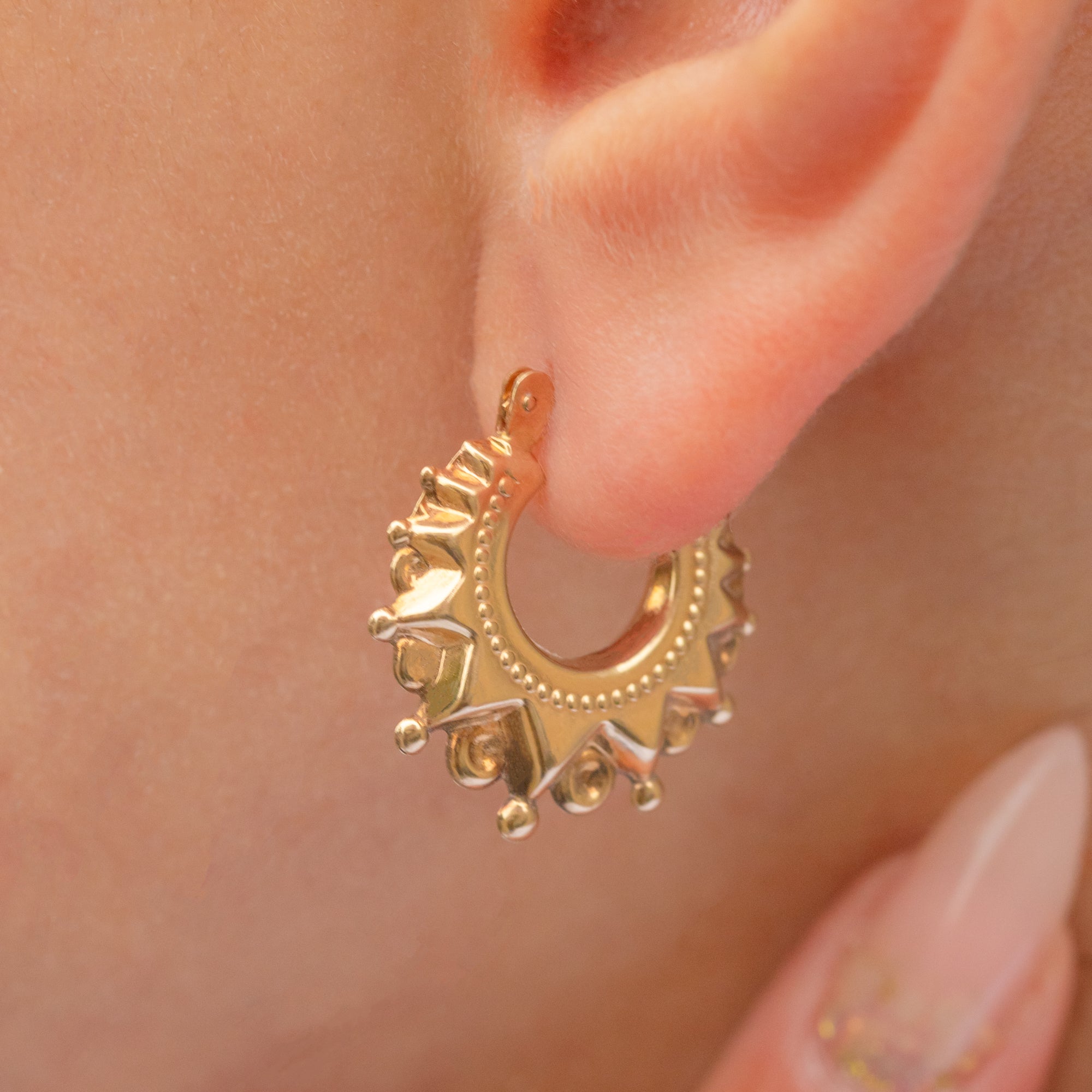 Lightweight yet full of character, these vintage Gold hoops are perfect worn alone for a subtle statement or paired with other Gold jewels for a layered look.