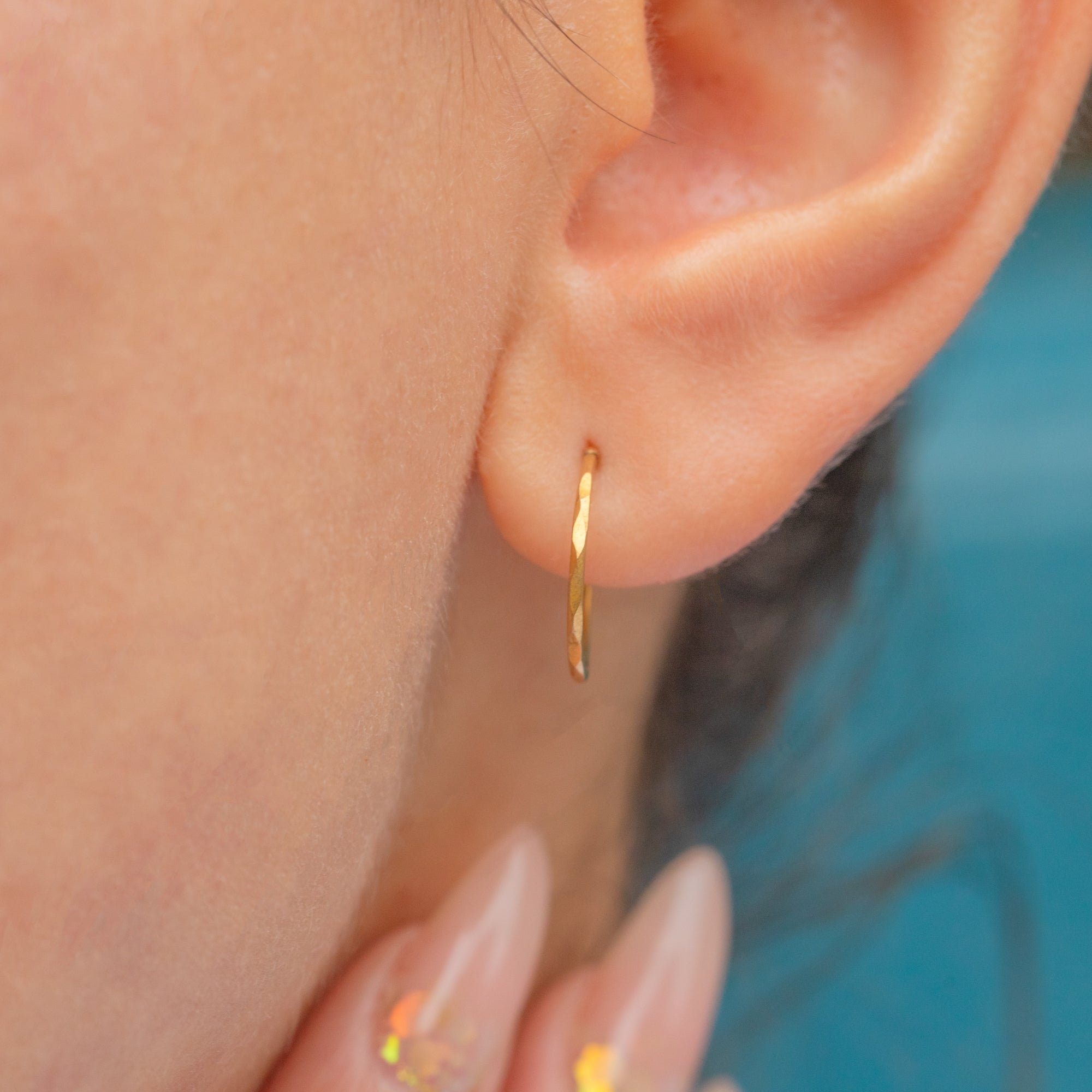9ct Gold Faceted Sleeper Hoop Earrings