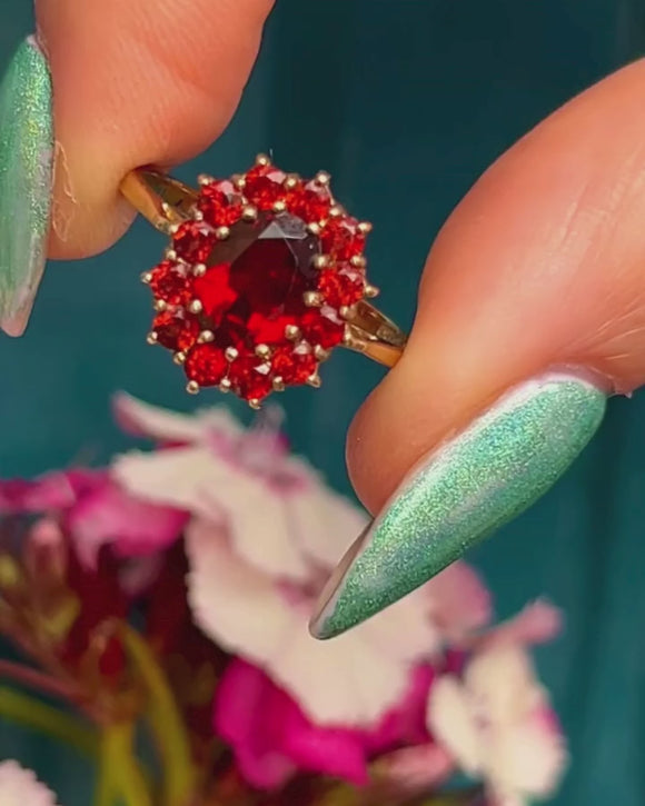 9ct Gold Garnet Flower Cluster Ring