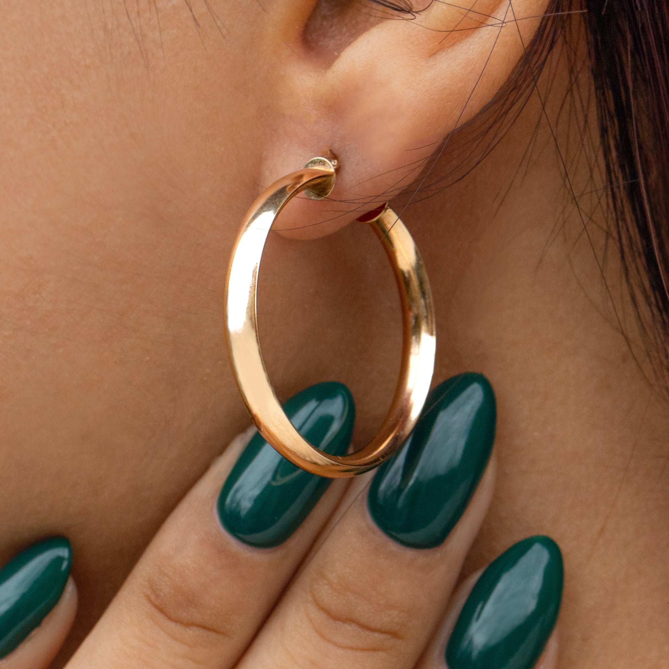 Silky smooth to the touch, they are a classic hoop design and one you will never tire of! Wear as a stand-alone pair or incorporate them into an earring stack, however you choose to style them, they are sure to spark conversation!