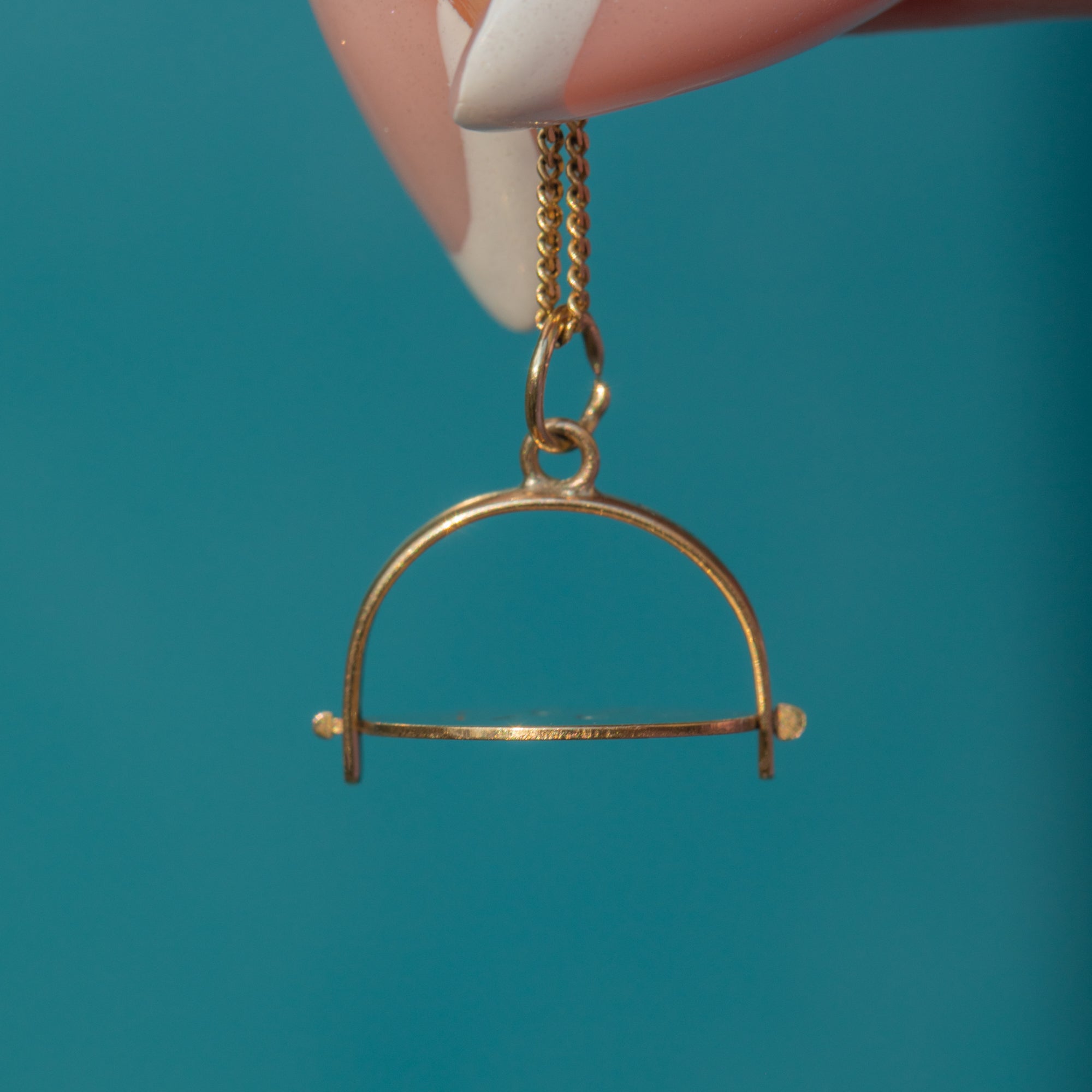 Lightweight and petite in size, this mid-century charm is perfect for everyday wear and will suspend elegantly from a fine Gold chain across your décolletage!