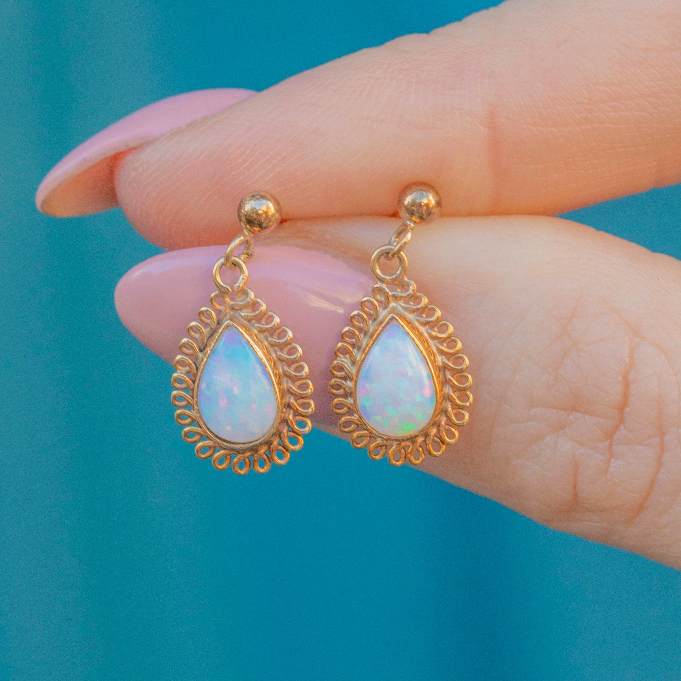 These 9ct Gold Opal pear drop earrings are a delight!
