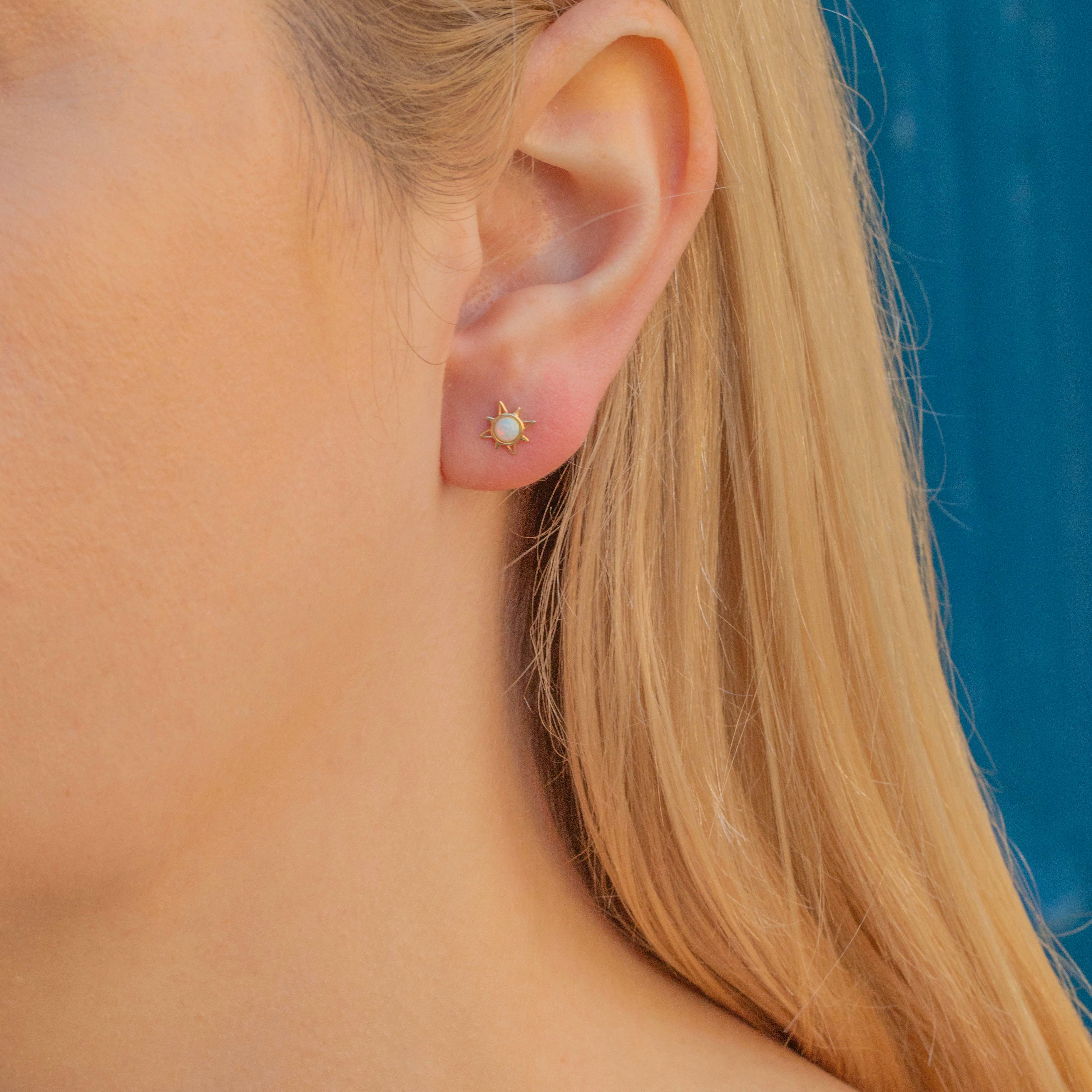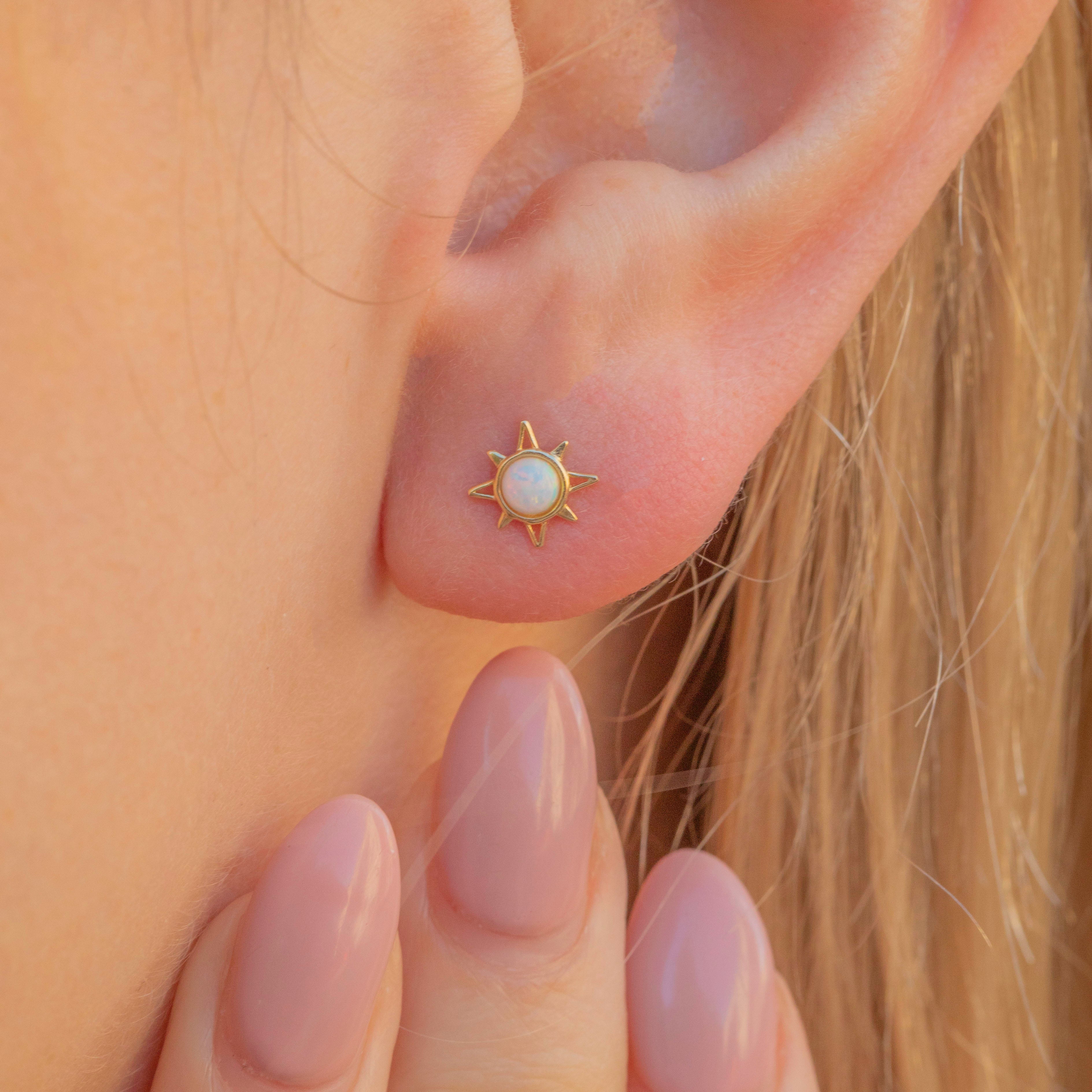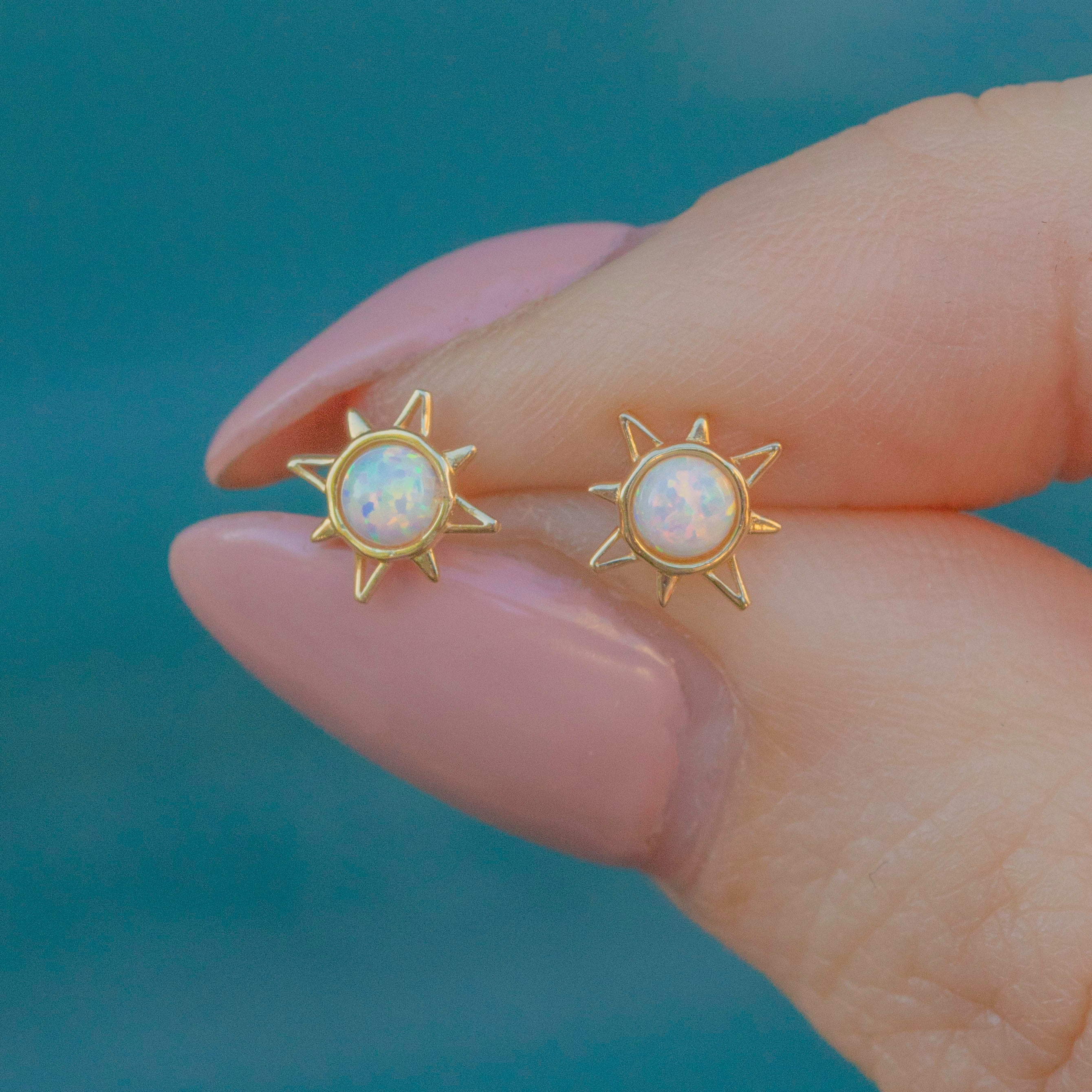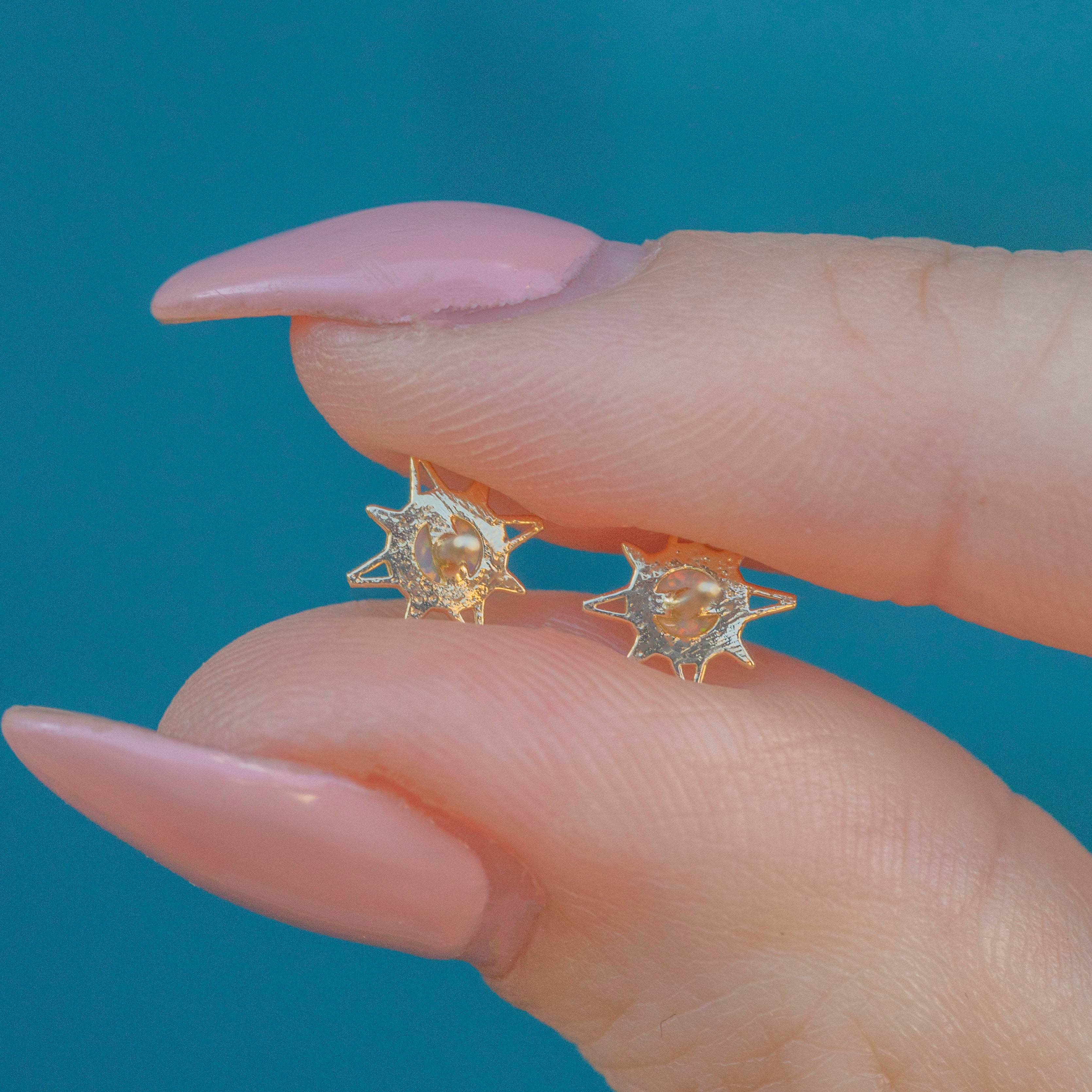 Check out this cute and dainty pair of super-wearable 9ct Gold Opal starburst stud earrings!