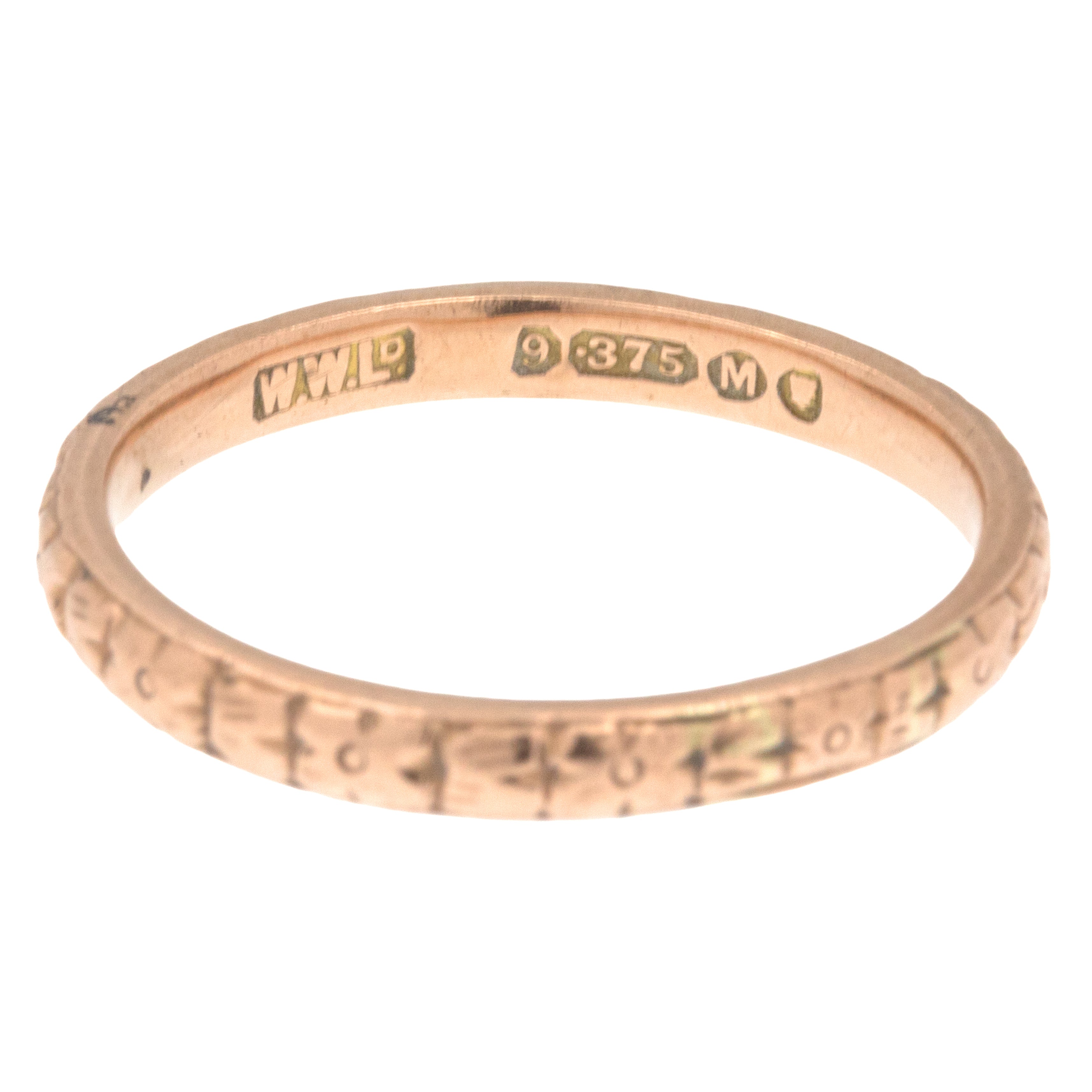 HALLMARKS: WWLD Makers mark, 9, .375, Leopard's Head, Date letter M for the year 1947.