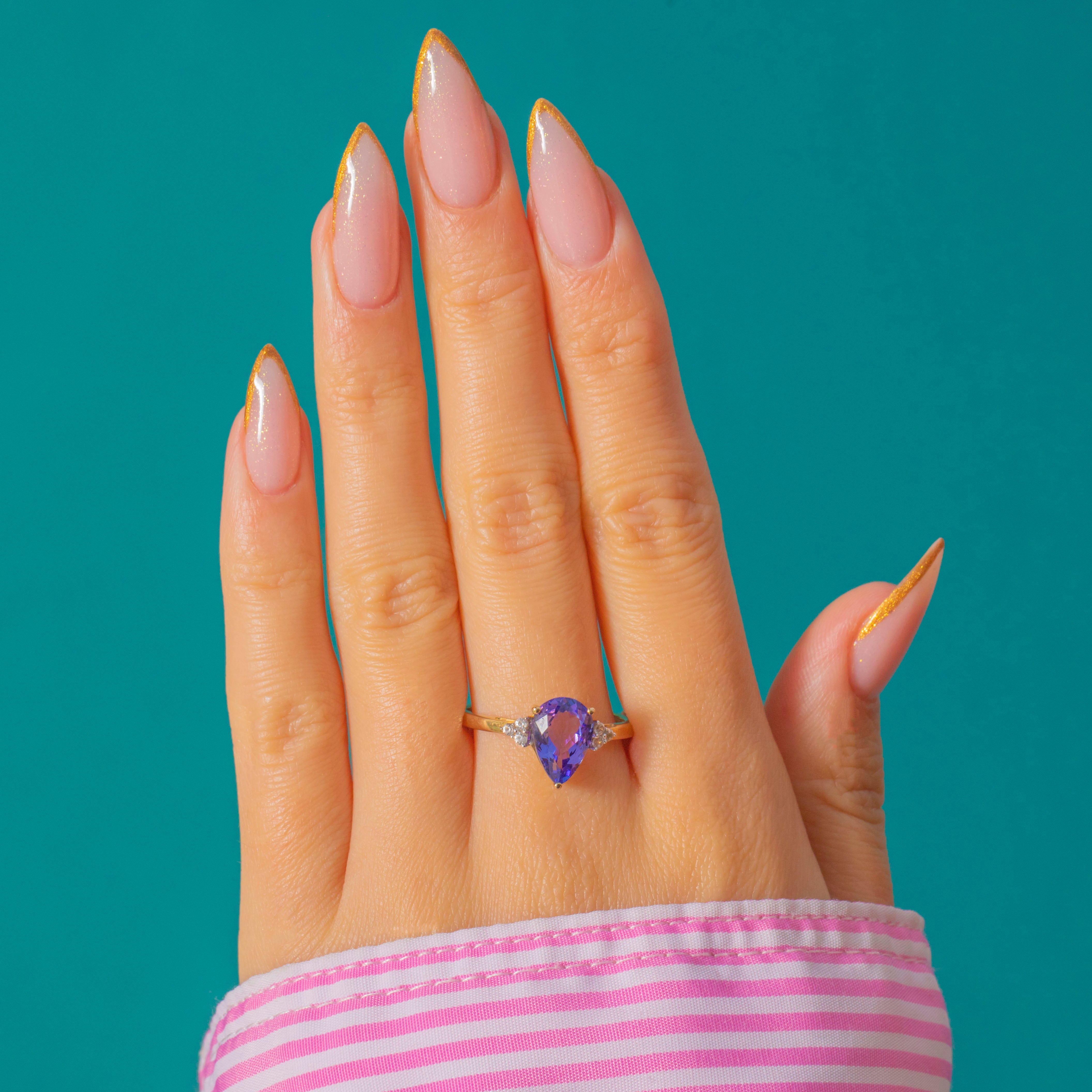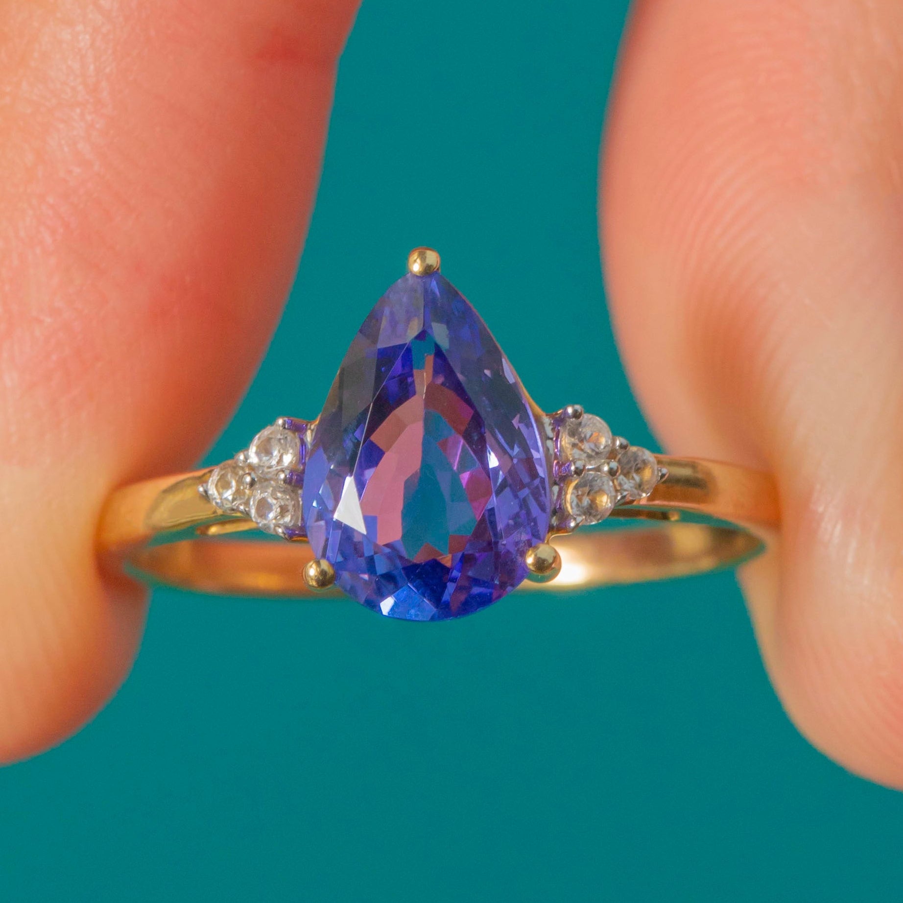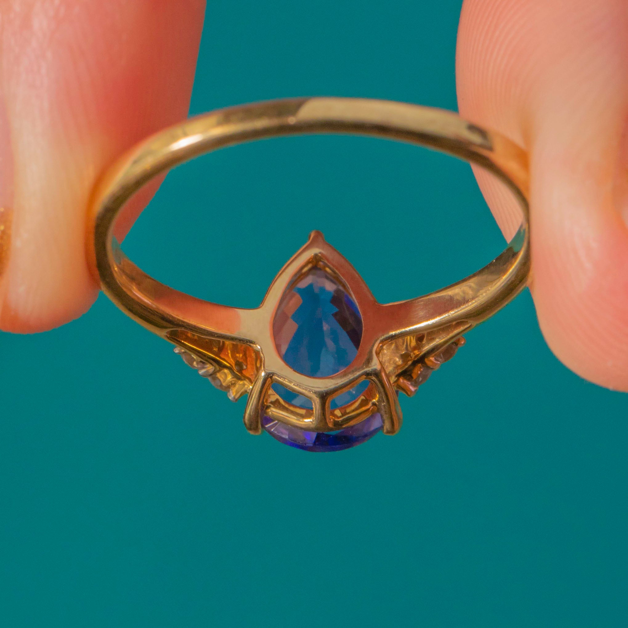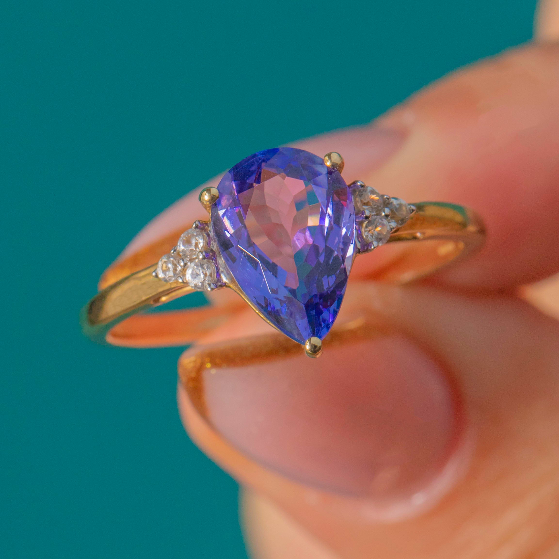 9ct Gold Pear-Shaped Tanzanite Diamond Ring, 1.35ct Tanzanite