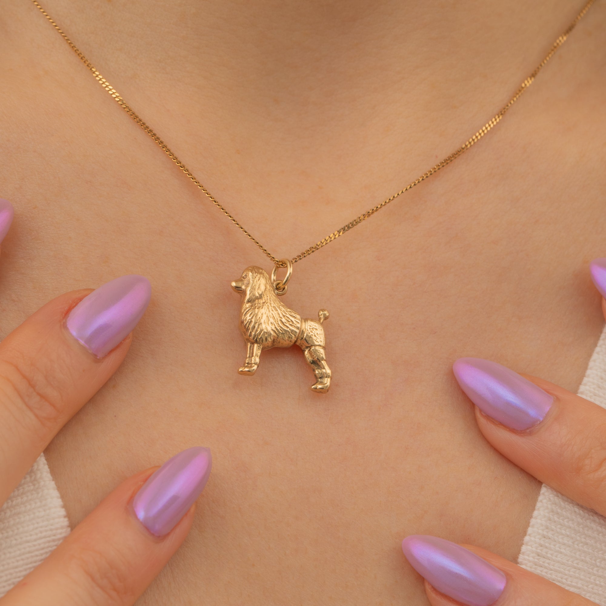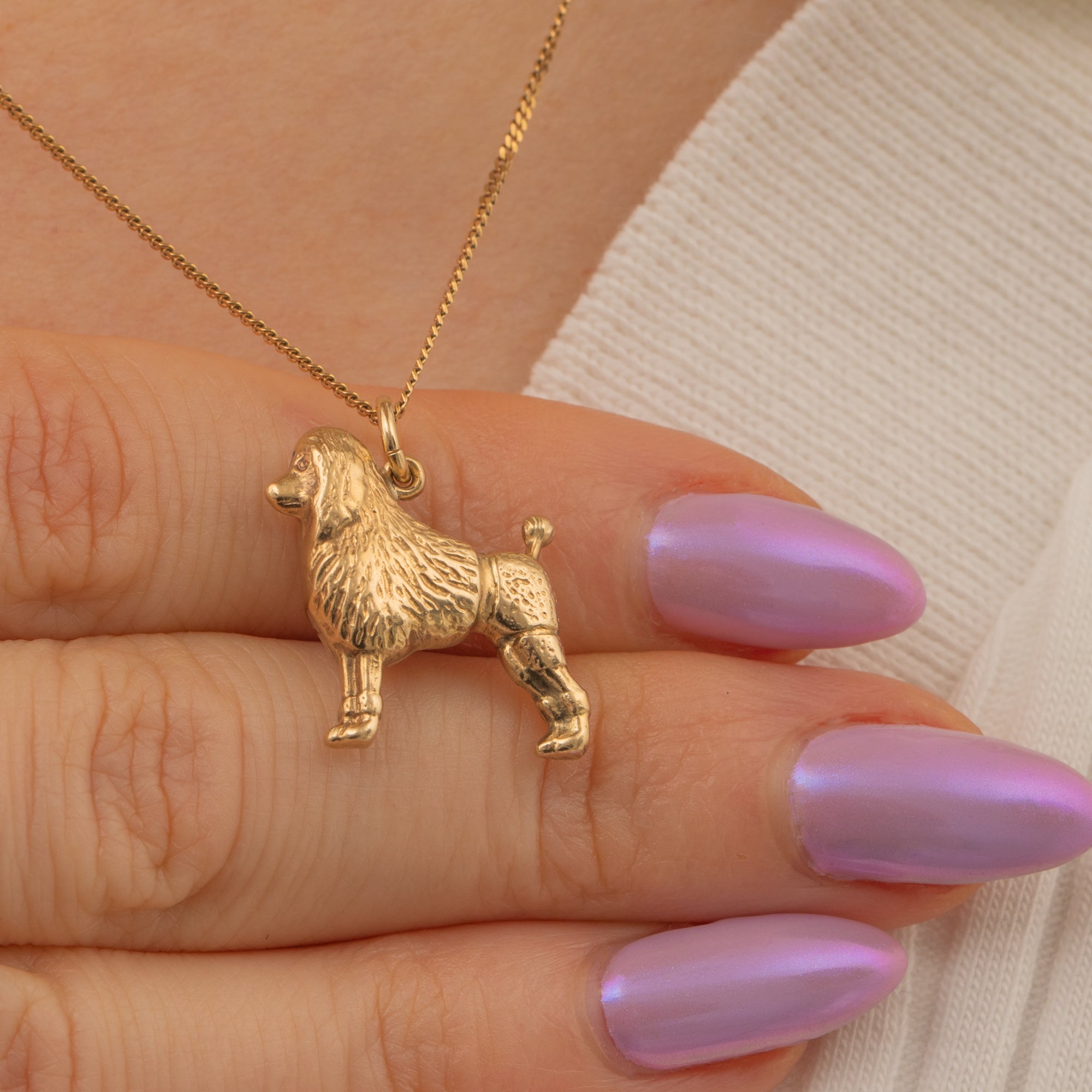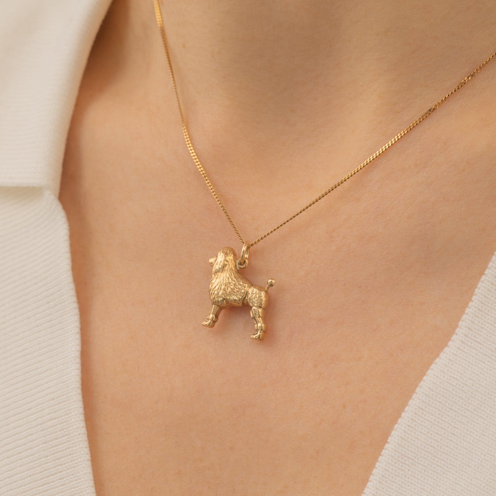 This cute 9ct Gold poodle dog charm is packed full of character! A celebration of man's best friend, this dainty dog pendant is crafted from solid 9ct Gold and boasts intricate details that perfectly capture this intelligent breed's elegant demeanor.