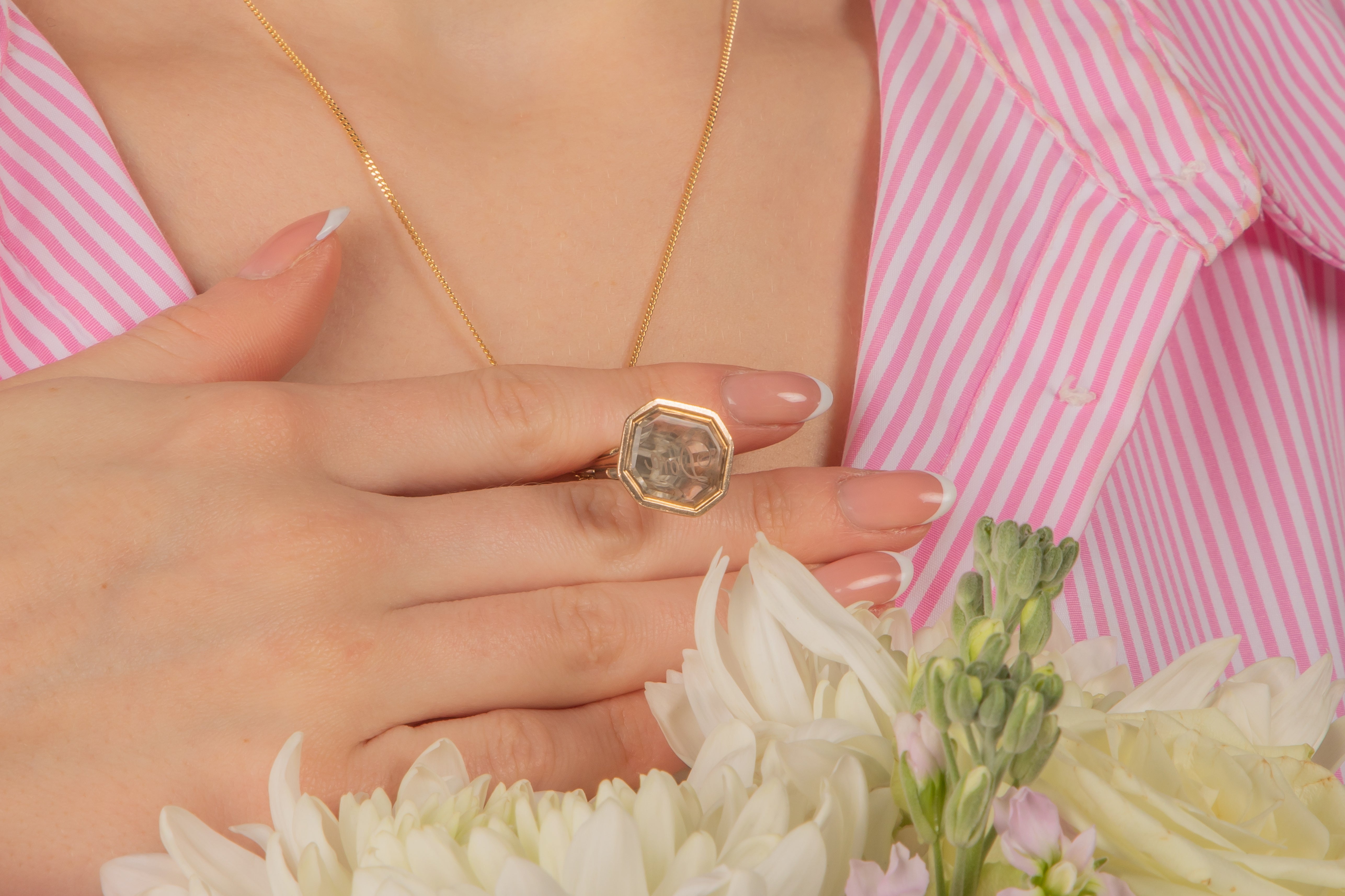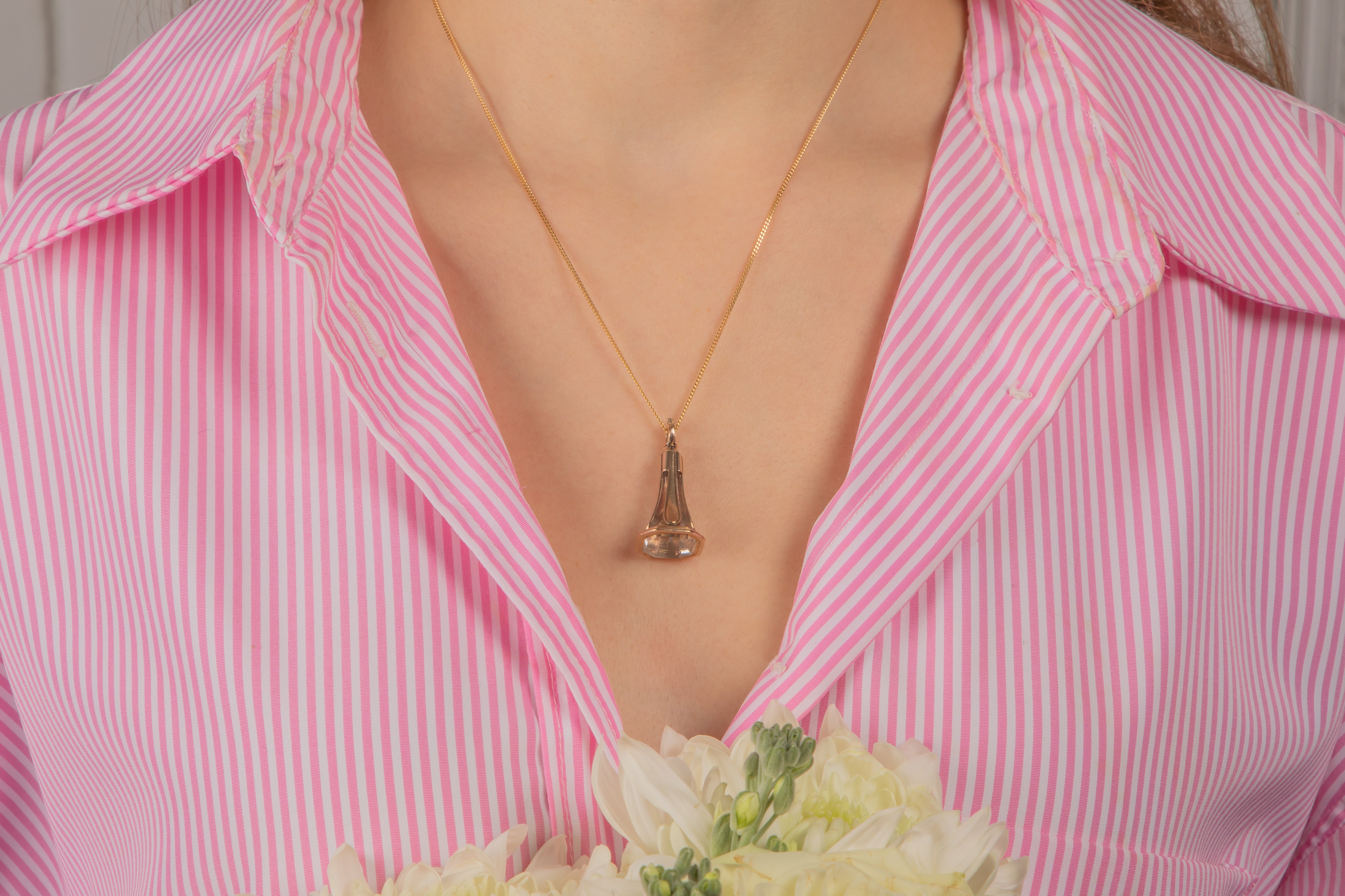 If your name is Dora or someone with that name is of significance to you, this 9ct Gold Rock Crystal seal pendant would make the perfect treat for yourself or a loved one! Her curvaceous pillars are crafted from buttery 9ct Gold, forming her sturdy outer structure and snuggly holding her Rock Crystal in place.