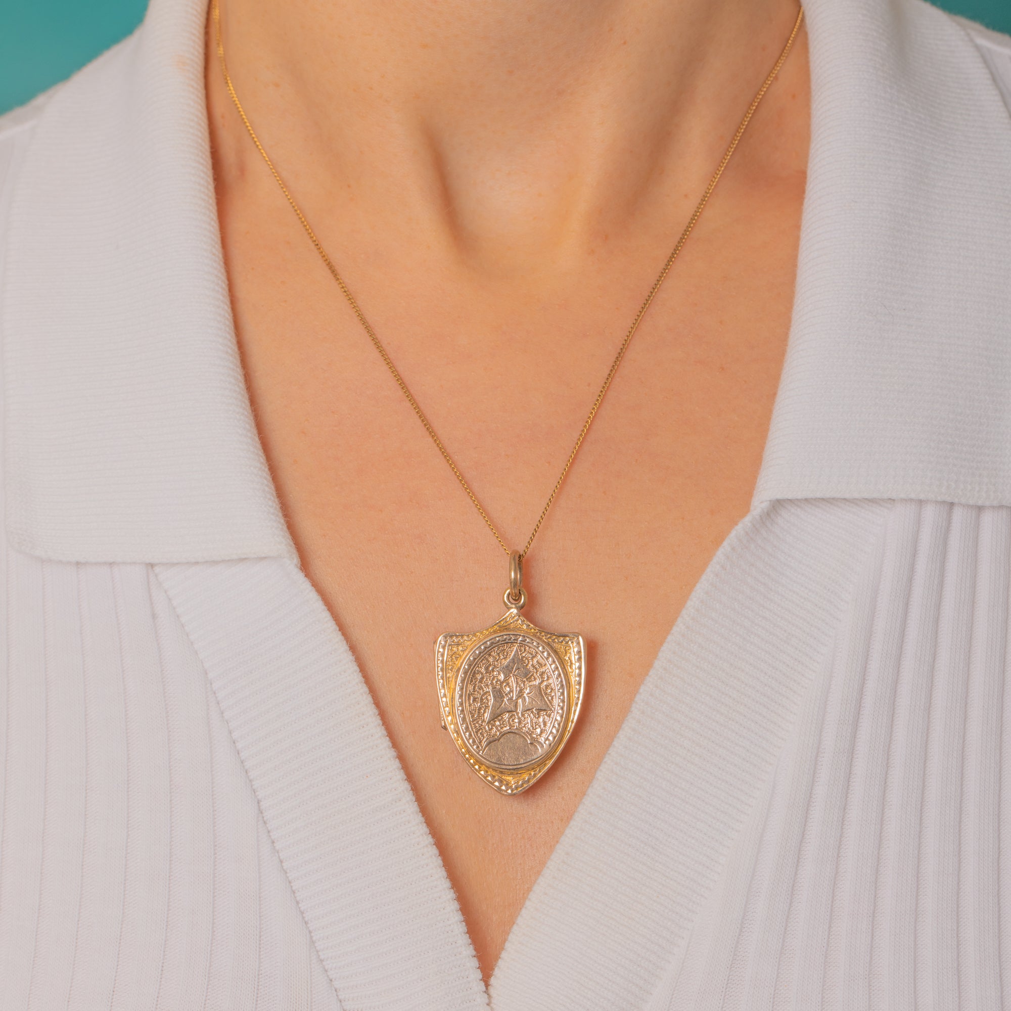 9ct Gold Shield Family Locket for 6 Pictures