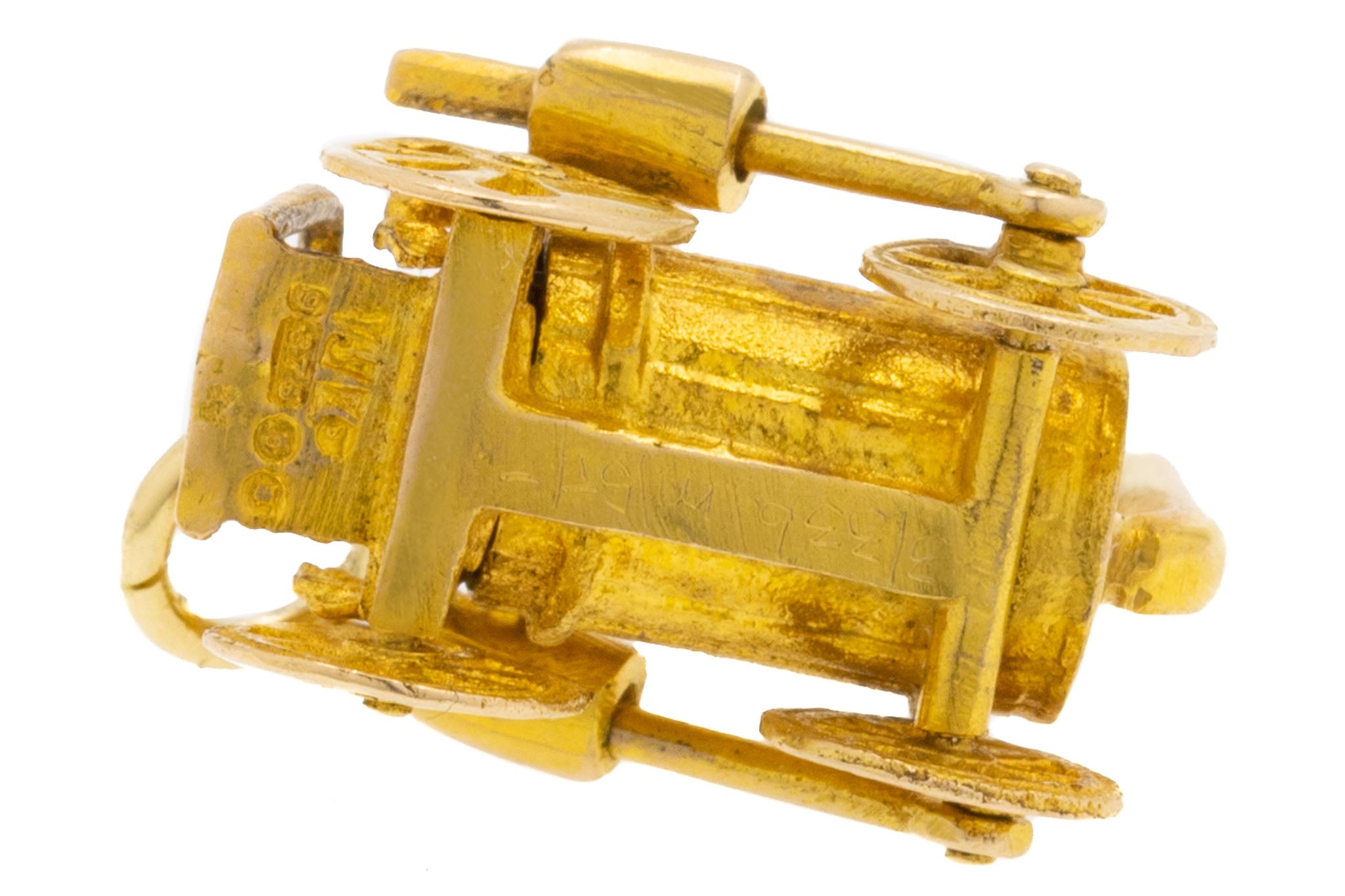 EXCELLENT: This 9ct Gold Steam train charm is in superb vintage condition. There is little to fault with this sweet train, with no damage to note and only minor age related surface wear. A full set of hallmarks are present to the base of the carriage, dating this vintage charm to the late 20th century.