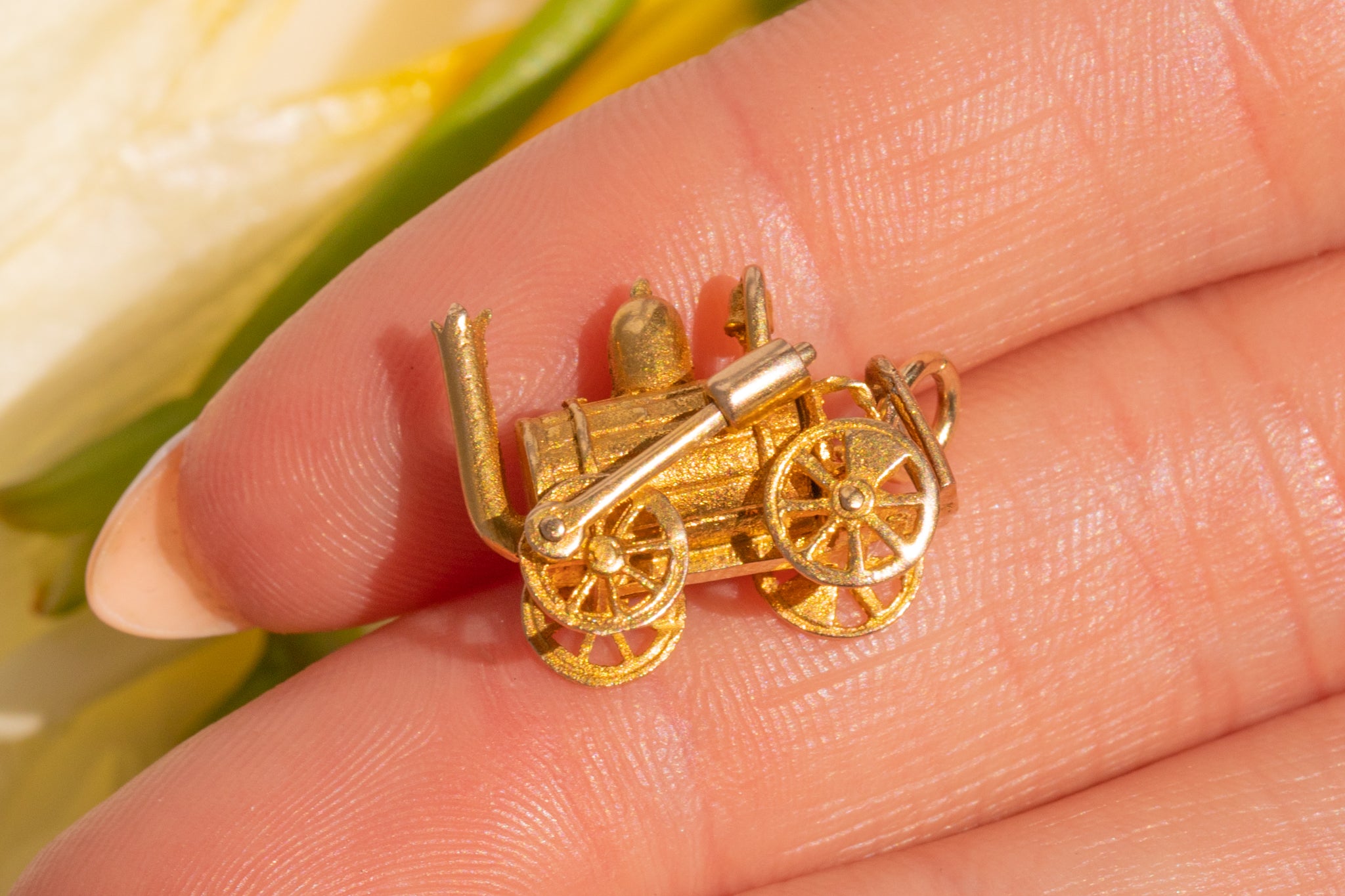 Bathe in nostalgia with this 9ct Gold Steam train charm! Crafted from maple hued 9ct Gold, no detail has been spared from the carriage to the wheels. Vintage charms are a firm favourite here at Lillicoco, and this train may be the sweetest!