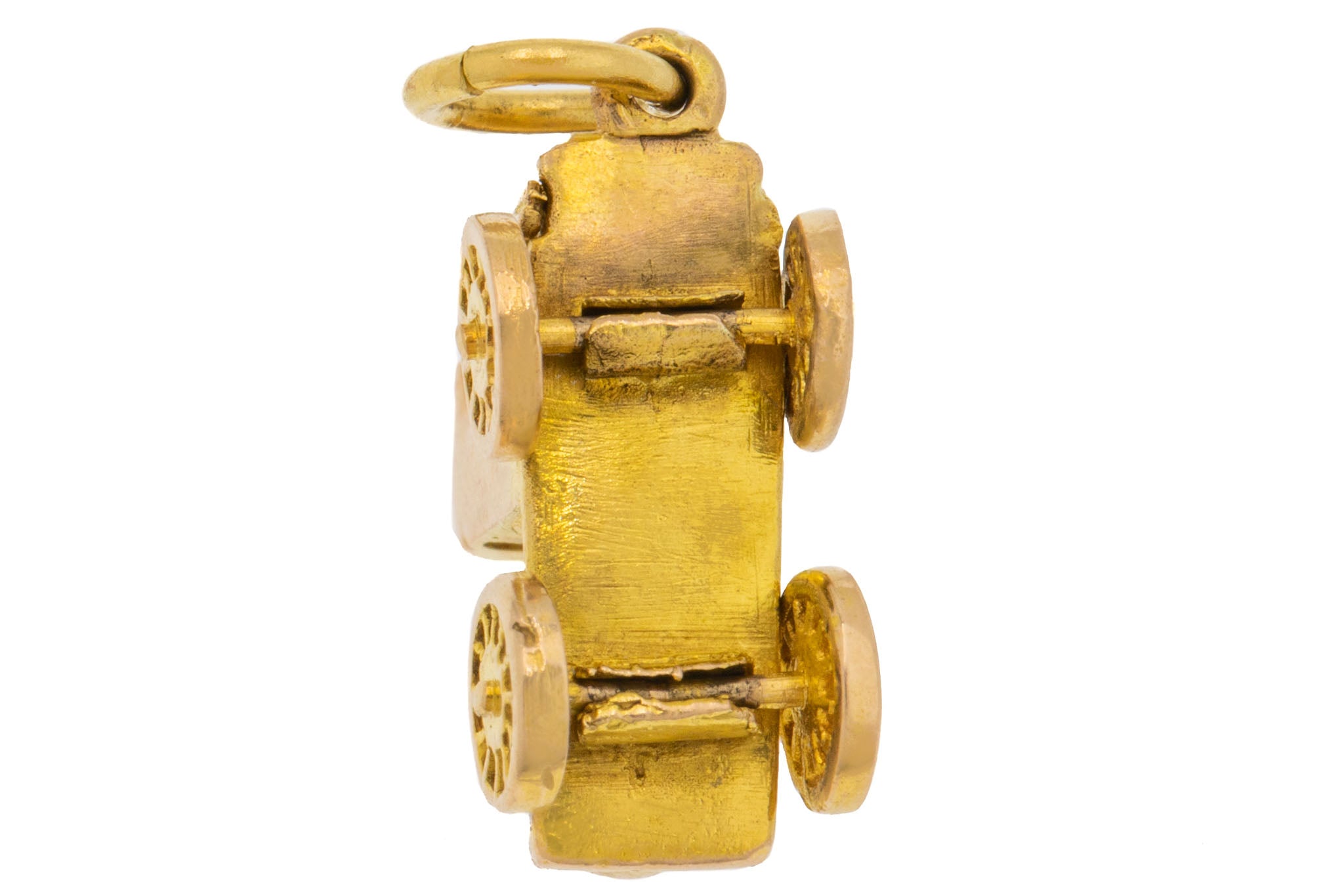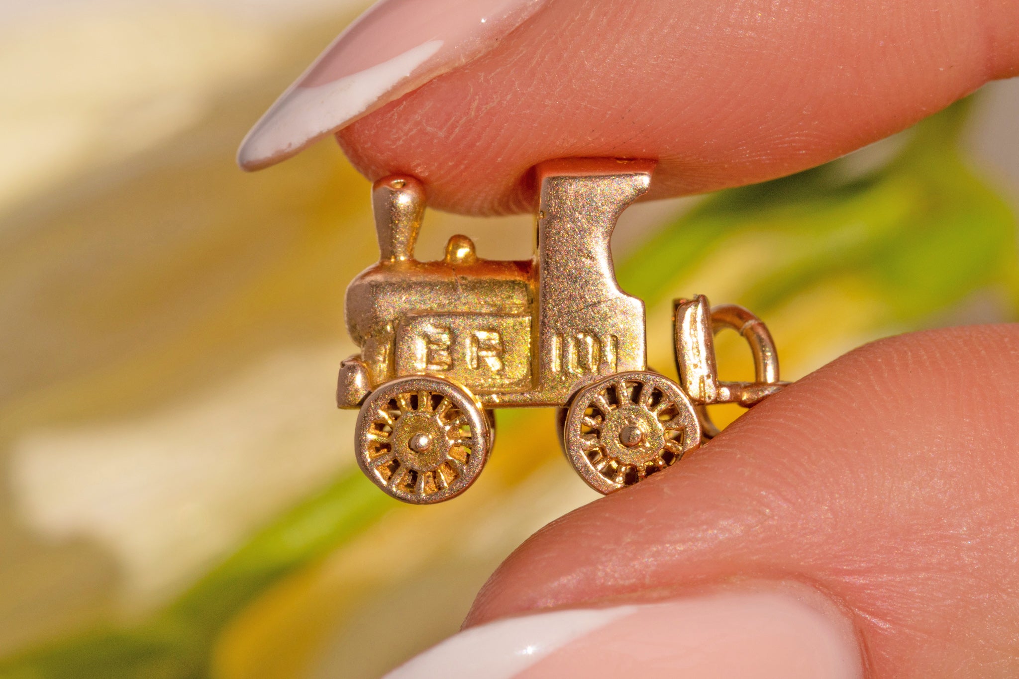 Introducing this very smart 9ct Gold steam train charm! Standing proud, this train pedant is crafted from glossy 9ct Gold and flaunts many charming details. A fun articulating charm, watch how the wheels move.