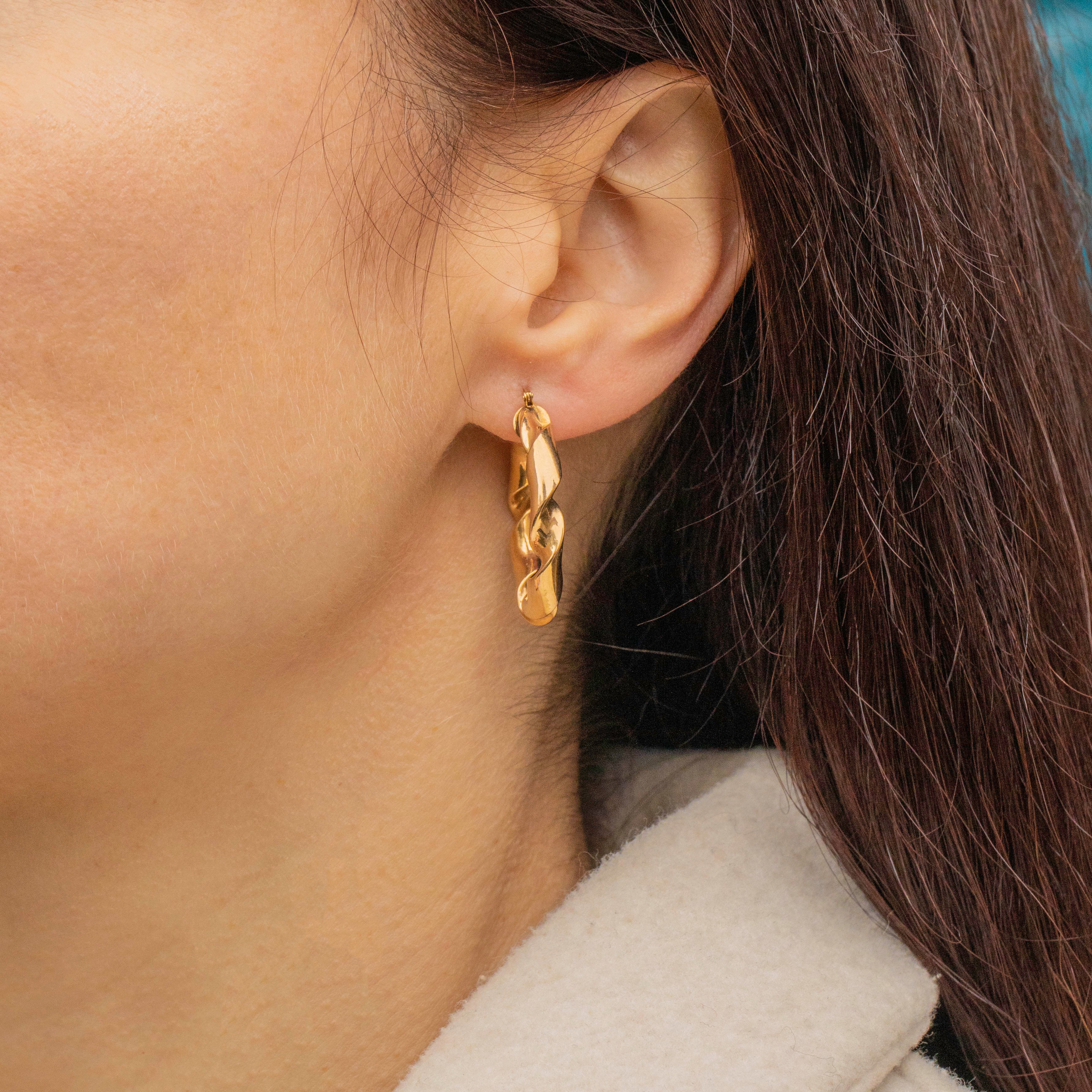 A perfect pair of twisted hoop earrings for your collection. Twisted in a ribbon like form, these Gold hoops will instantly elevate your outfit!