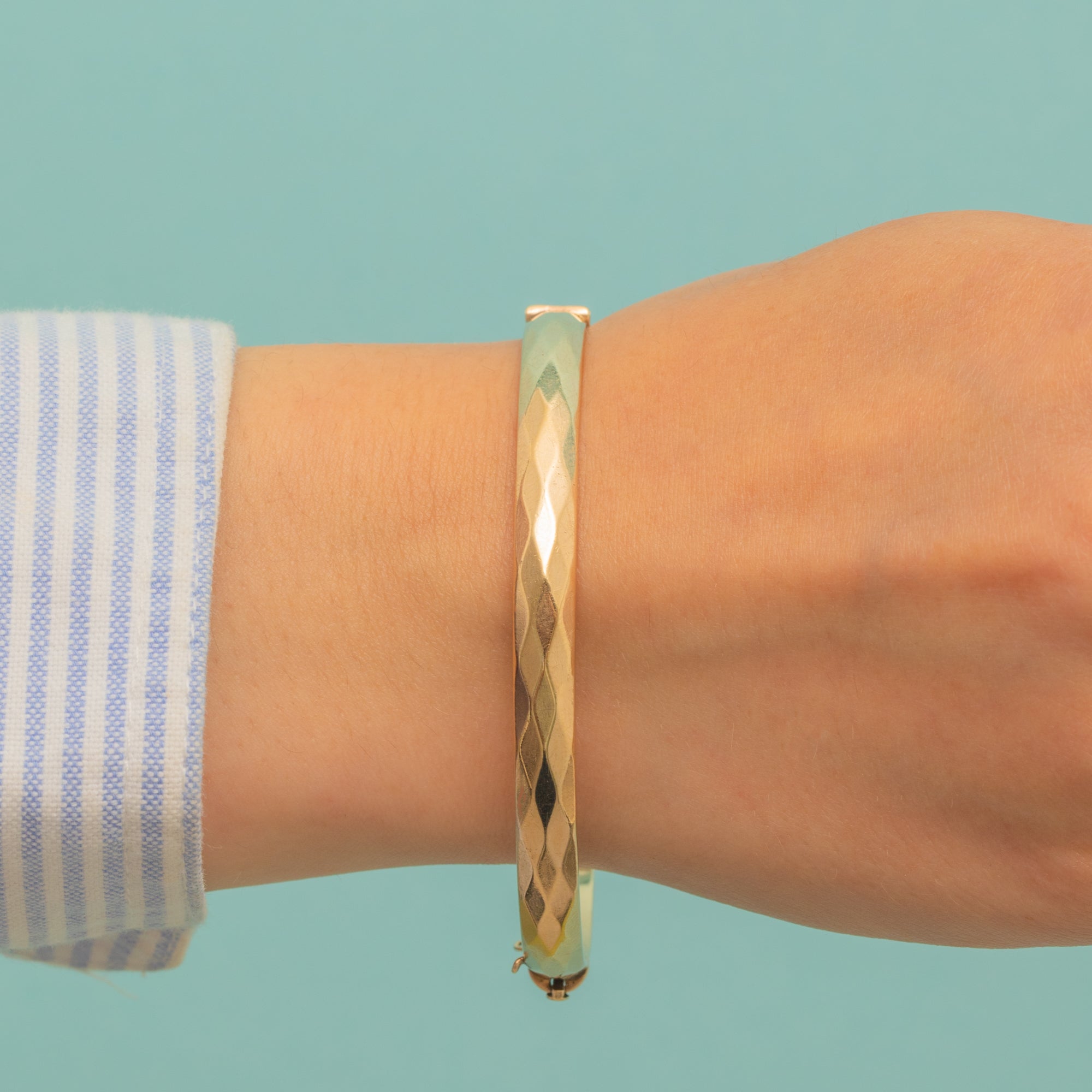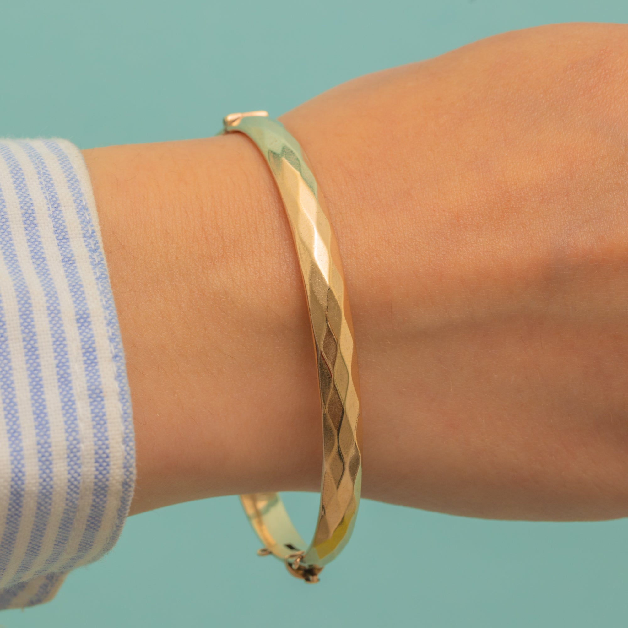 Vintage in age and timeless in style, you will have no trouble incorporating this 9ct Rolled Gold faceted bangle into your jewellery collection!