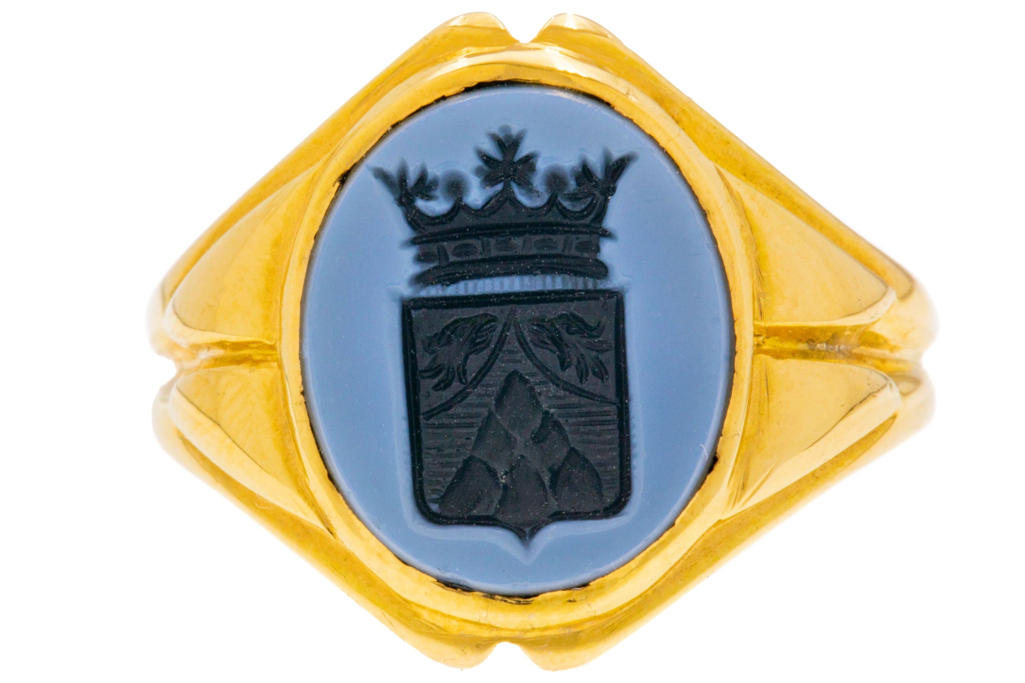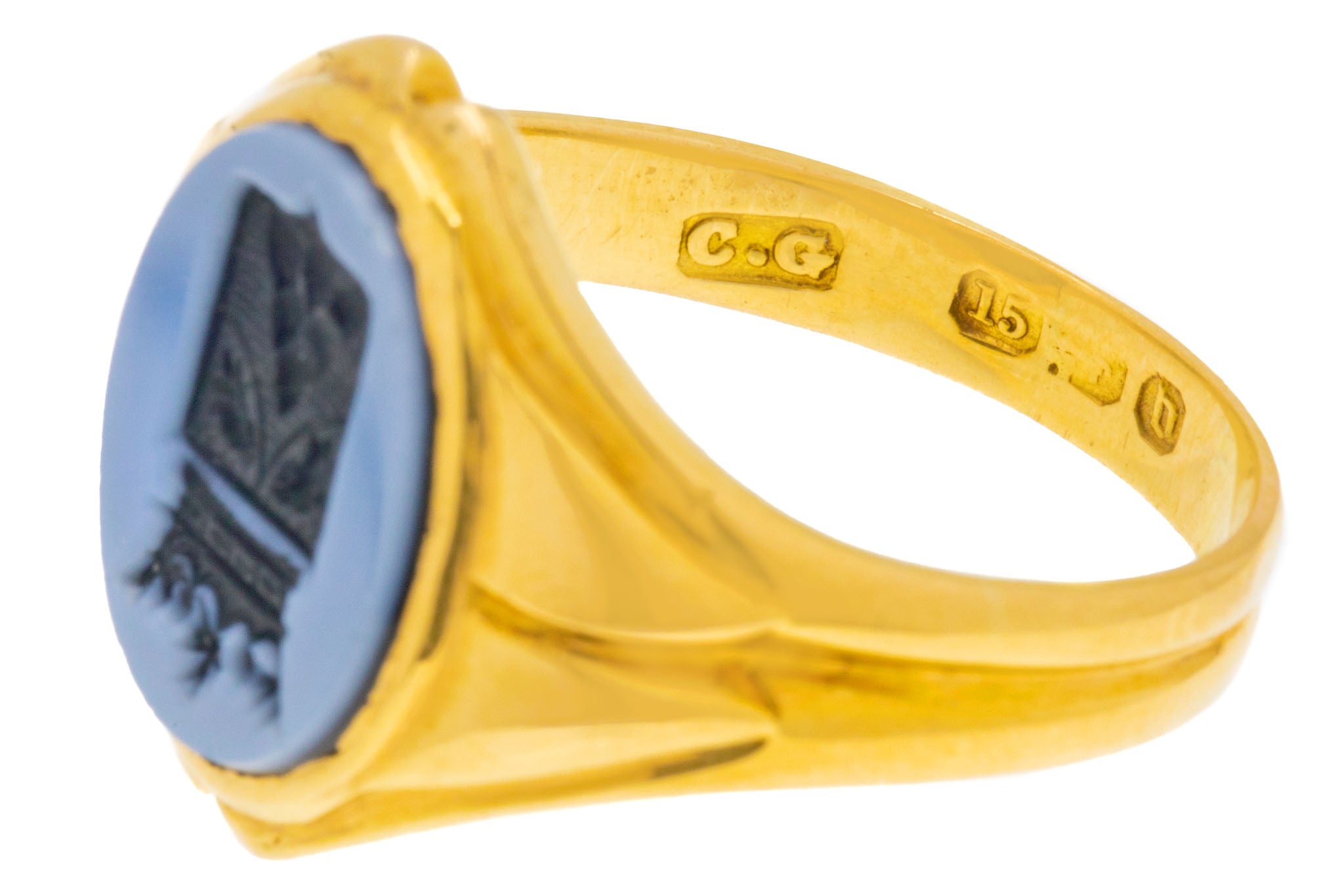 Antique 15ct Gold Agate Heraldic Intaglio Signet Ring