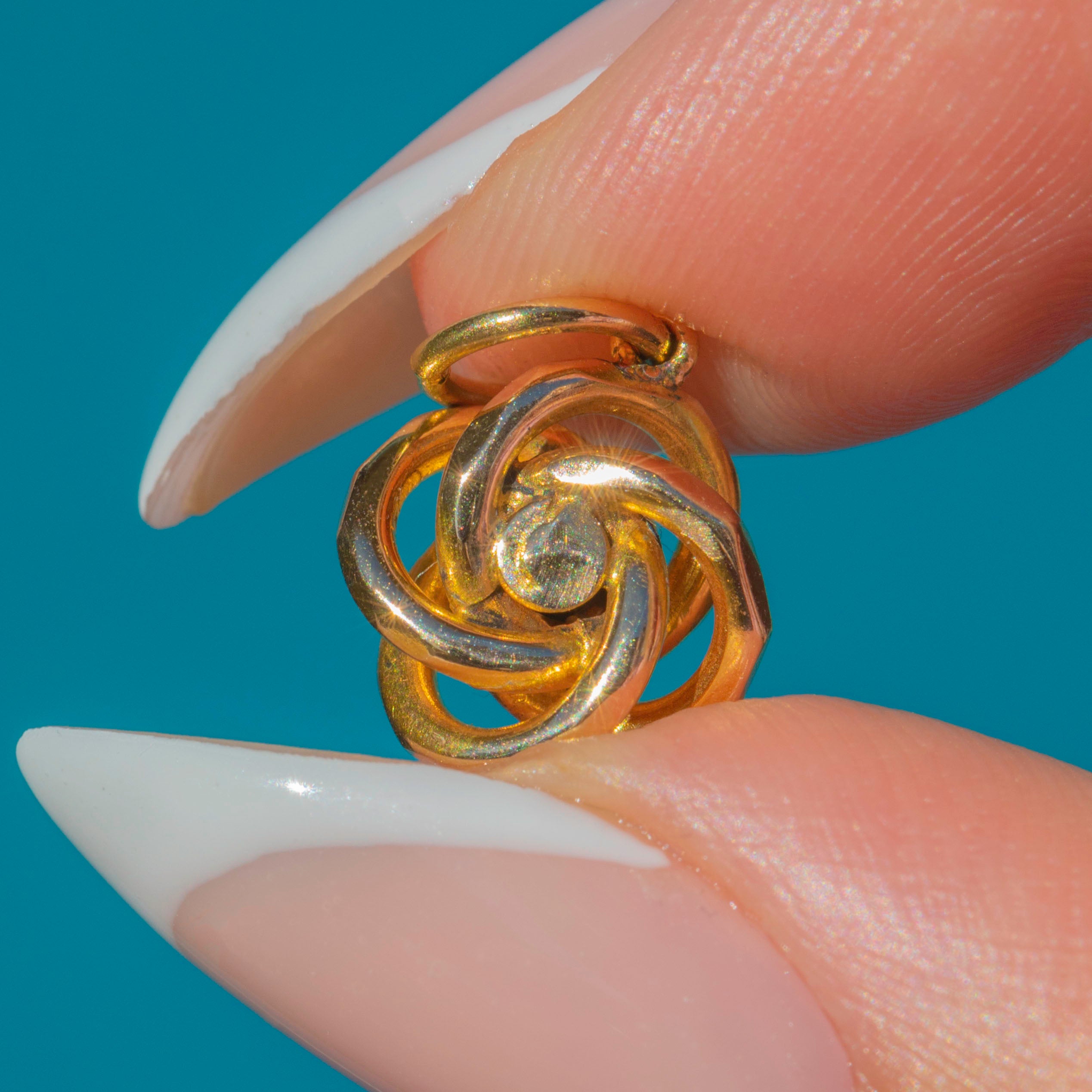 Knot motif measures 9.5mm long x 9.5mm wide.