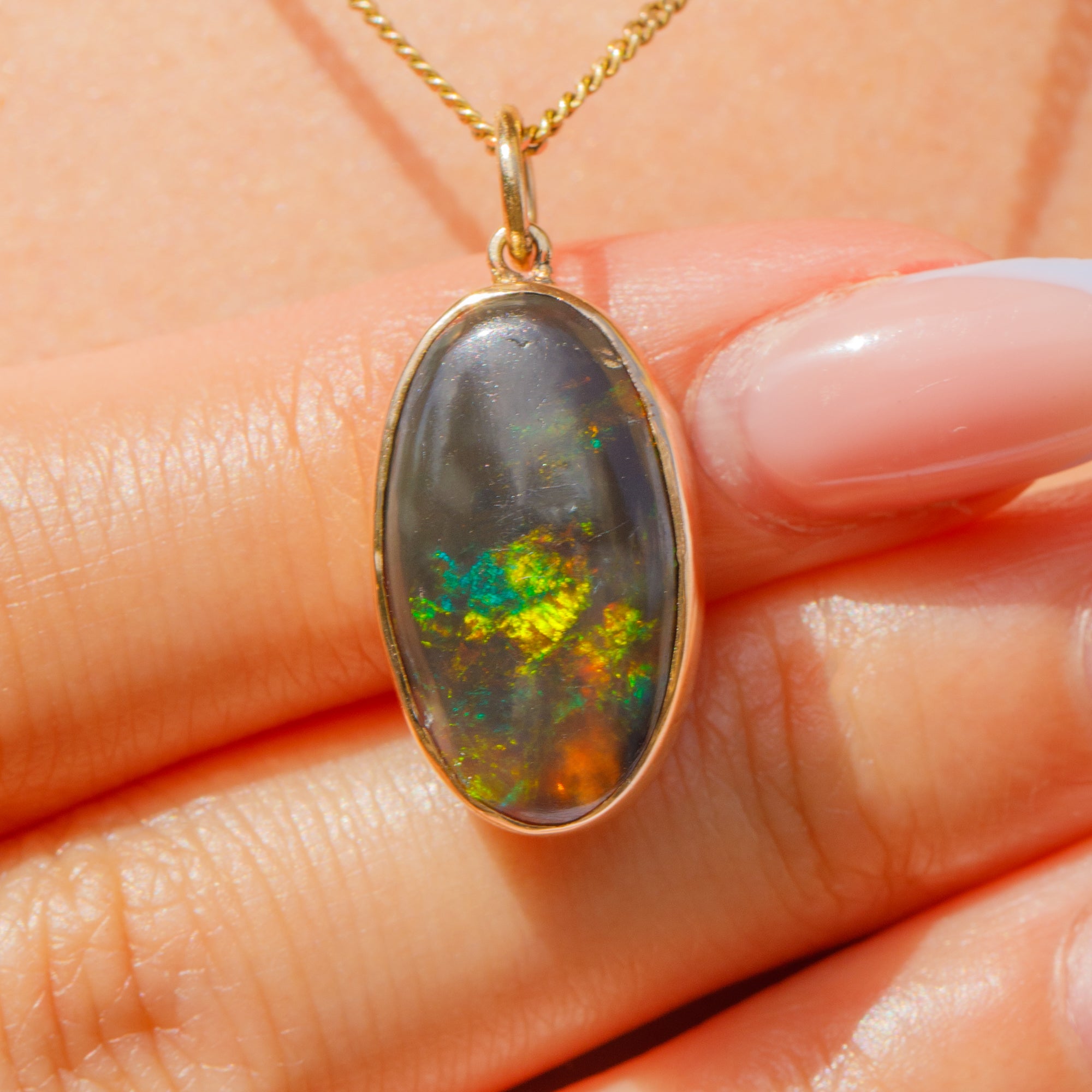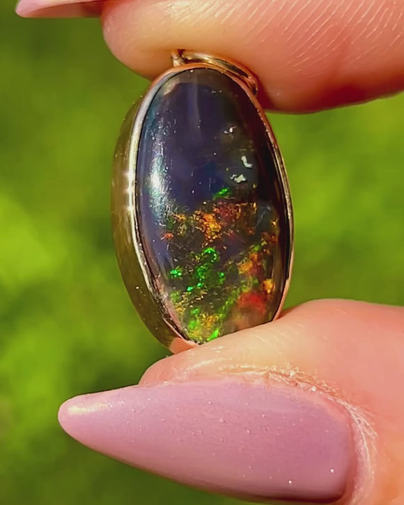 This antique 15ct Gold bezel-set Boulder Opal pendant is a lovely whimsical piece for your collection!