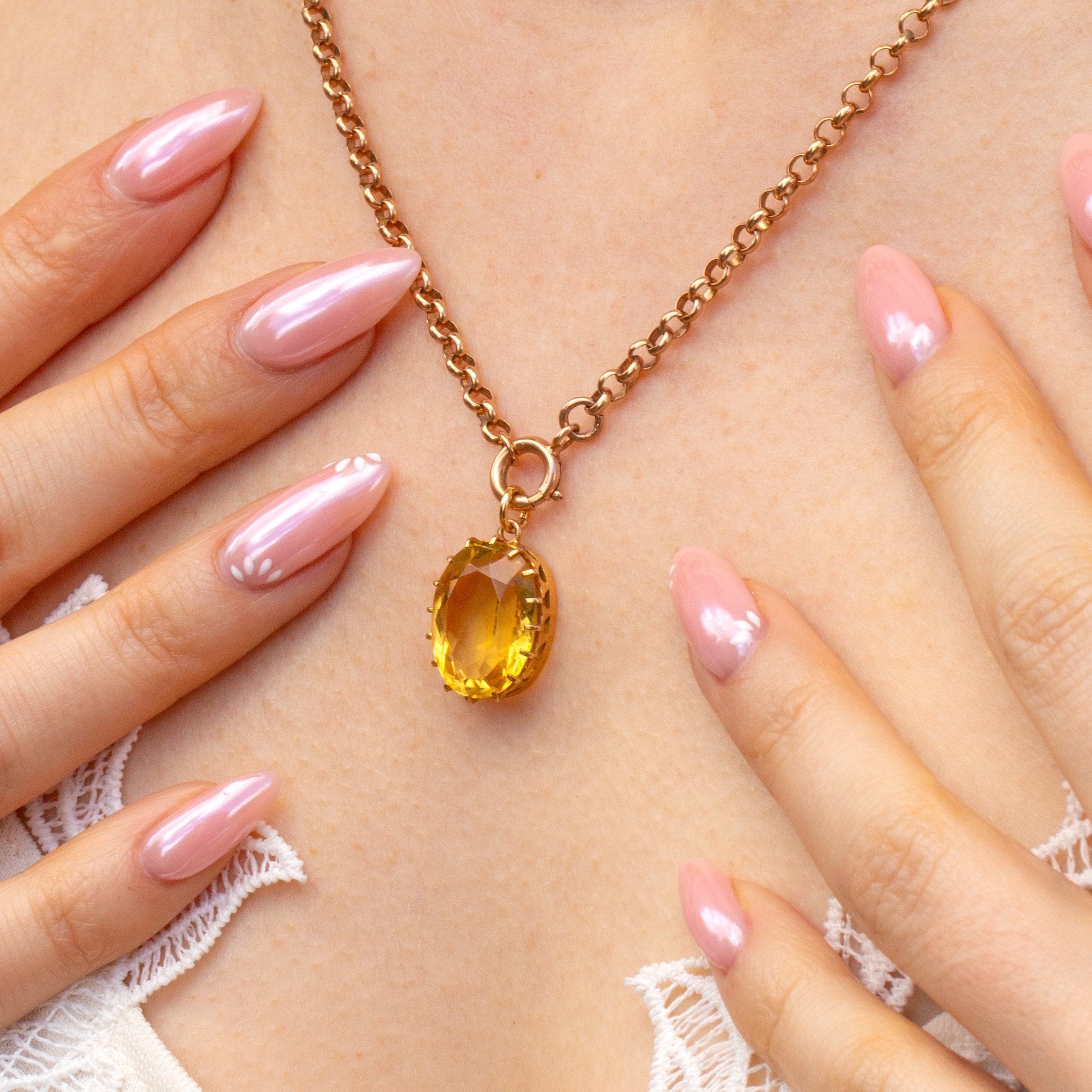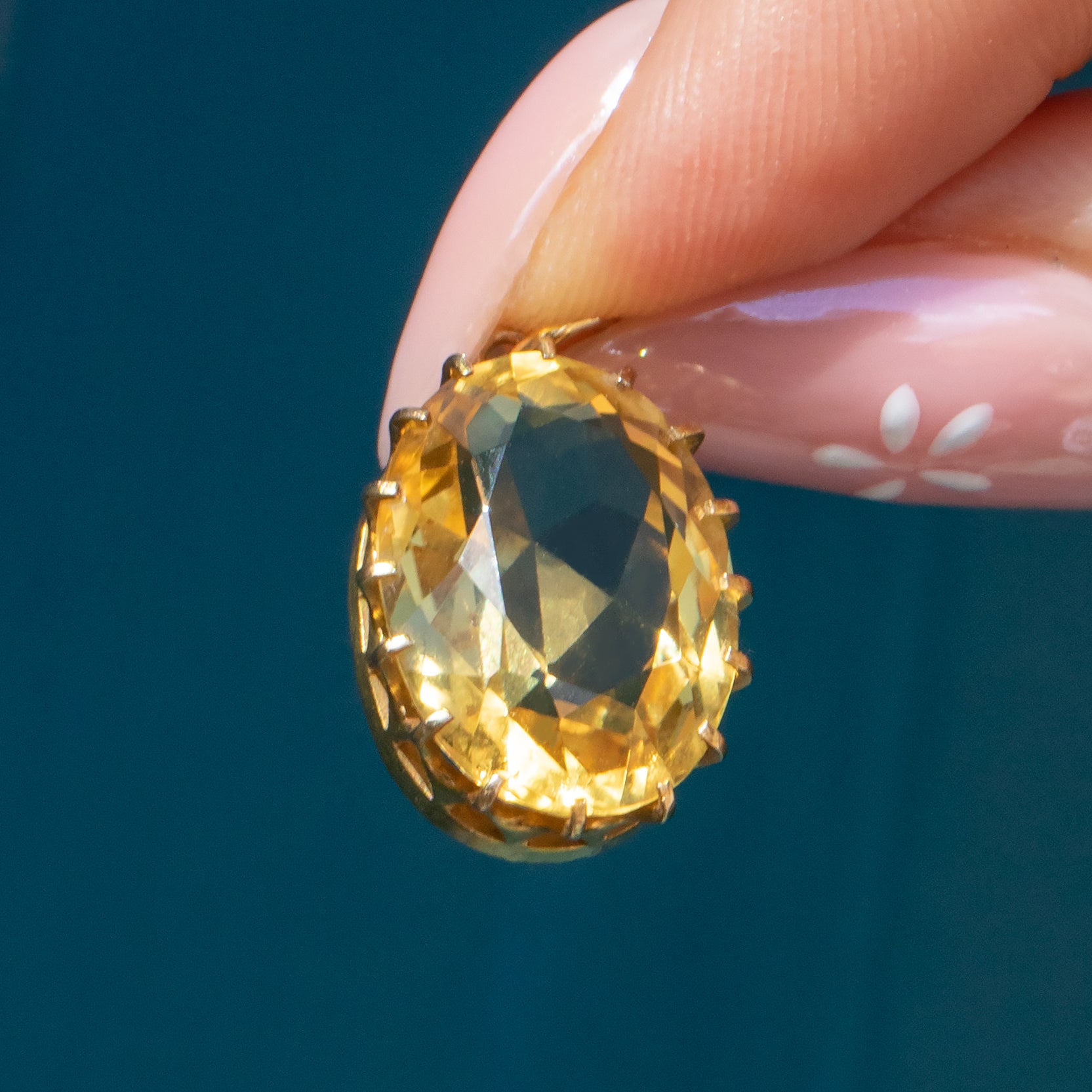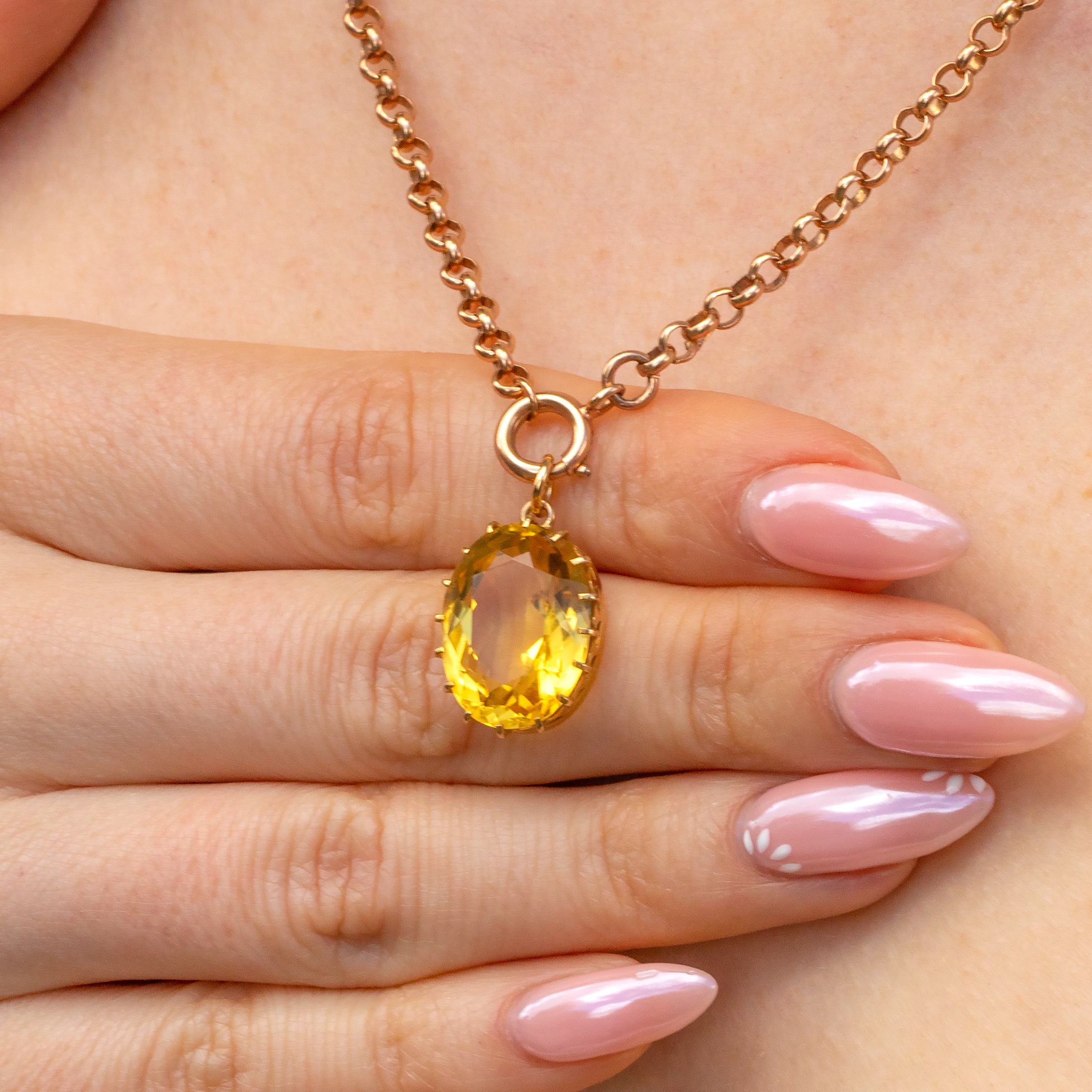 Hugged by crown settings and crafted entirely from buttery 15ct Gold, the light pours through from every angle. Just imagine the attention this antique Citrine pendant will garner once suspended from an antique Gold chain!