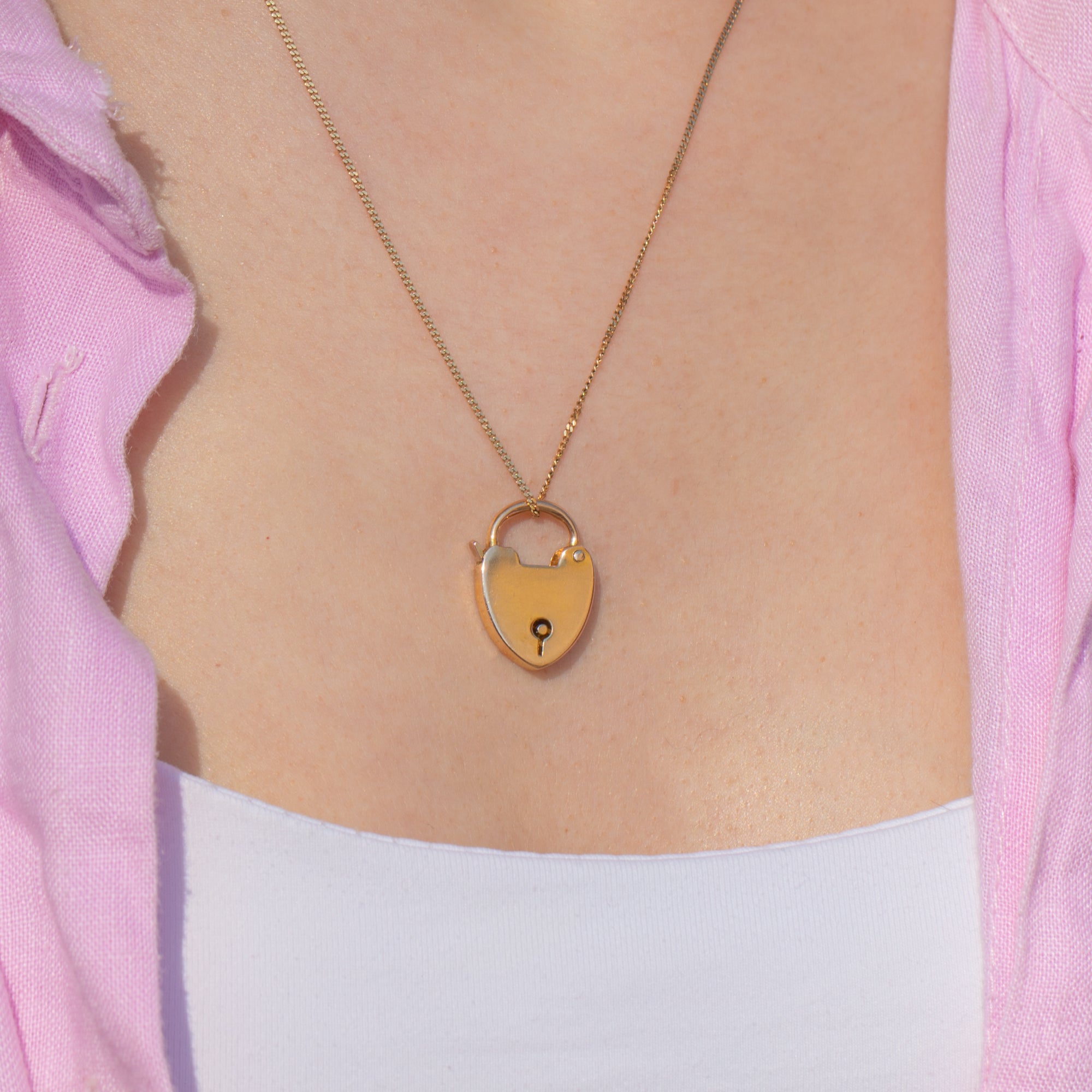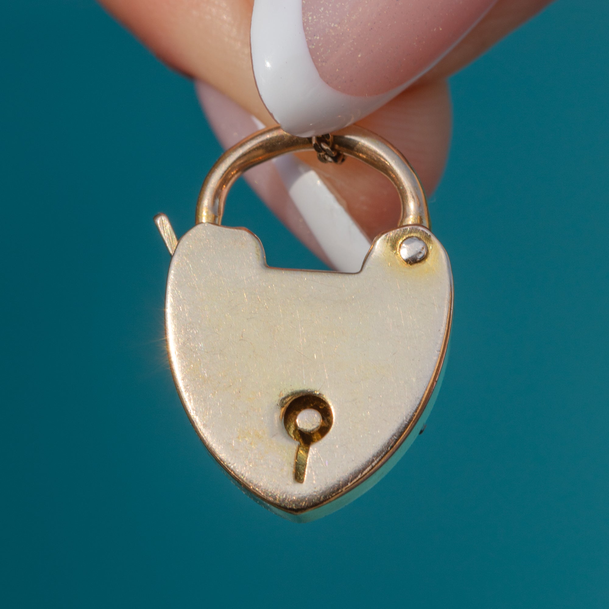 VERY GOOD: This antique 15ct Gold heart padlock pendant is in very good condition. The Gold is bright and buttery and free from any dings. It does have a couple of scratch marks on the back, but this will not be seen when the pendant is worn. The padlock is perfectly functioning and when closed you can be assured is securely shut. This antique Gold heart pendant is ready to adorn the neck of its owner, adding a touch of elegance to any outfit!