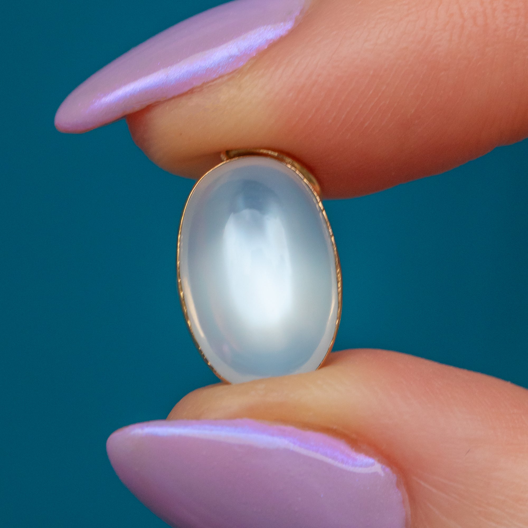 Moonstone is 13.5mm long x 8.5mm wide, weighing approx. 1.80ct.