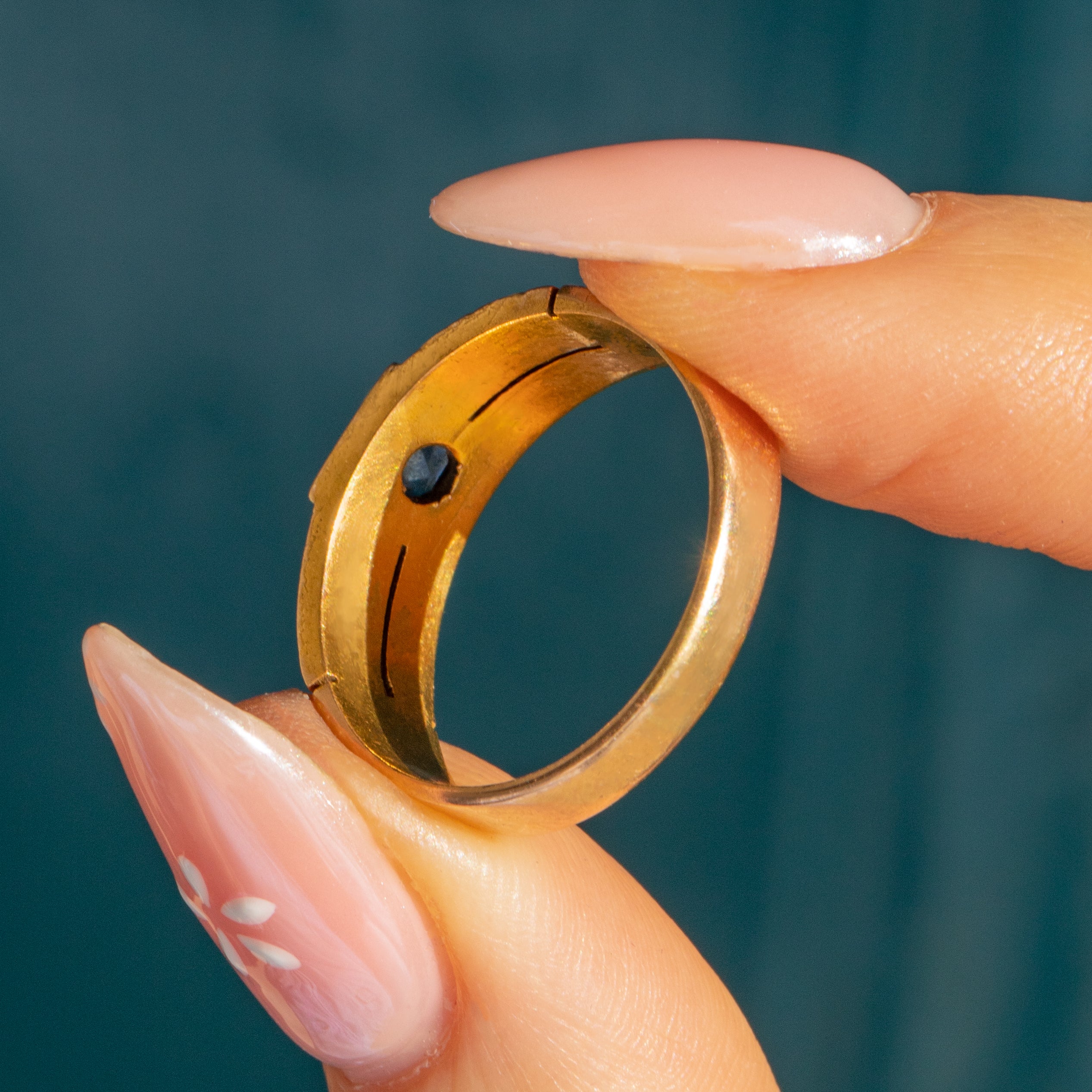 Formed from highly saturated 15ct Gold, this Victorian ring wraps effortlessly around your finger and her low profile makes her easy to wear. Unique in design and elegant by nature, you will never tire of looking down at this antique Sapphire ring!