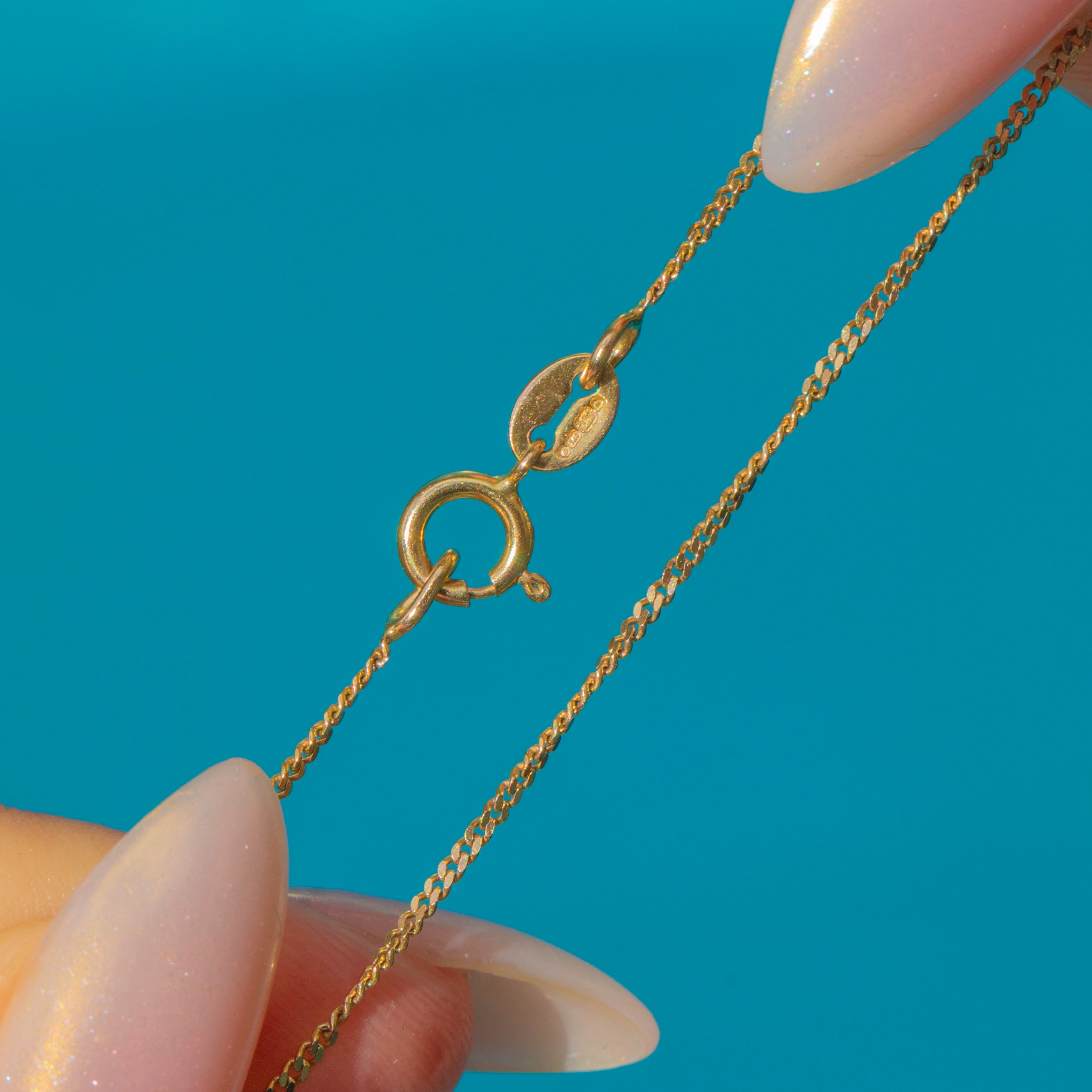 MEASUREMENTS: Later added 9ct Gold chain is 18 & 1/2" or 47cm long.