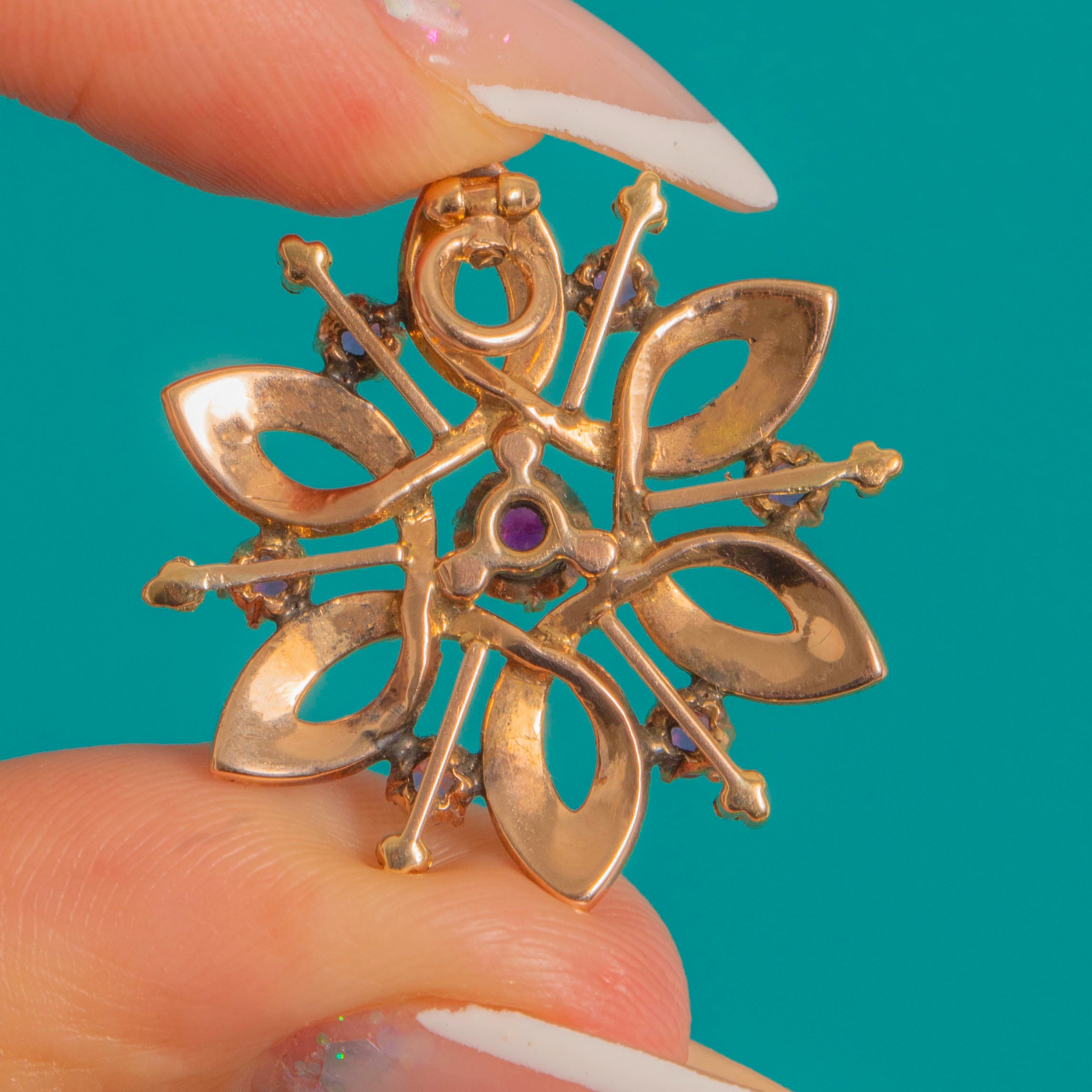 Antique 15ct Gold Rhodolite Garnet Pearl Star Cluster Pendant