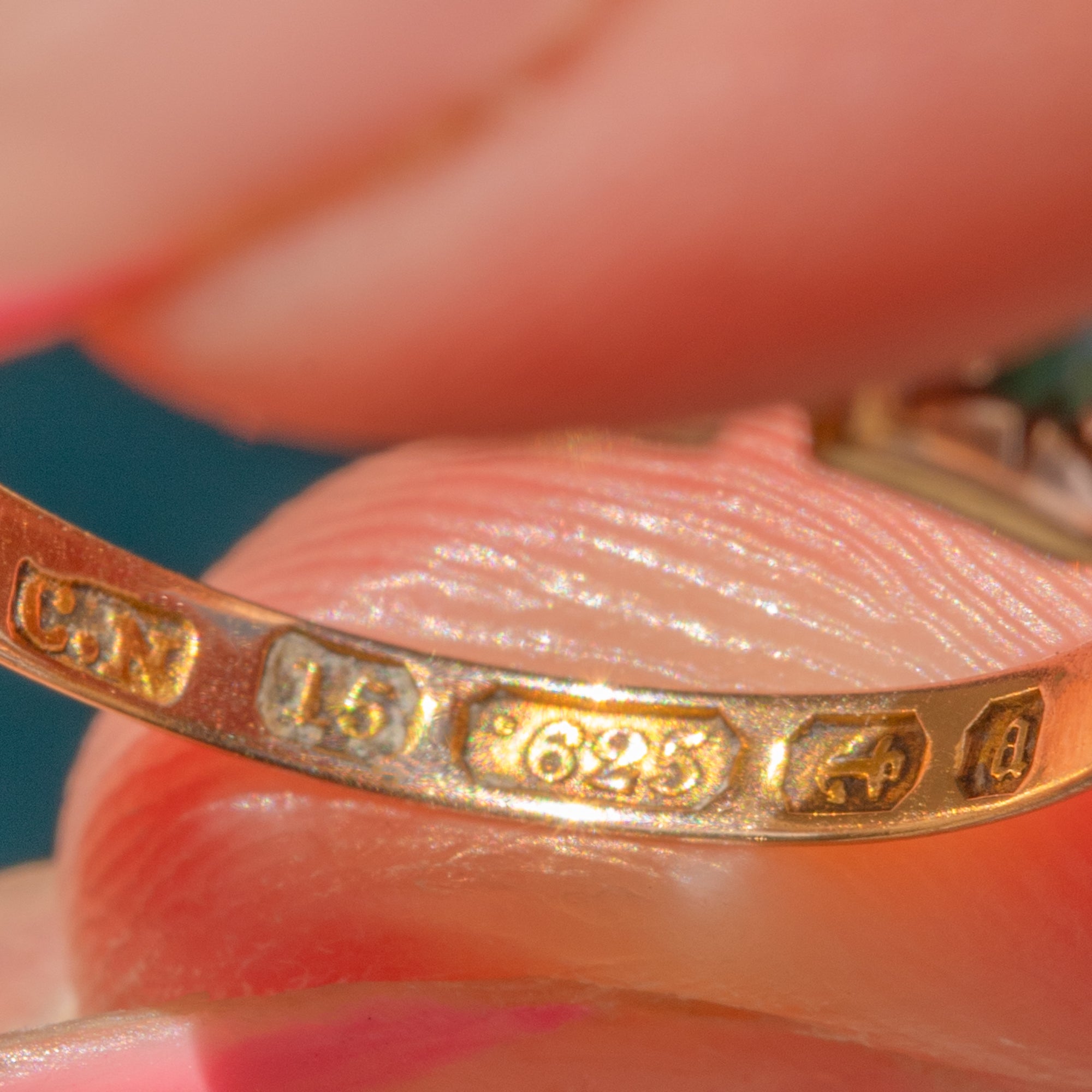 HALLMARKS: CN Maker's mark, 15, .625, Birmingham Anchor, Date letter a for the year 1900.