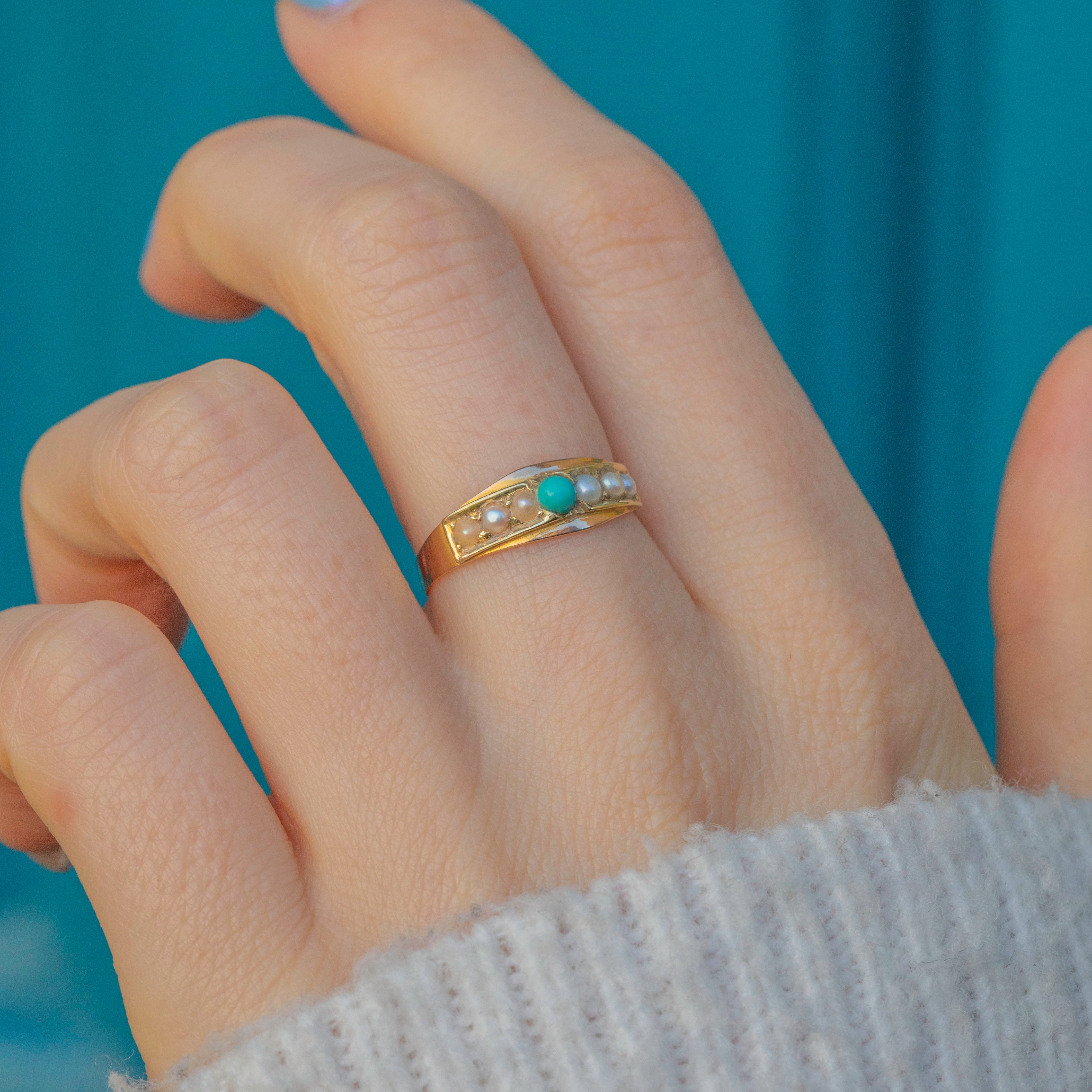 Victorian 15ct Gold Turquoise Pearl Stacking Ring c.1880