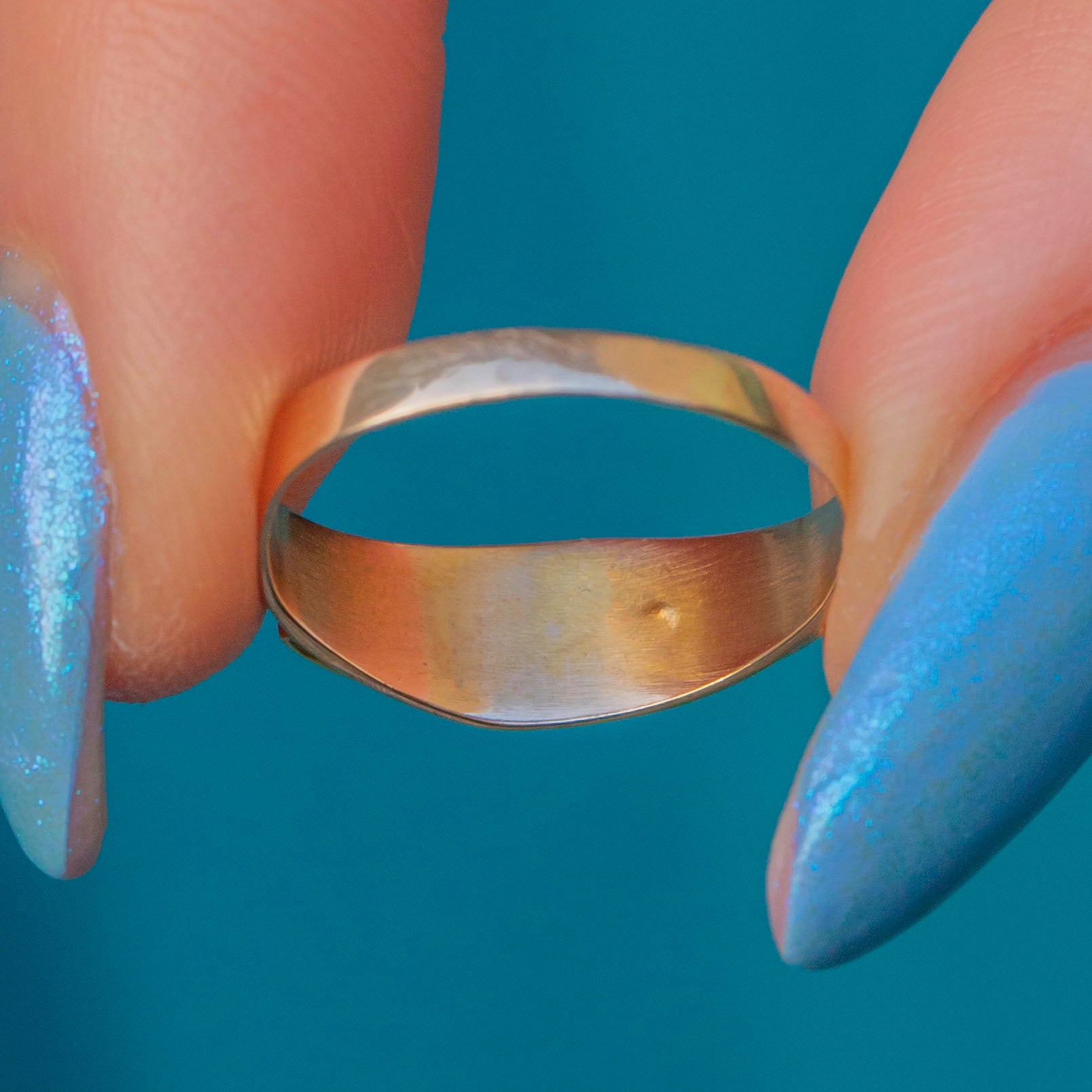 Ring band tapers from 6mm wide at the front to 3.5mm wide at the back.