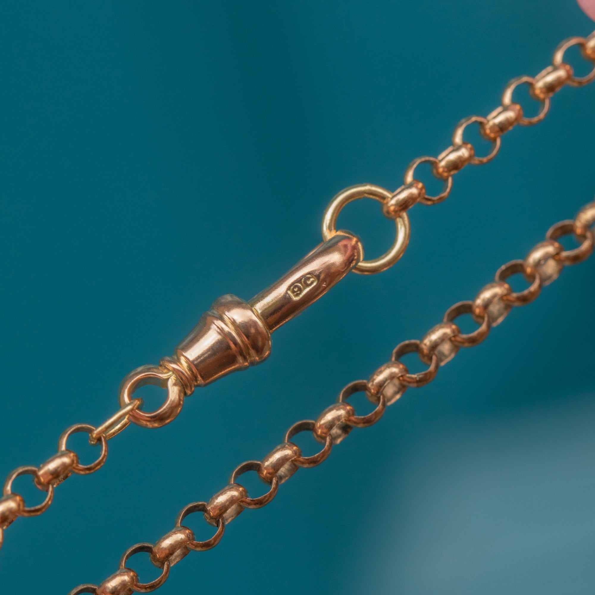 EXCELLENT: This antique 9ct Gold belcher chain is in excellent condition. Each of her links is uniform and secure, and the dog-clip is in perfect working order. With little else to note, this Victorian Gold chain will make a wonderful addition to your collection!