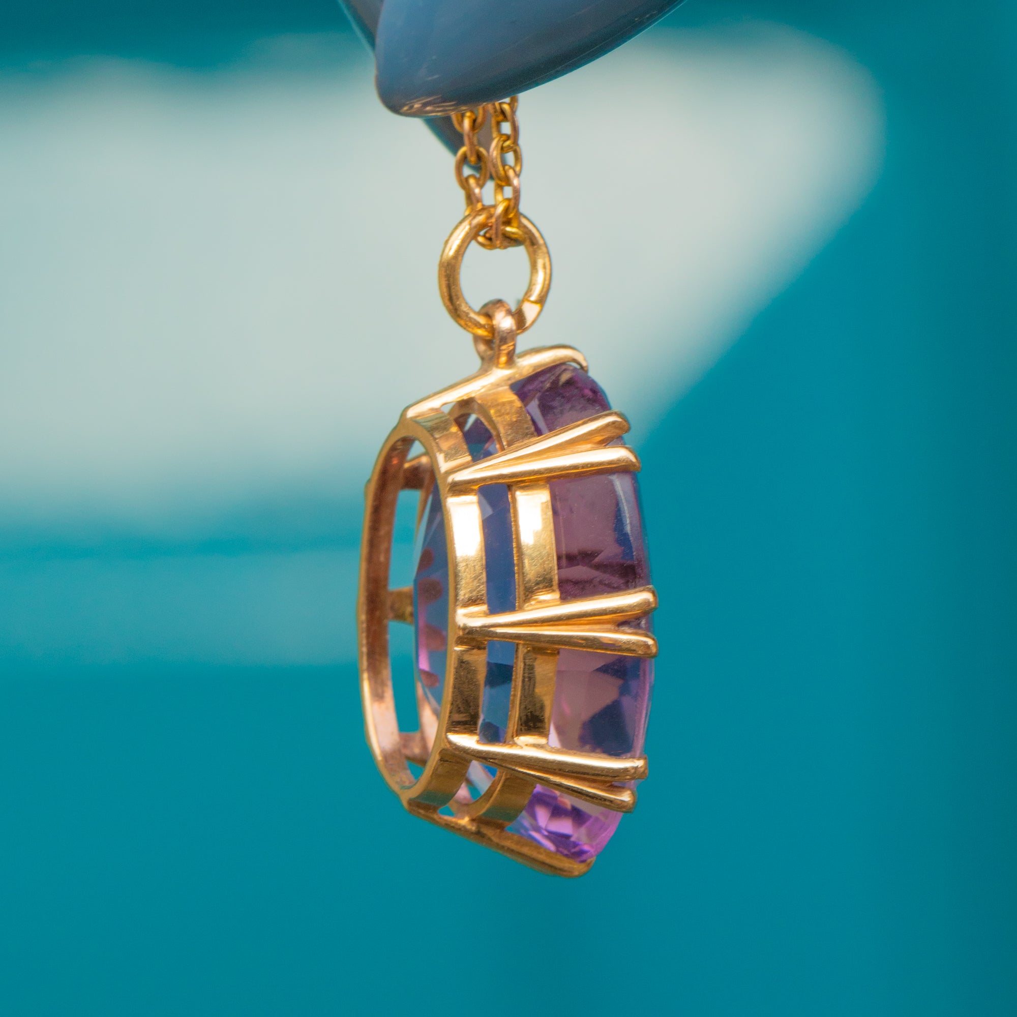 This antique 18ct Gold Amethyst pendant is such a captivating piece! A regal deep purple 13.00ct Amethyst sits snugly within solid 18ct Gold, making for an eye-catching piece of Art Deco jewellery.