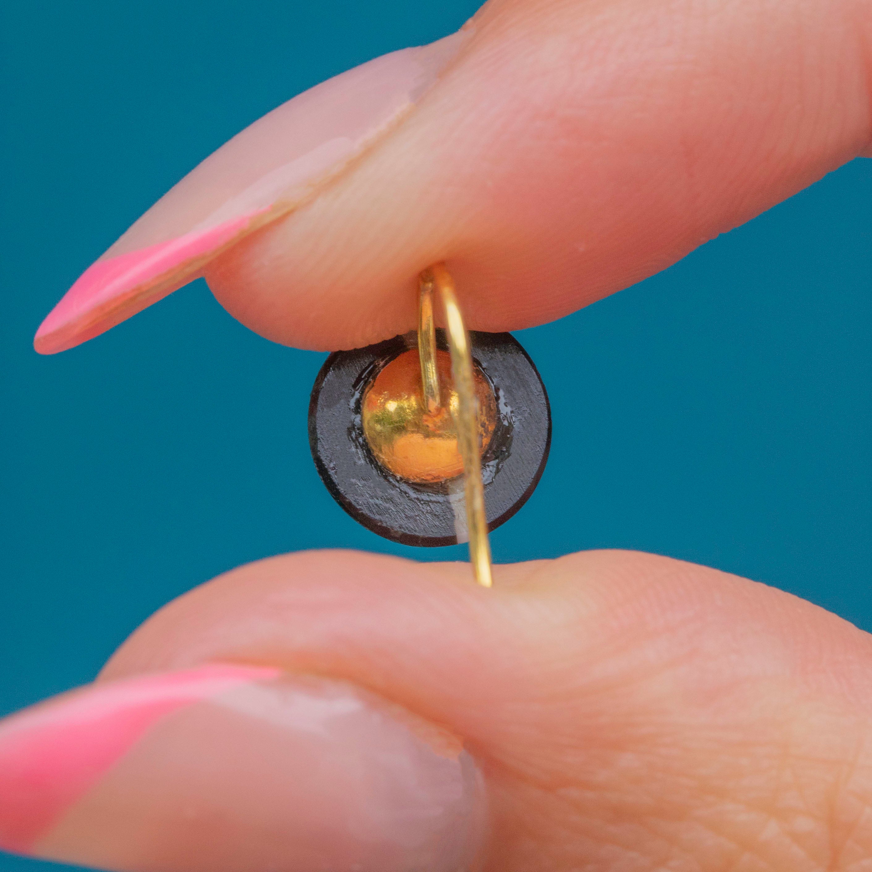 The Agates are complemented beautifully by the buttery sheen of the 18ct Gold hooks, which sit comfortably in your ears. A wonderfully versatile pair, these Victorian button earrings are a must-have!