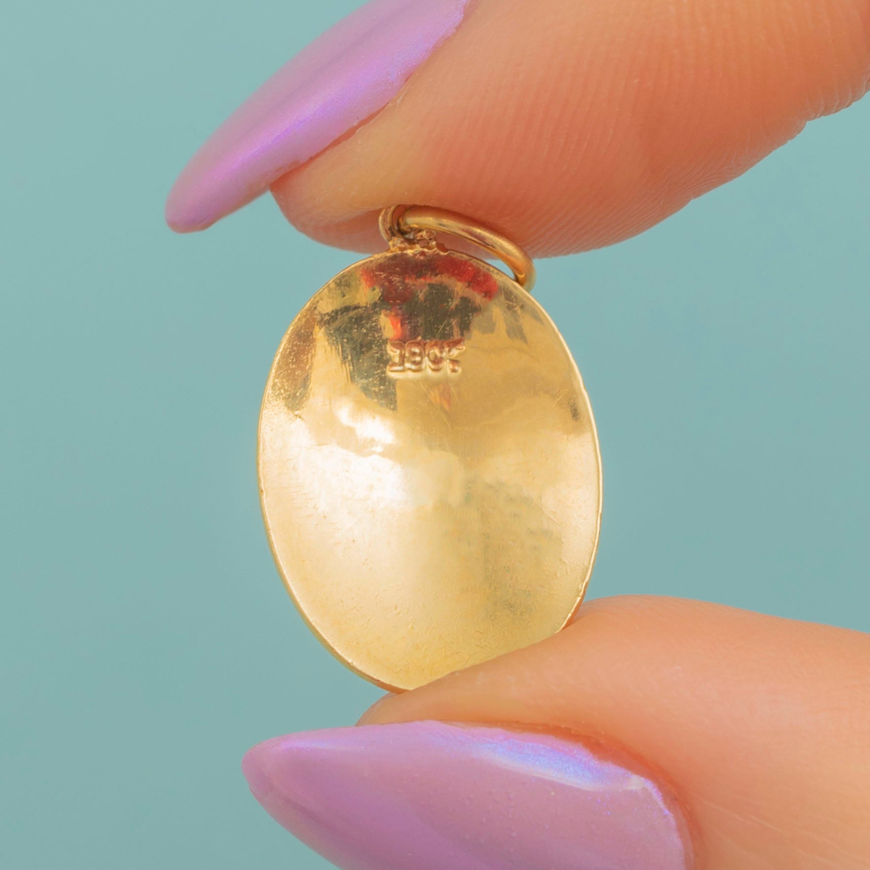STAMPS: 18CT' on back of pendant.