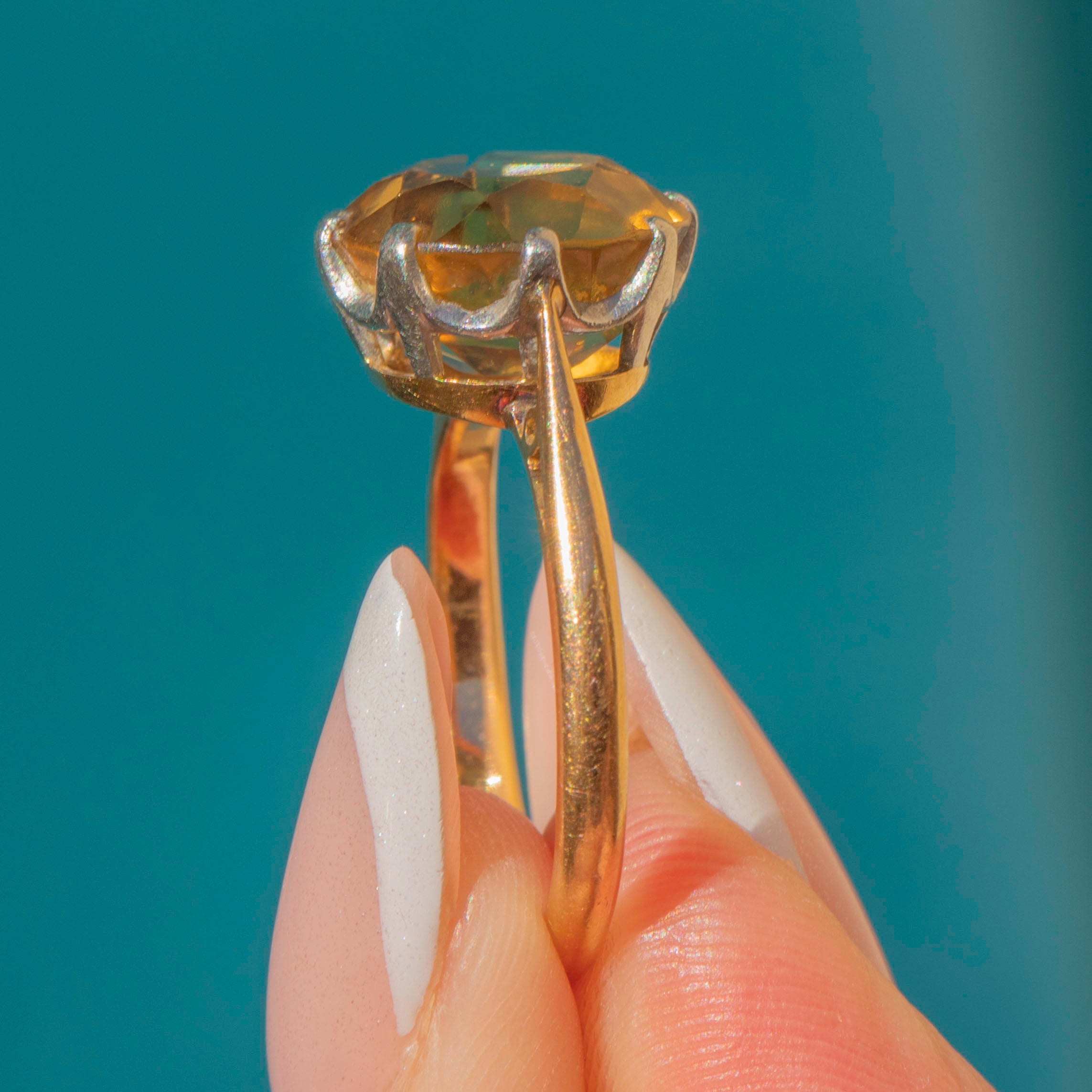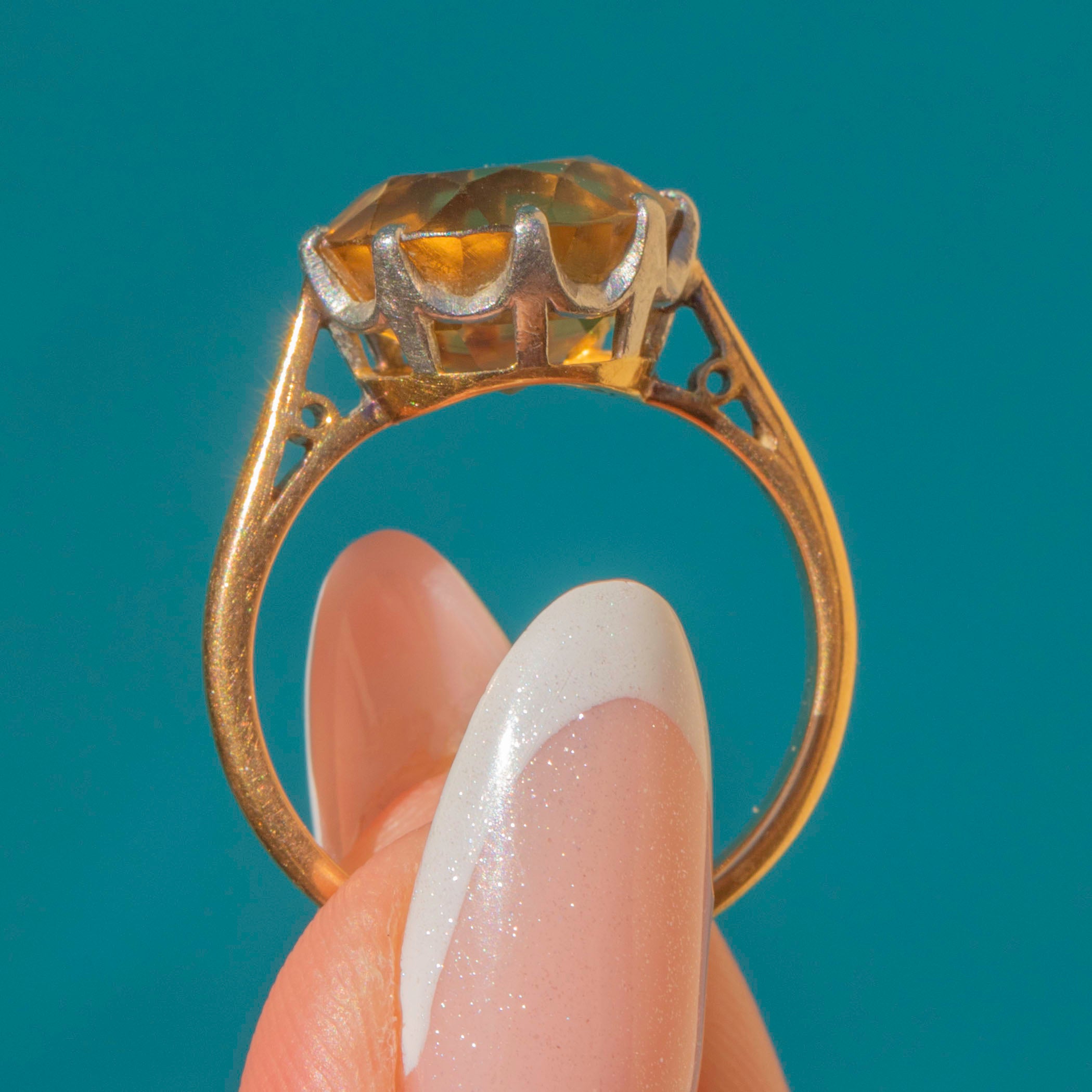 An effortless combination, this Citrine is set atop a buttery 18ct Gold band providing a luxurious throne for the spectacular gemstone. This Art Deco Citrine ring is a show-stopping piece!